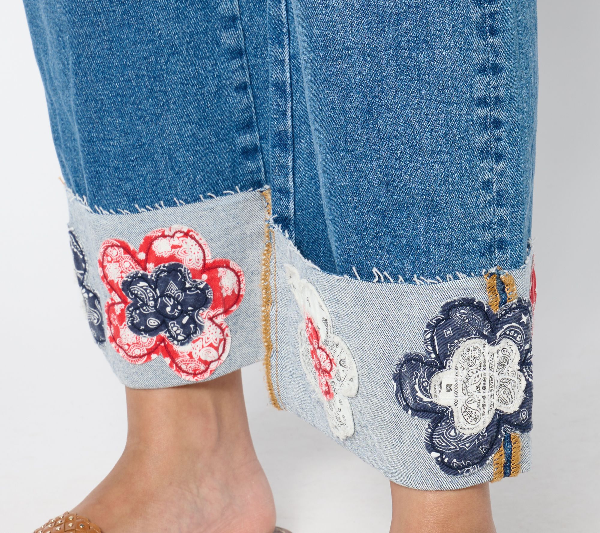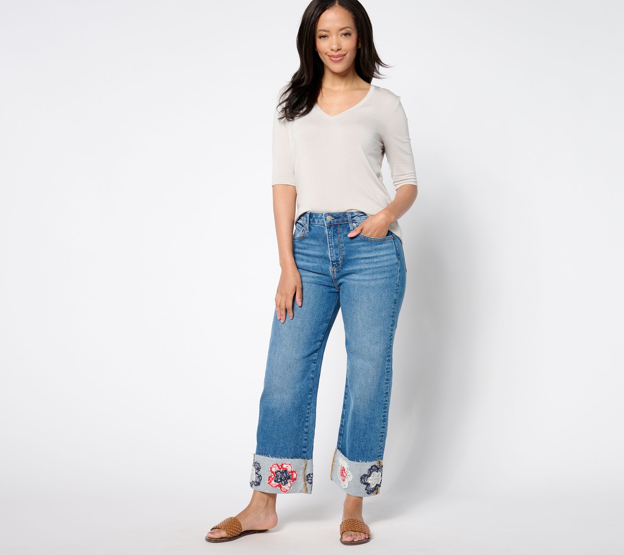 Chill all summer long in the Charlee. These flattering zip-front jeans keep things casual with a wide cuffed hem and ankle-bearing length while the blooming boho embroidery's got all the boutique feels. From Driftwood.