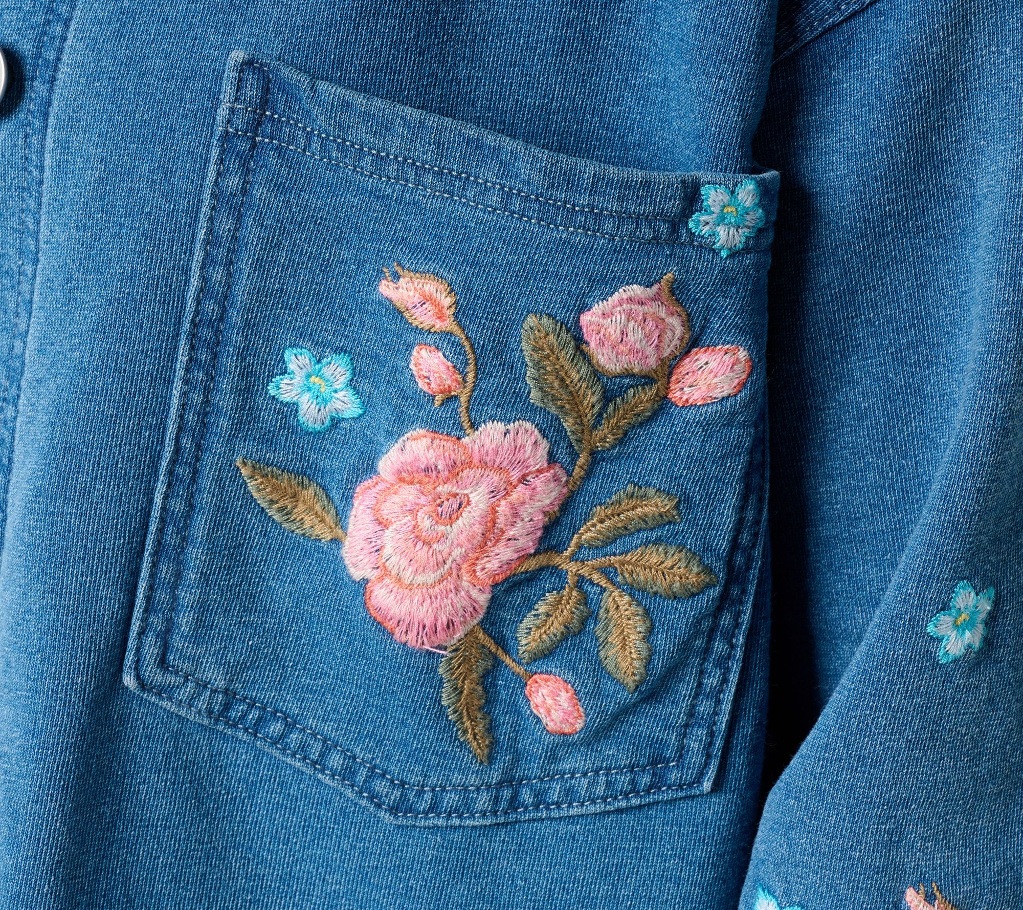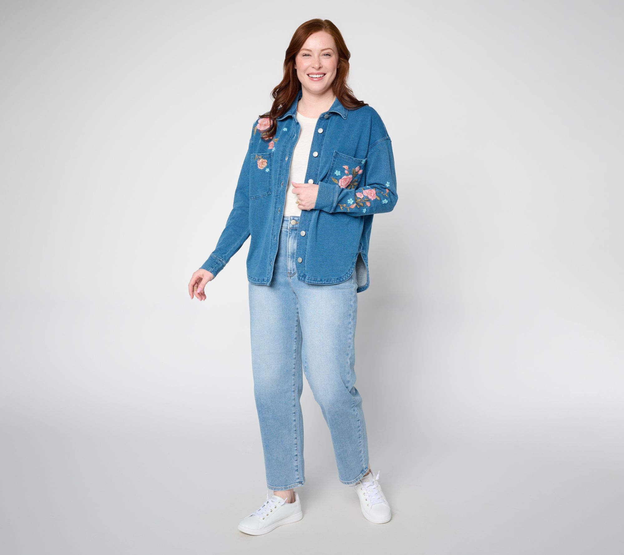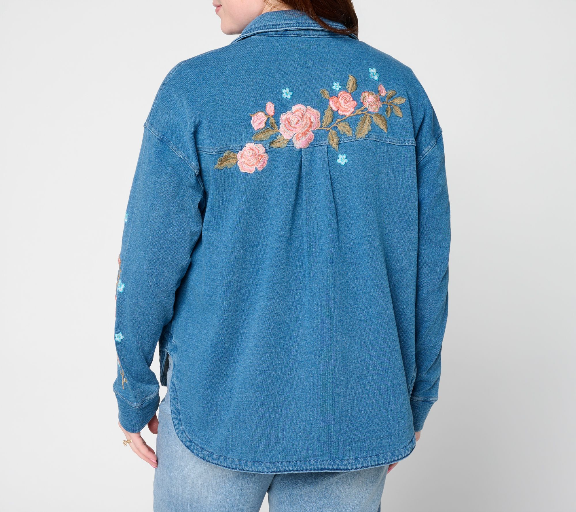 A day for layers (again)? Shake things up with this inspired shacket, displaying charming rose embroidery. Crafted in impossibly cozy, movement-friendly Cloud French Terry -- the kind you can walk the dog, chase the kids, or curl up in -- the relaxed style is just as delightful worn as a shirt or slipped on over tees and tanks. And it's the perfect piece for social gatherings when you want to look casually chic (without trying too hard). From Driftwood Jeans.