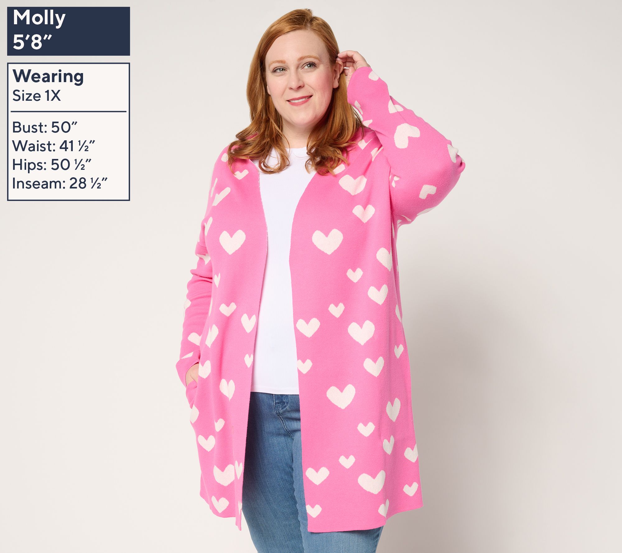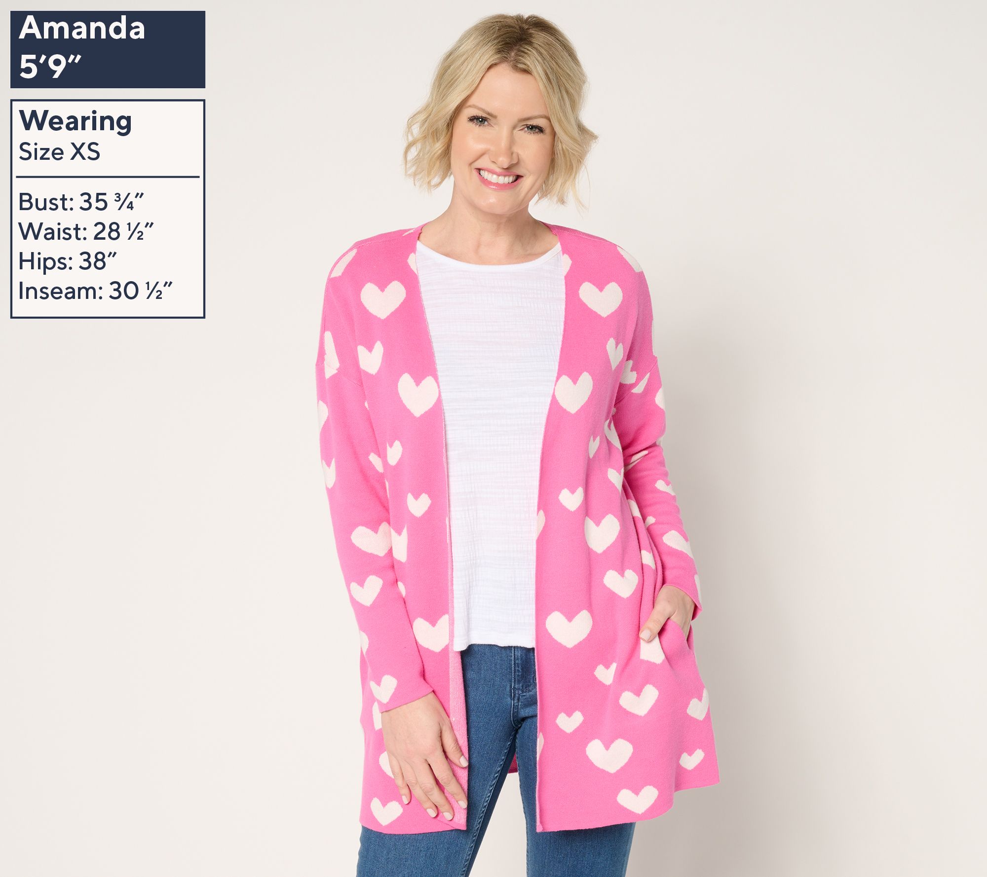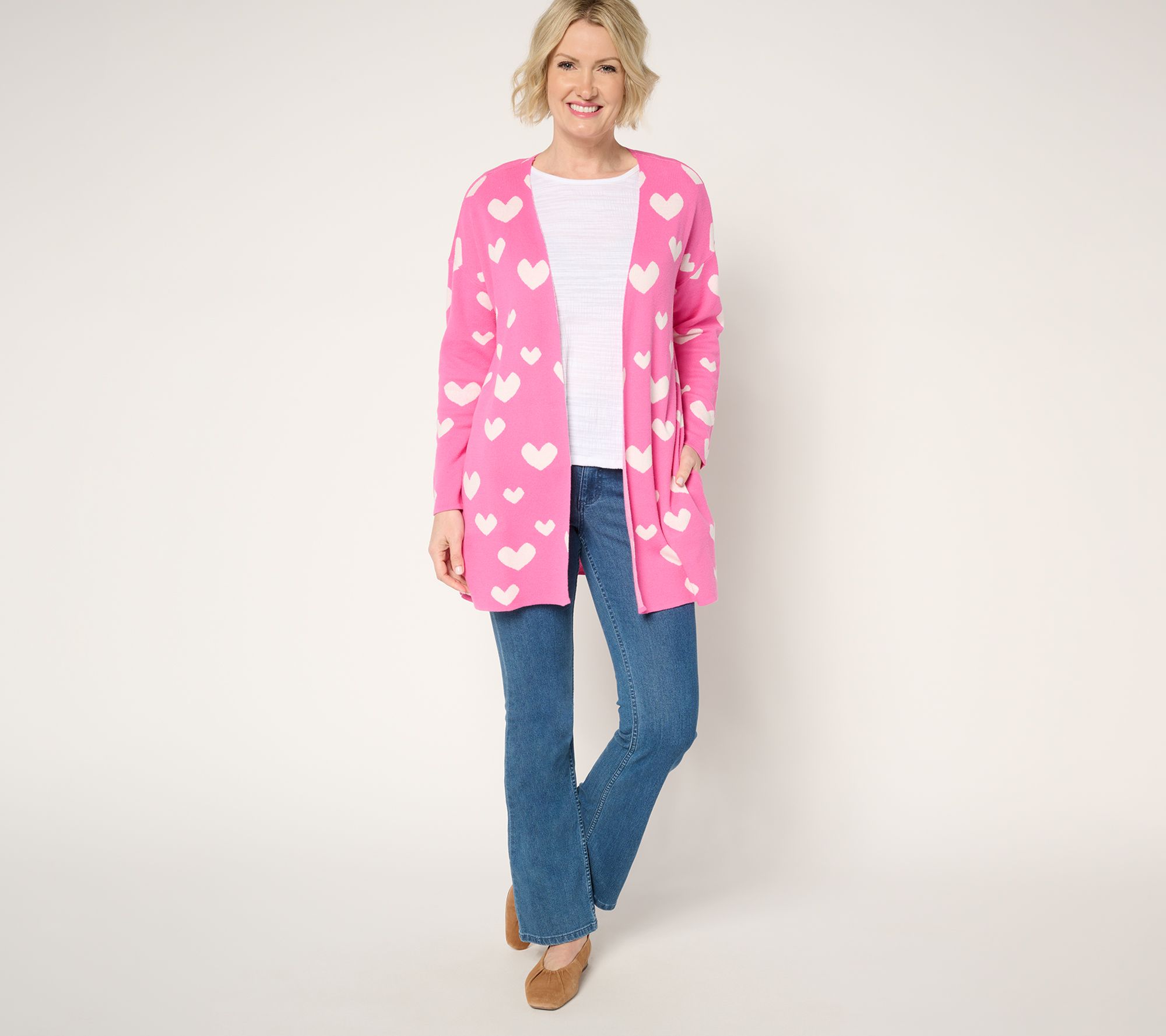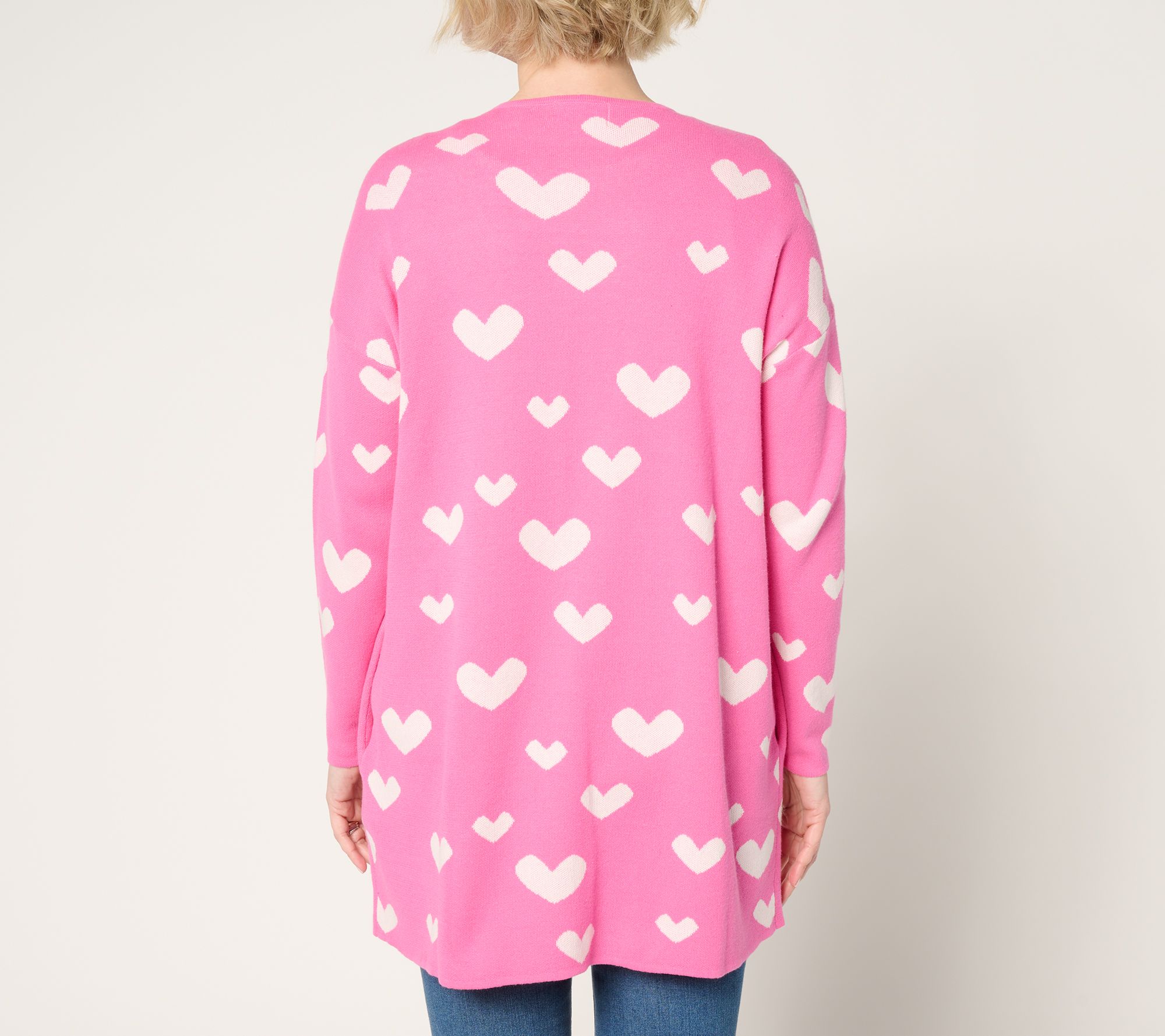 Cupid-approved! This intarsia cardigan gets lots of love -- and wear -- with its adorable medley of hearts placed perfectly throughout the flattering design. You'll fall in love with its elevated whimsy over and over again -- all year long. From Driftwood Jeans.