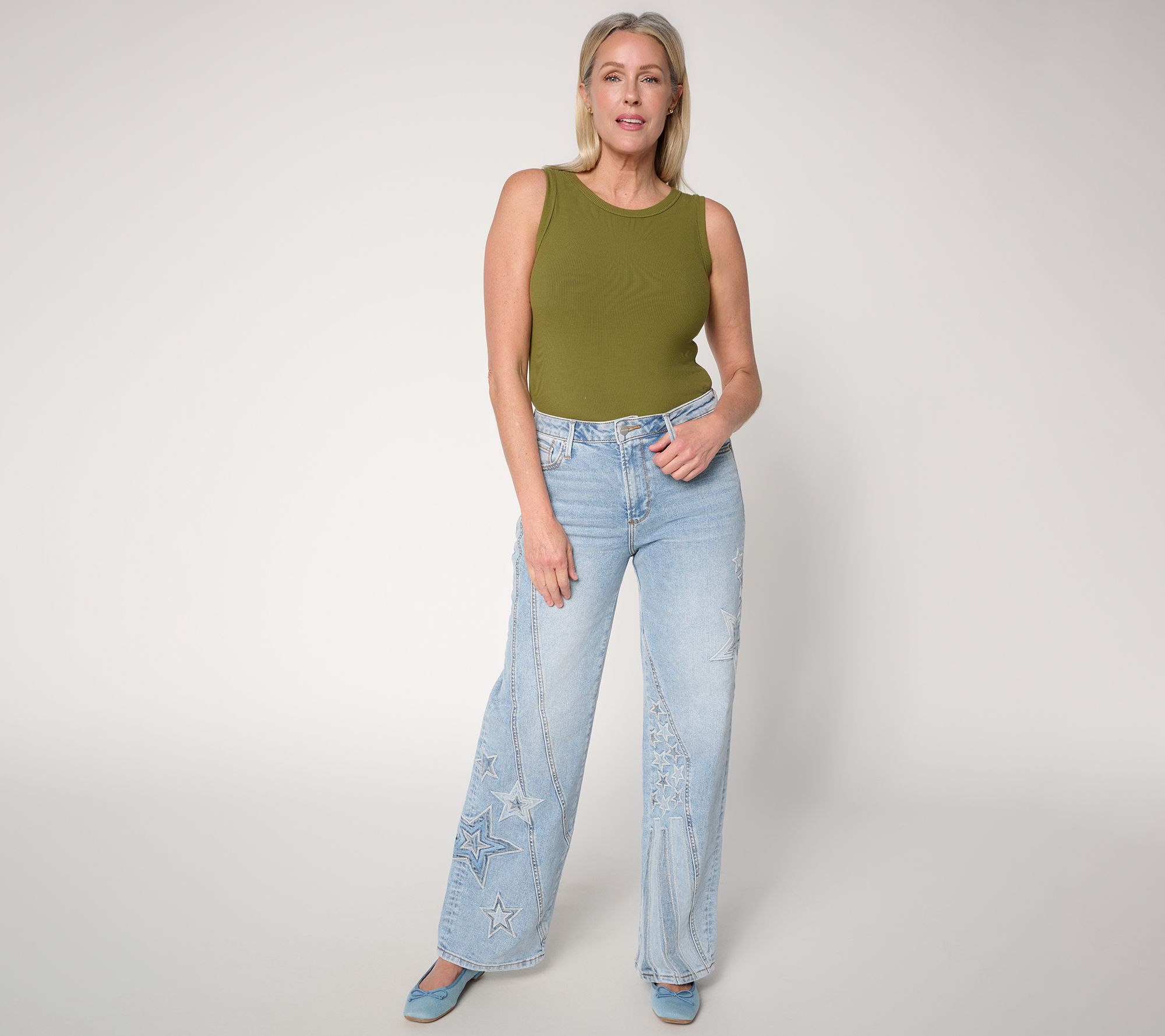 Jazz up your jean routine! These stars-and-stripes embroidered jeans lend a patriotic spirit to your denim drawer. Whether you're headed out for holiday picnic or fireworks festivities, they'll bring Americana style and cotton-rich comfort to every occasion. From Driftwood Jeans.