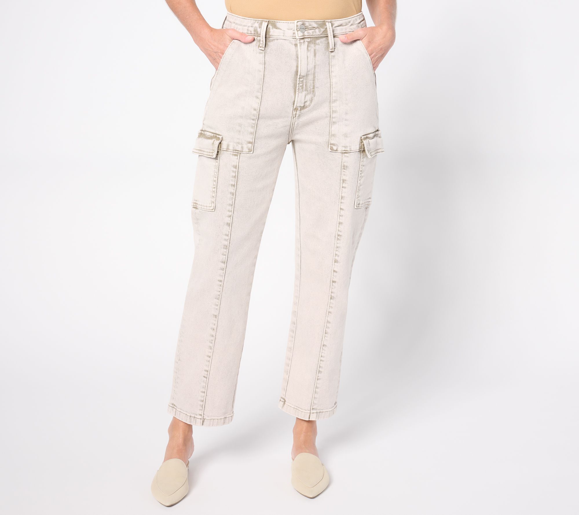 Drift away from basic and boring and step into a trend-fresh take on denim with Driftwood Jeans Royce cargos. They're a wearable trend done right with a retro acid wash that (surprise!) is making a chic comeback in this all-grown-up iteration. This pocketed pair is just what your denim drawer has been dreaming of. From Driftwood Jeans.