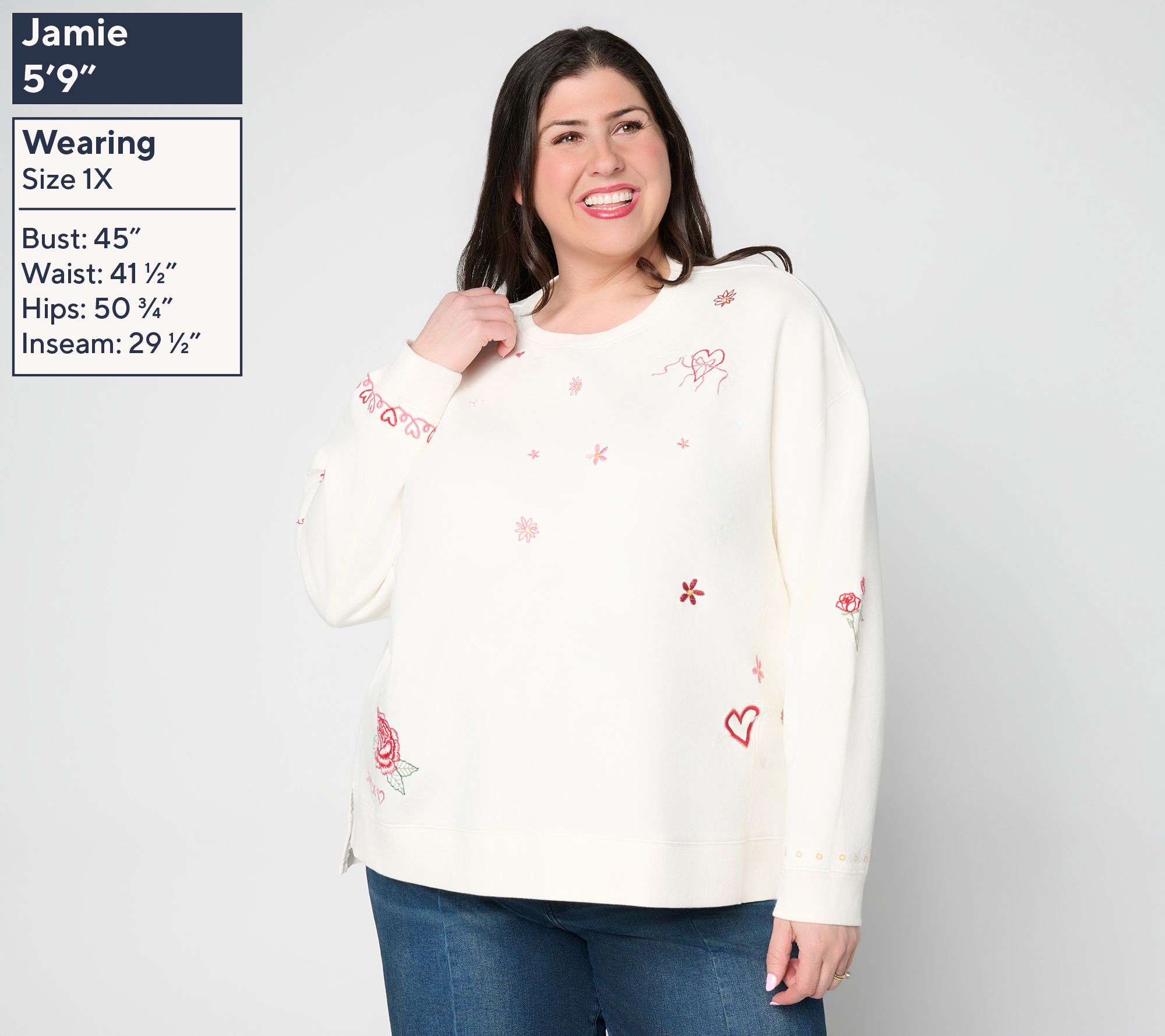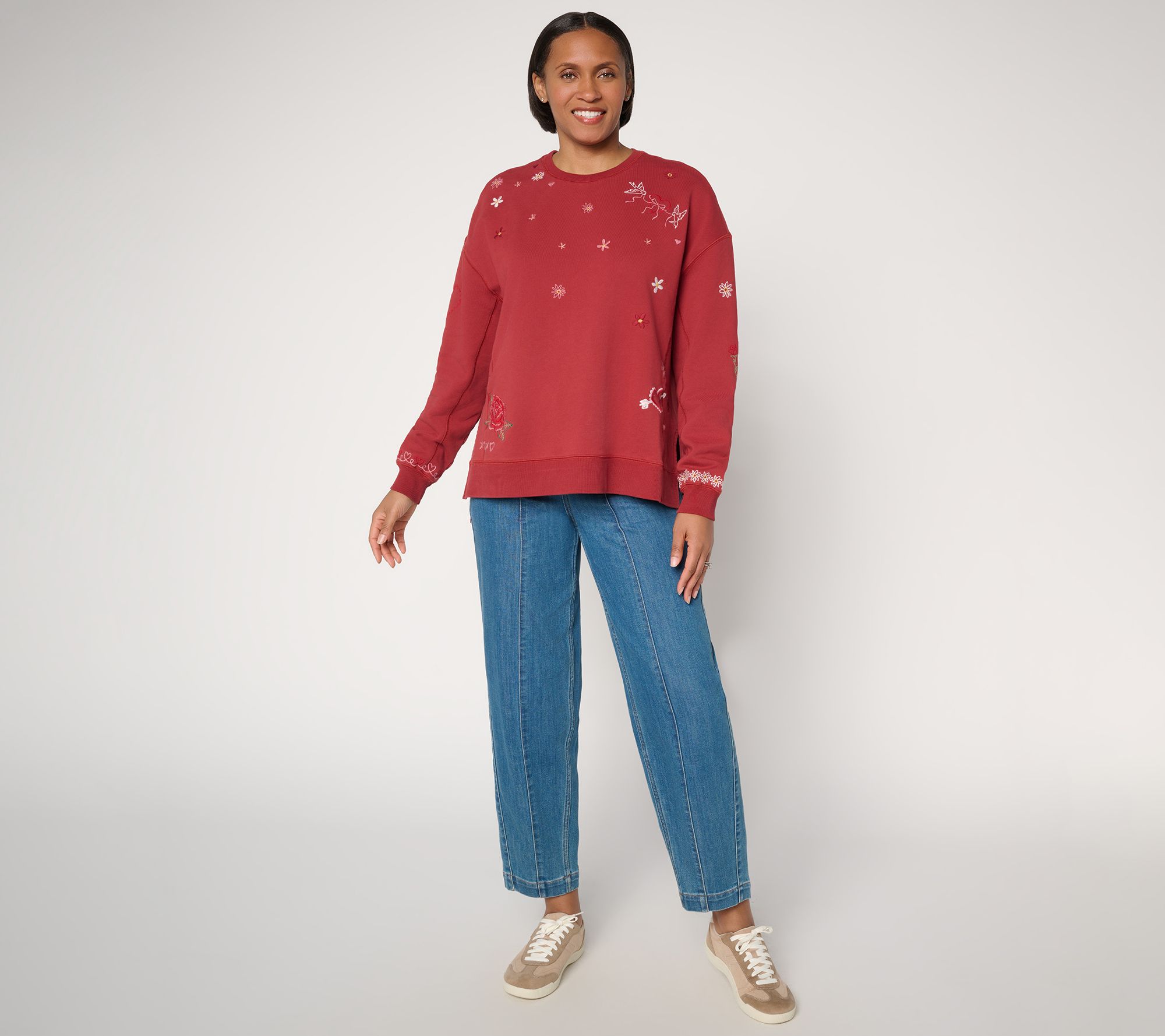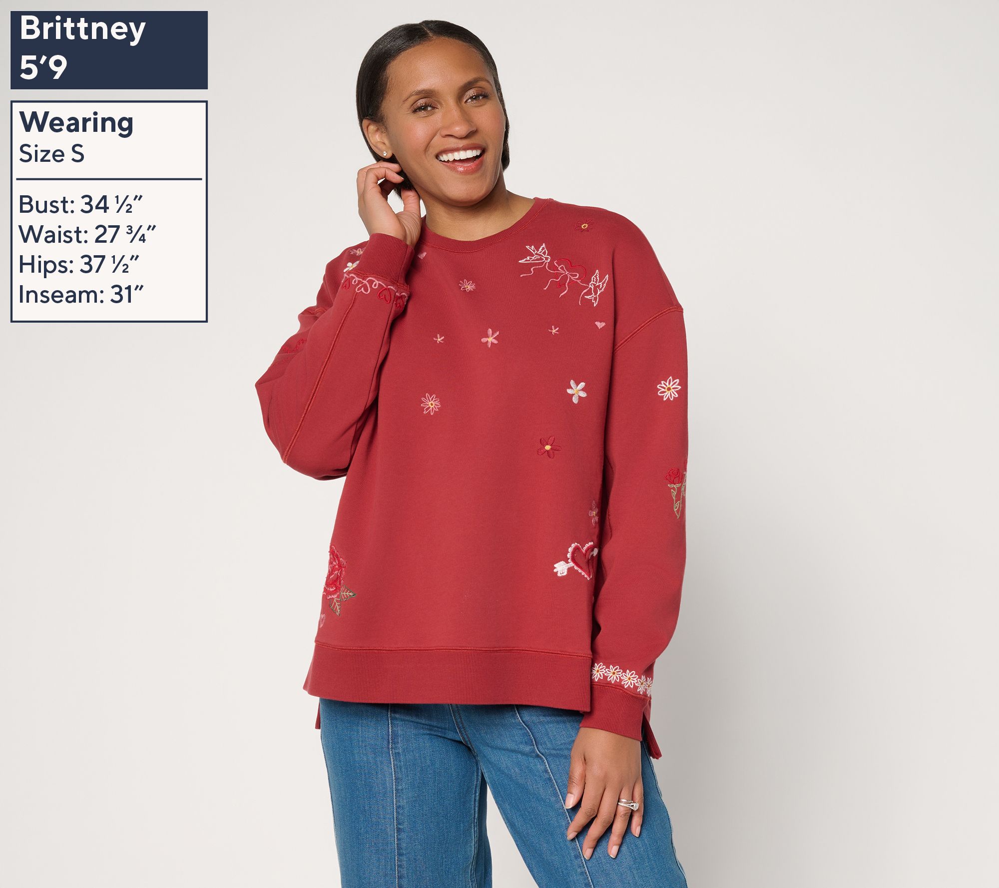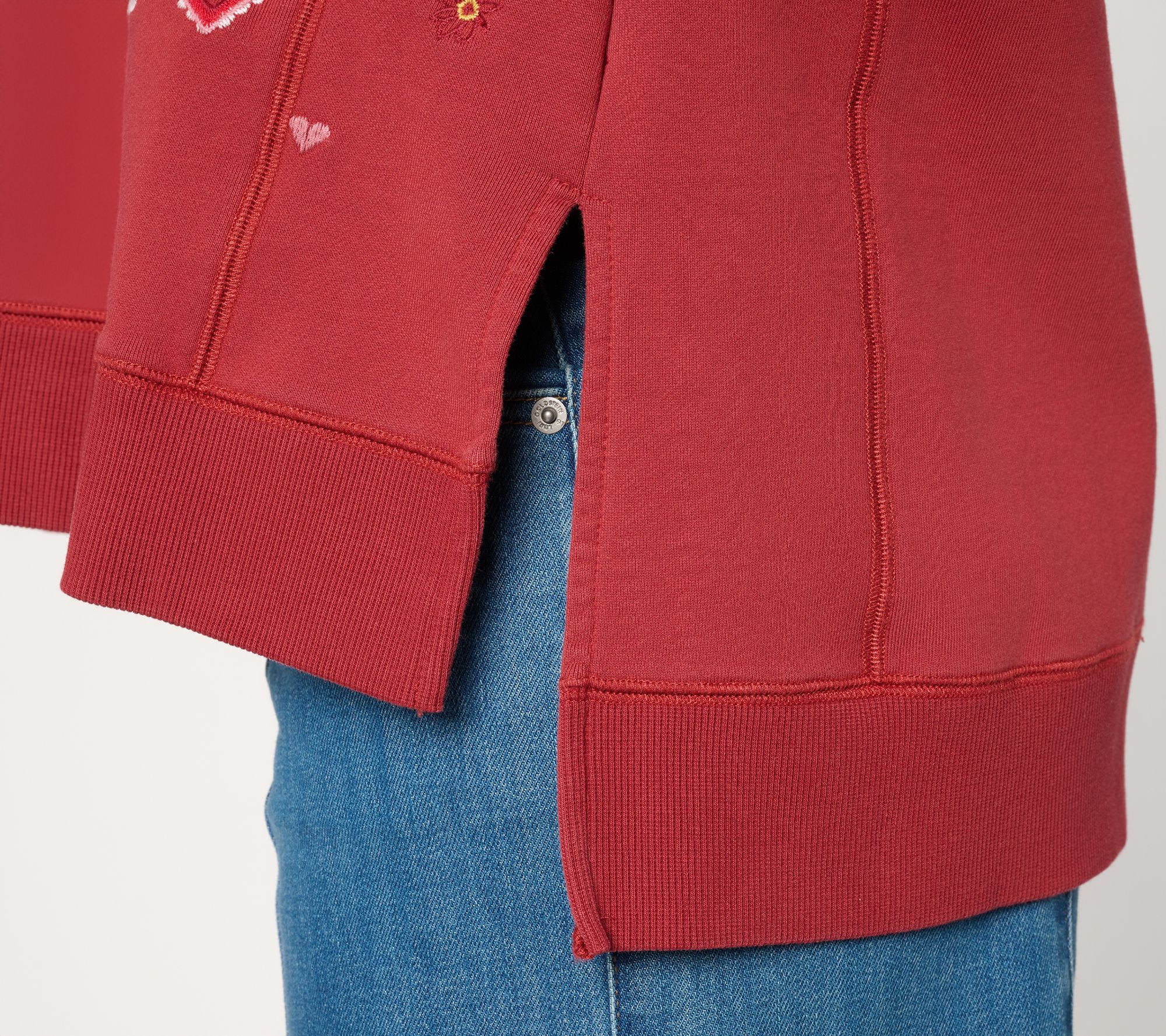 Fashion that's y-o-u -- to the (love) letter! Whether you're heading to an outdoor market or catching up with friends at your favorite cafe, this charmingly embroidered French terry top gives you room to move and stylish flair. From Driftwood Jeans.