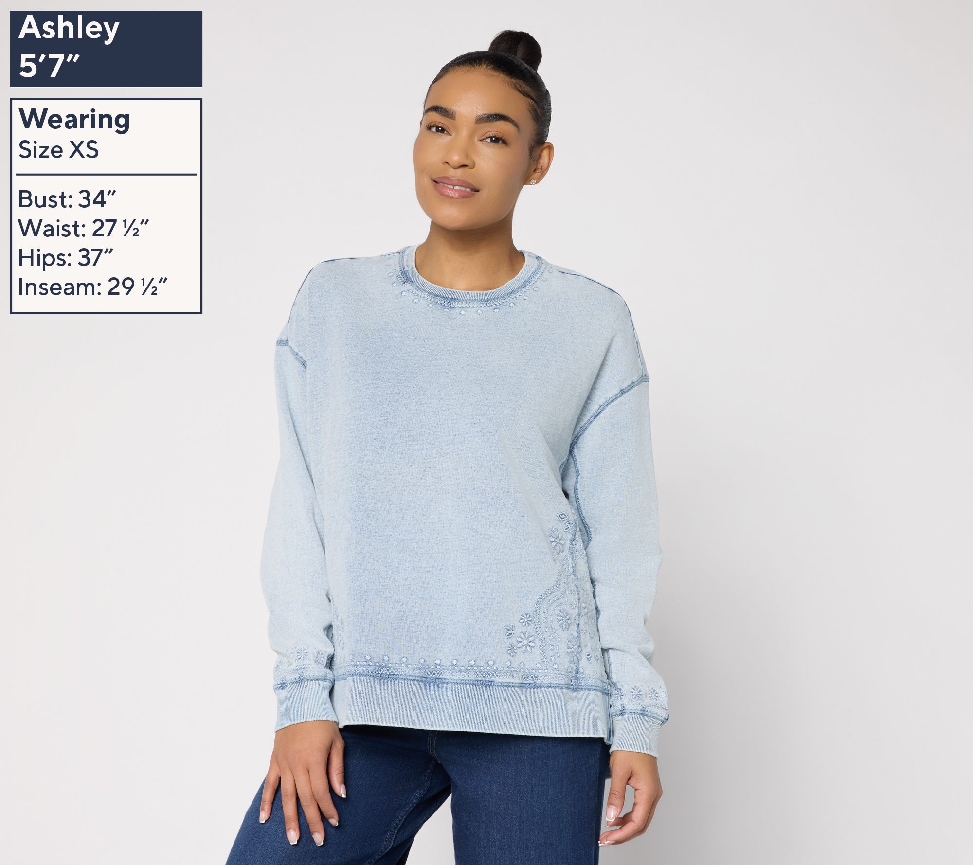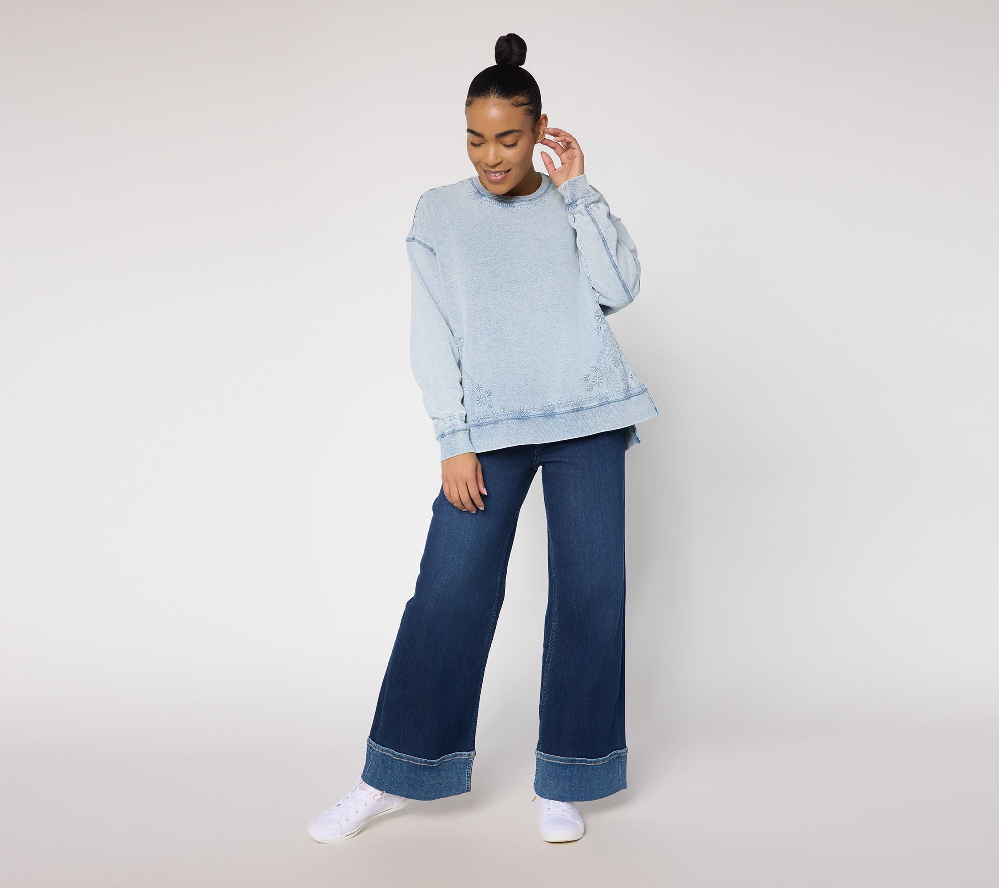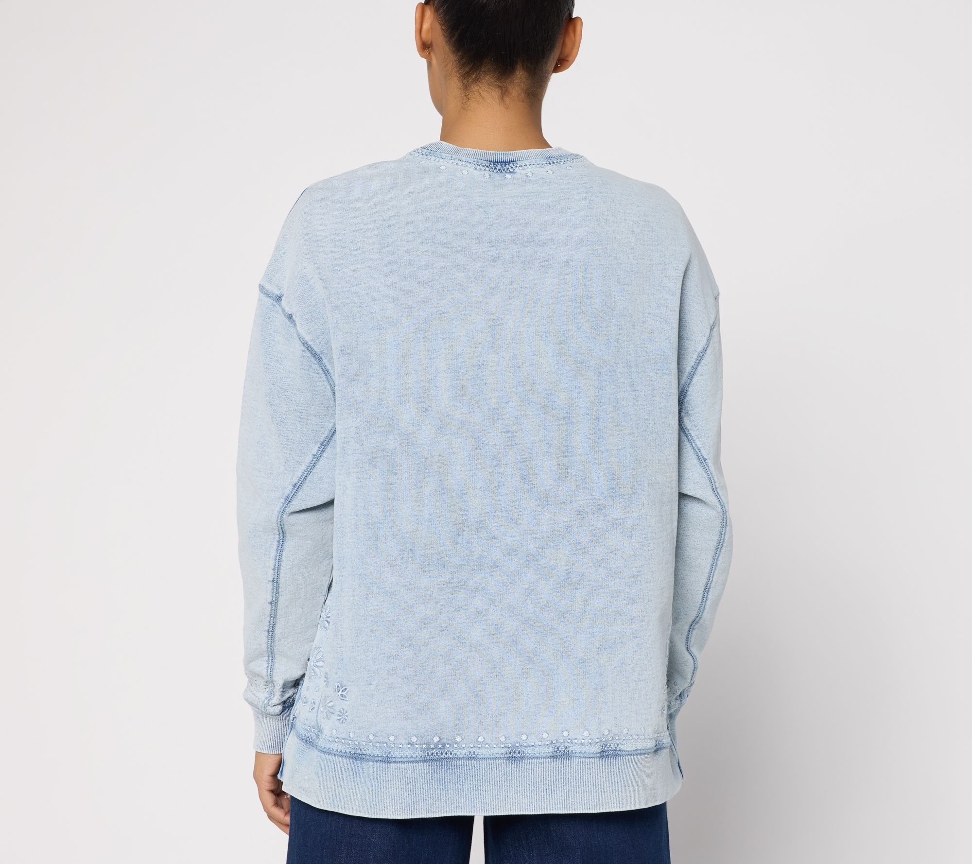 The spring forecast calls for... snowflake-embroidered French terry! Whether you're heading to an outdoor market or catching up with friends at your favorite cafe, this charmingly embroidered top gives you room to move and stylish flair. From Driftwood Jeans.