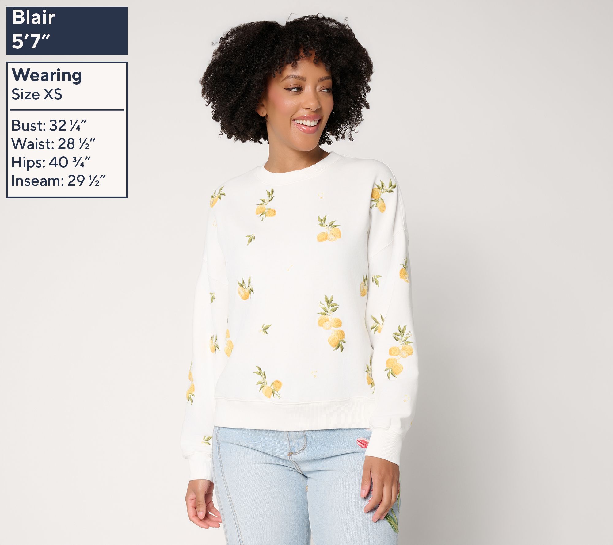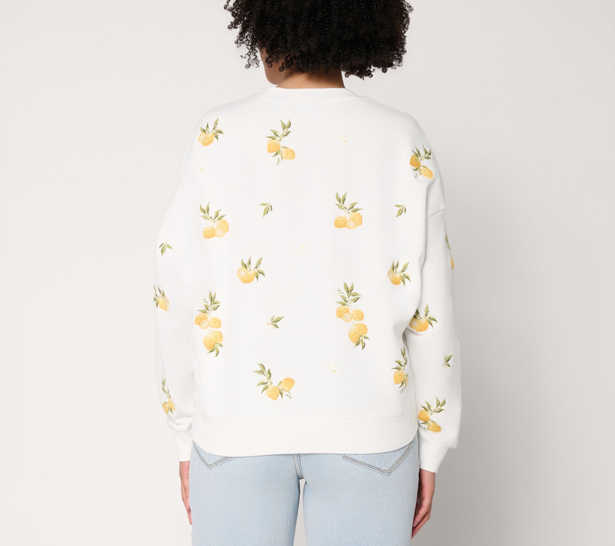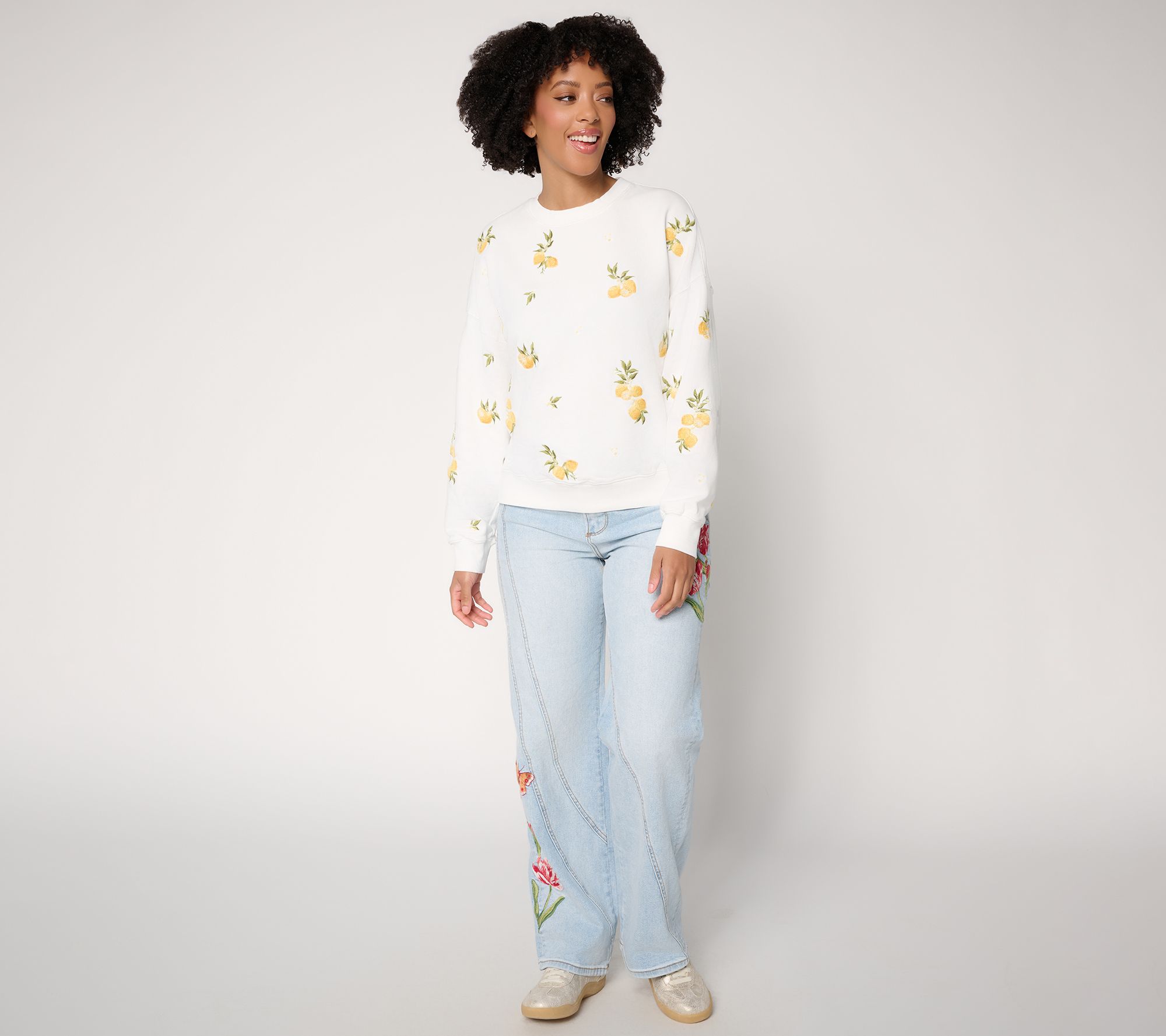 Celebrate comfy-casual moments in this lightweight sweatshirt, styled with an embroidered design for a standout detail. Whether you're relaxing at home or stepping out with friends, the soft knit offers easy, laid-back charm paired with jeans or shorts. From Driftwood Jeans.