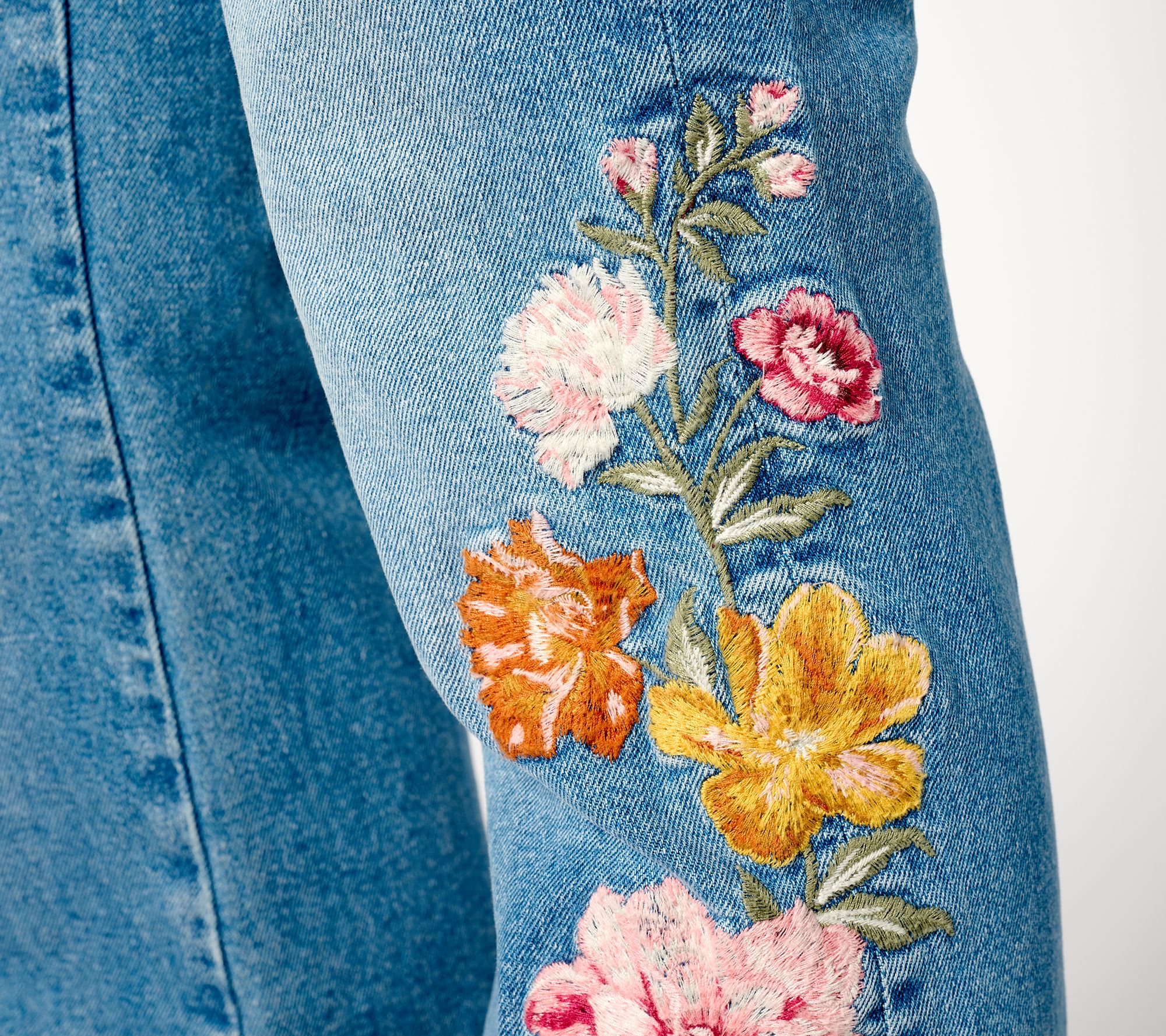We all love our lived-in denim, but there are times when it may look a little too laid-back. Solution: reach for this preimum pair that elevates any 'fit with intricate embroidery. Polished and perfect. From Driftwood.