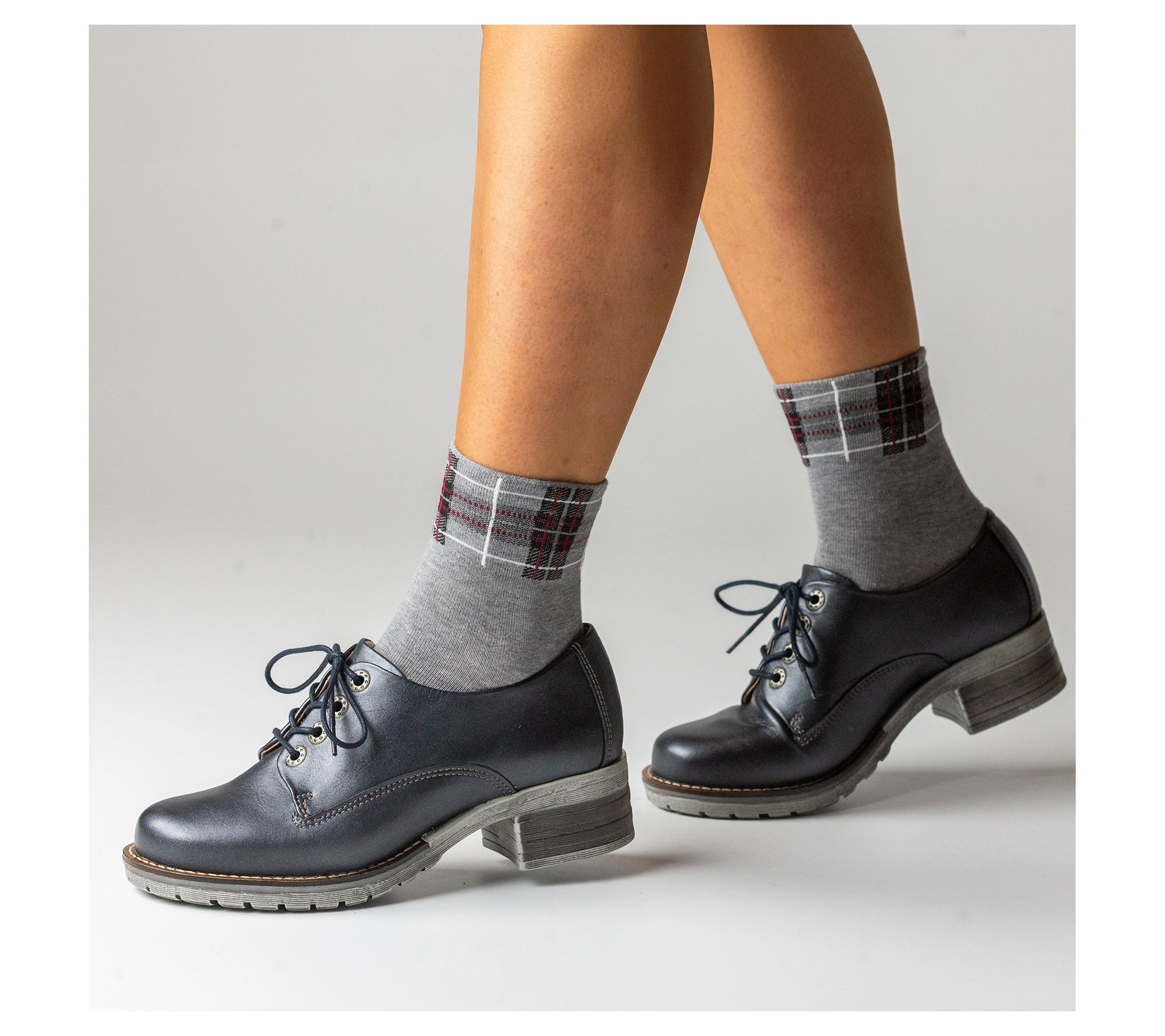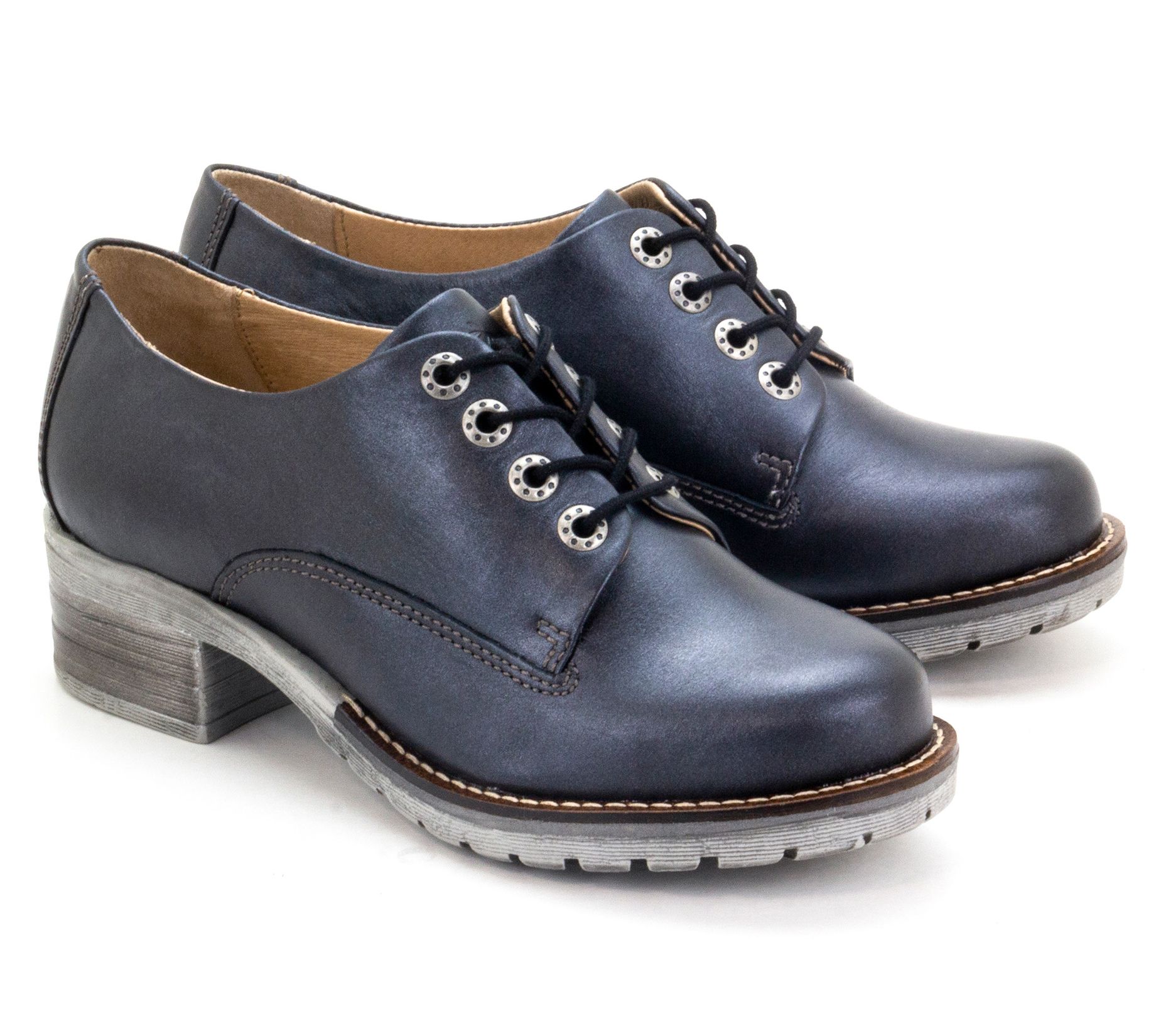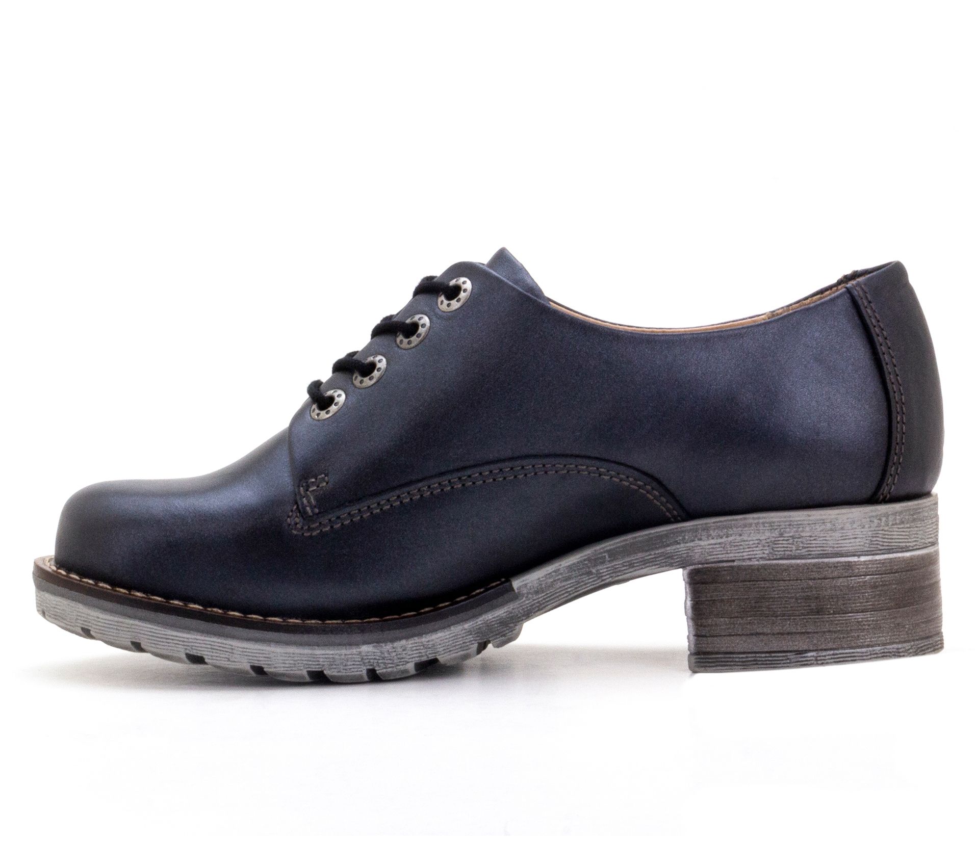 Lunch meetings, strolls through the city, or catching up with friends at your favorite cafe -- this lace-up style is ready for any occasion. These oxfords blend subtle metallic leather with a timeless silhouette, offering an air of sophistication and comfort that carries through your day. A padded tongue and a removable insole ensure every step is as cozy as the last, while the rocker bottom aids your stride. From Dromedaris.