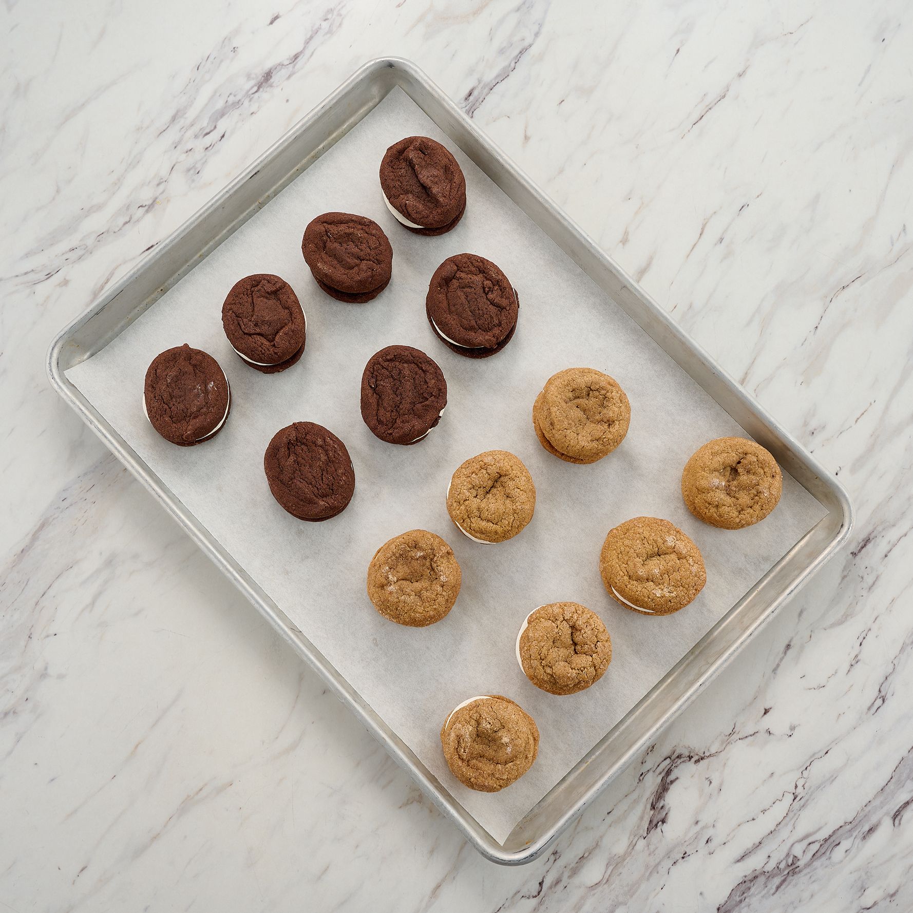 • Vanilla ice cream between either snickerdoodle or brownie cookies