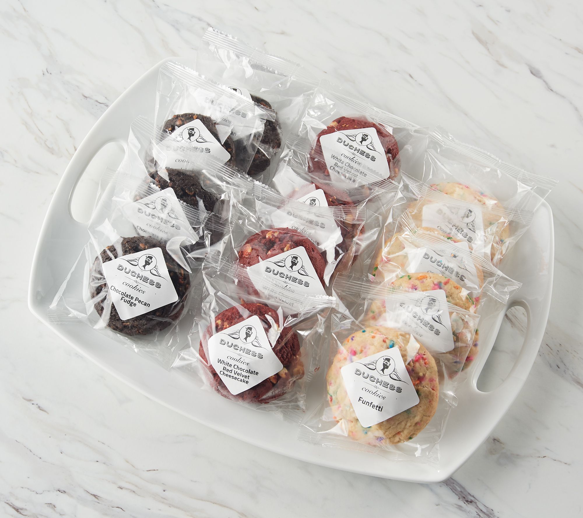 What's queen of the dessert table? With one royal glance, you'll know it's these Duchess jumbo stuffed cookies. A New York City fave, these munch-worthy cookie monsters offer decadent flavors like rich chocolate pecan fudge and red velvet cheesecake, all stuffed with incredibly delicious fillings to heat and eat. Ready to enjoy a royal treat (and your latest obsession)? From Duchess Cookies.