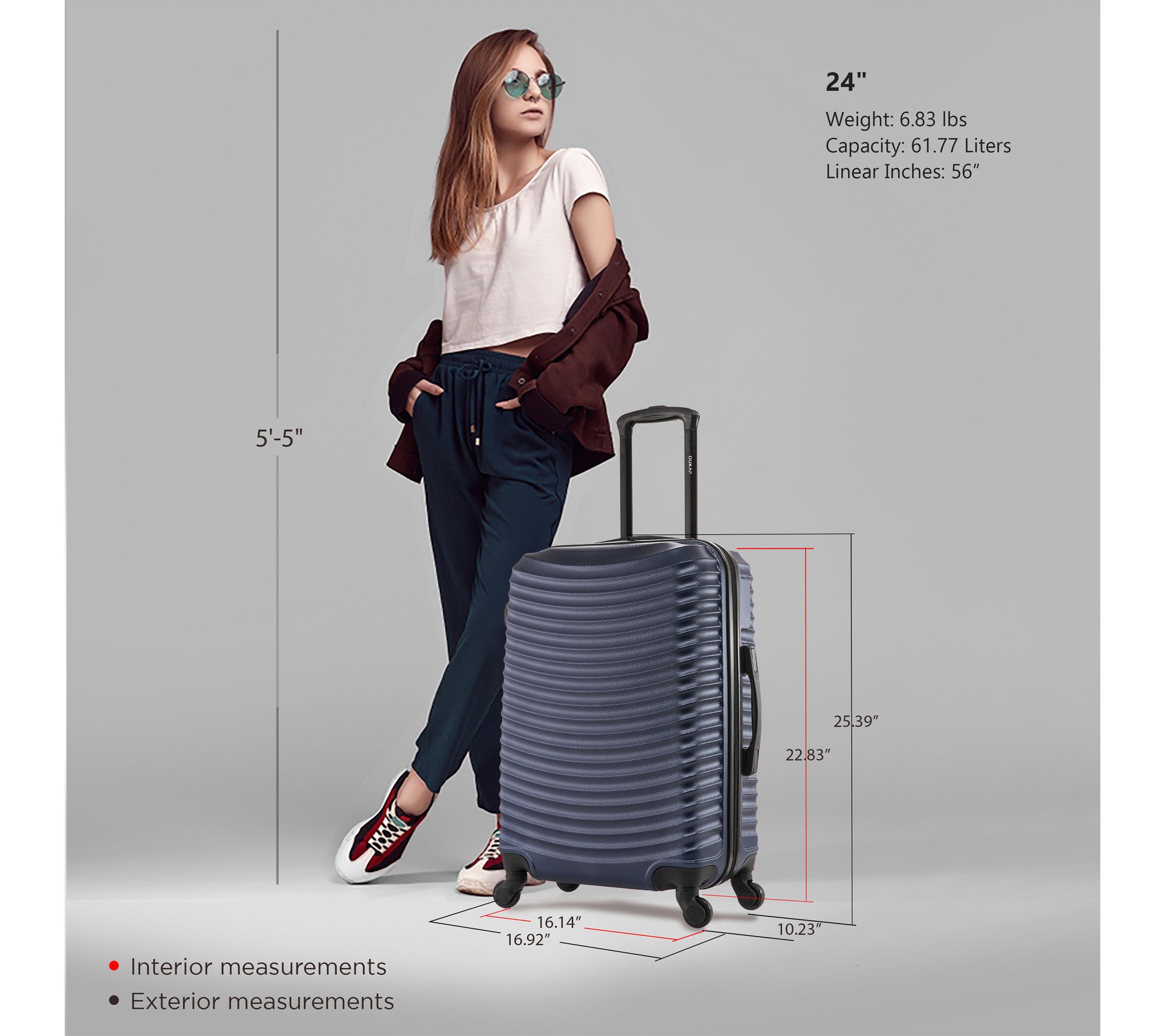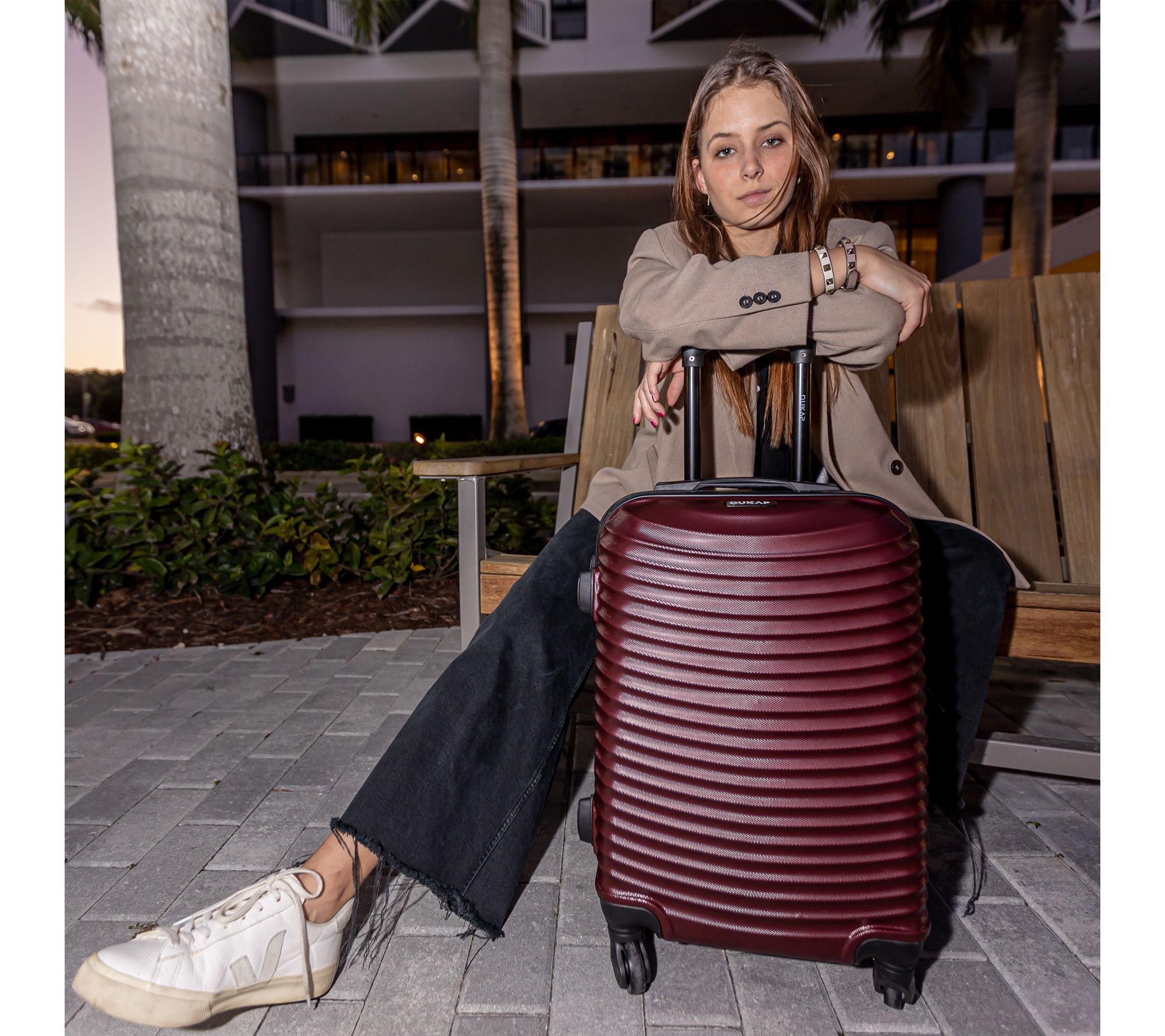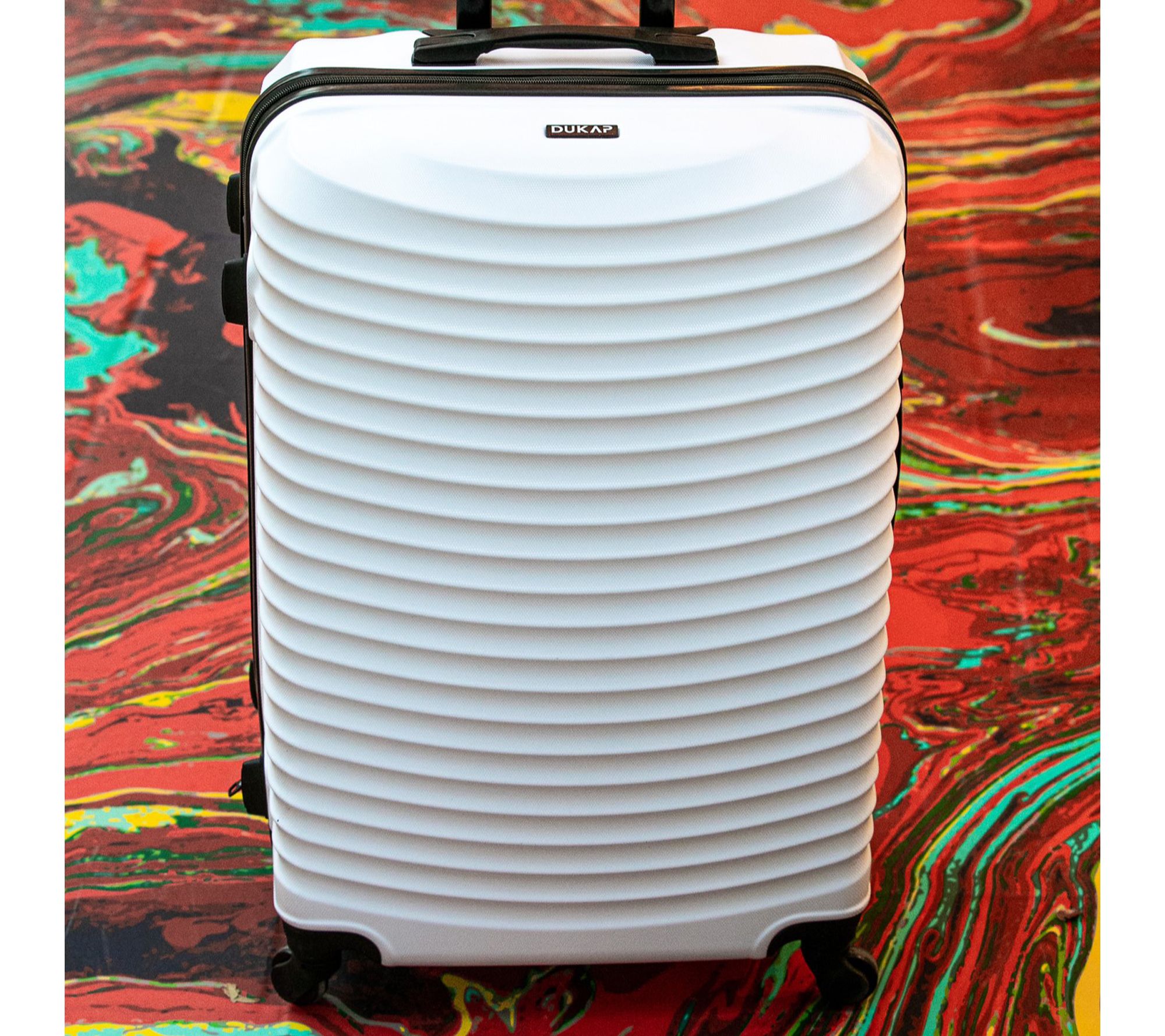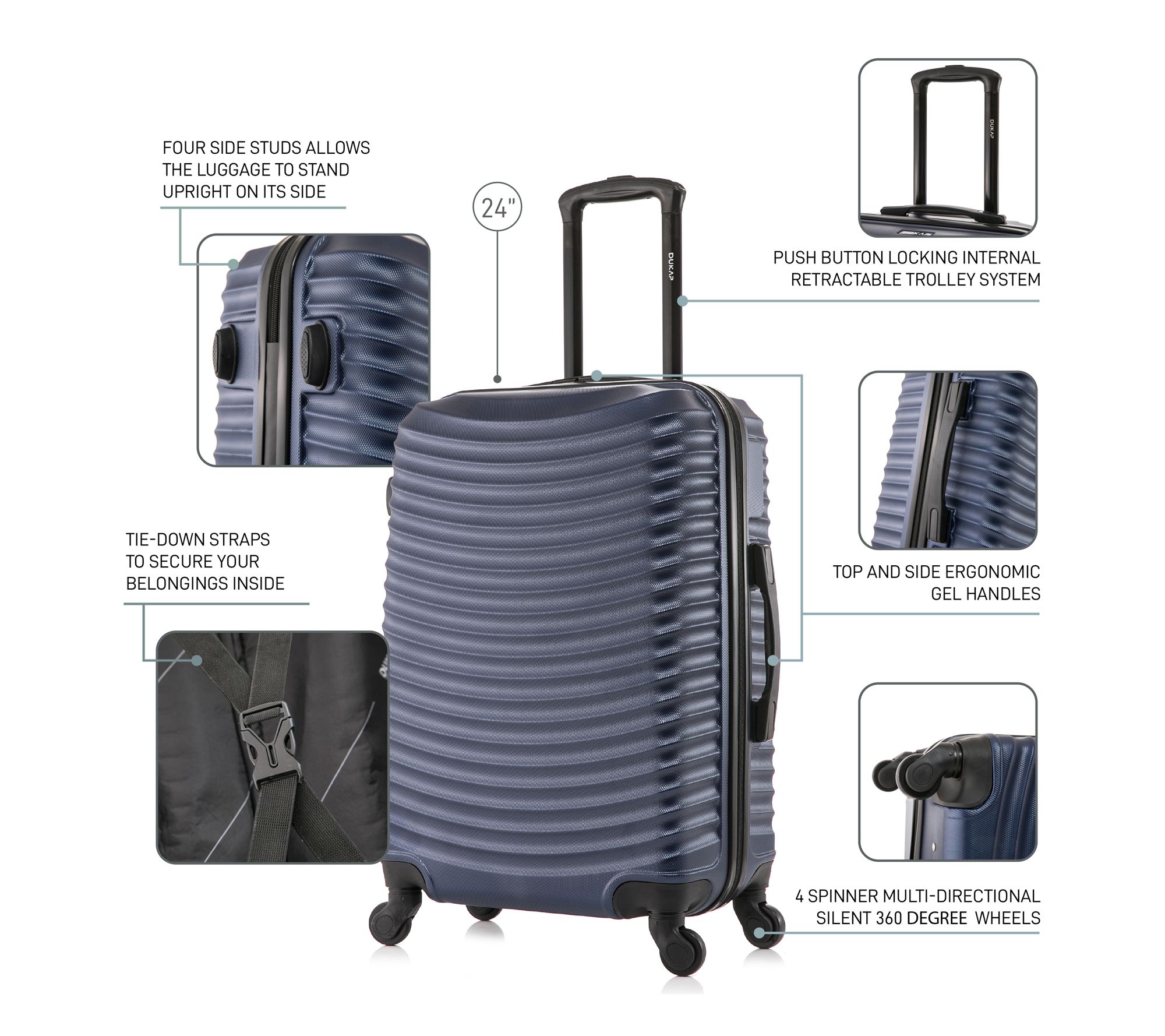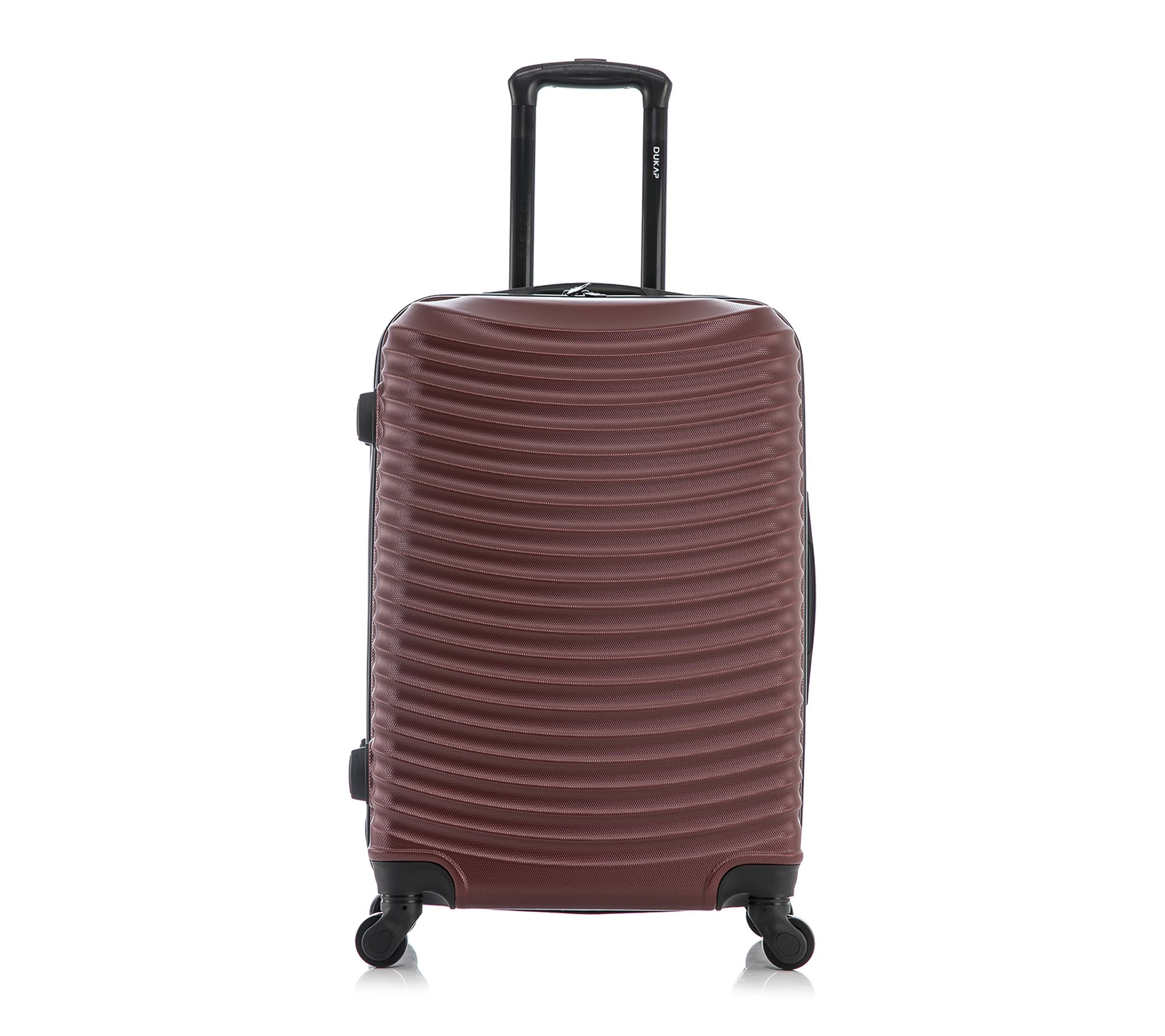 Glide effortlessly through bustling airports and busy streets with this 24" lightweight hardside spinner, designed for travelers who crave easy mobility and expandable packing space. A textured finish stands up to the journey, while smooth dual spinner wheels and a locking trolley handle offer peace of mind from check-in to arrival. From Dukap.