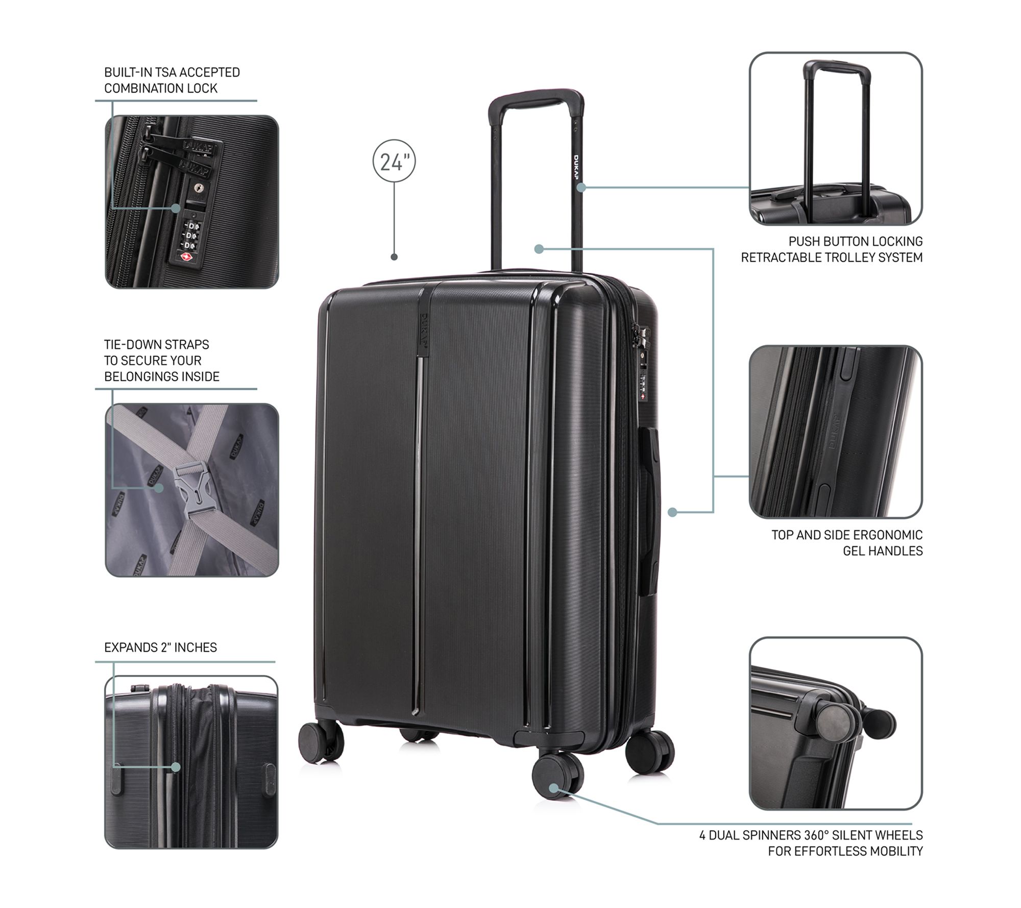 Elevate your travel game with the Airley 24" suitcase, boasting the perfect combination of contemporary design and functionality, this checked baggage is ideal for trips of a week or less. From DUKAP.