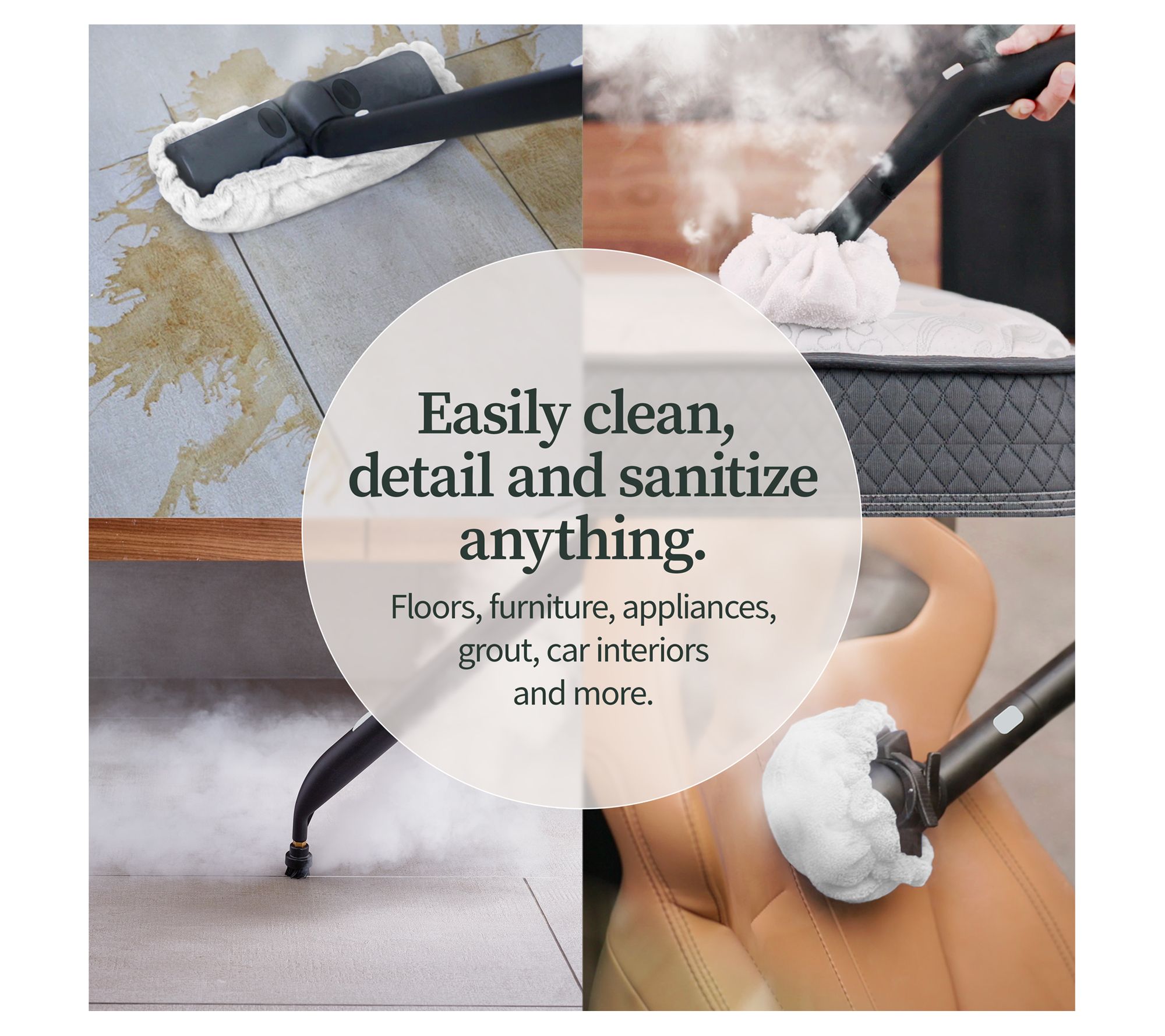 • Includes Floor Tool, Steam Lance, Triangle Tool, Window Tool, Two Extension Tubes, Brass Brush, Five Nylon Brushes, Three Microfiber Pads, Microfiber Cloth, and Microfiber Bonnet