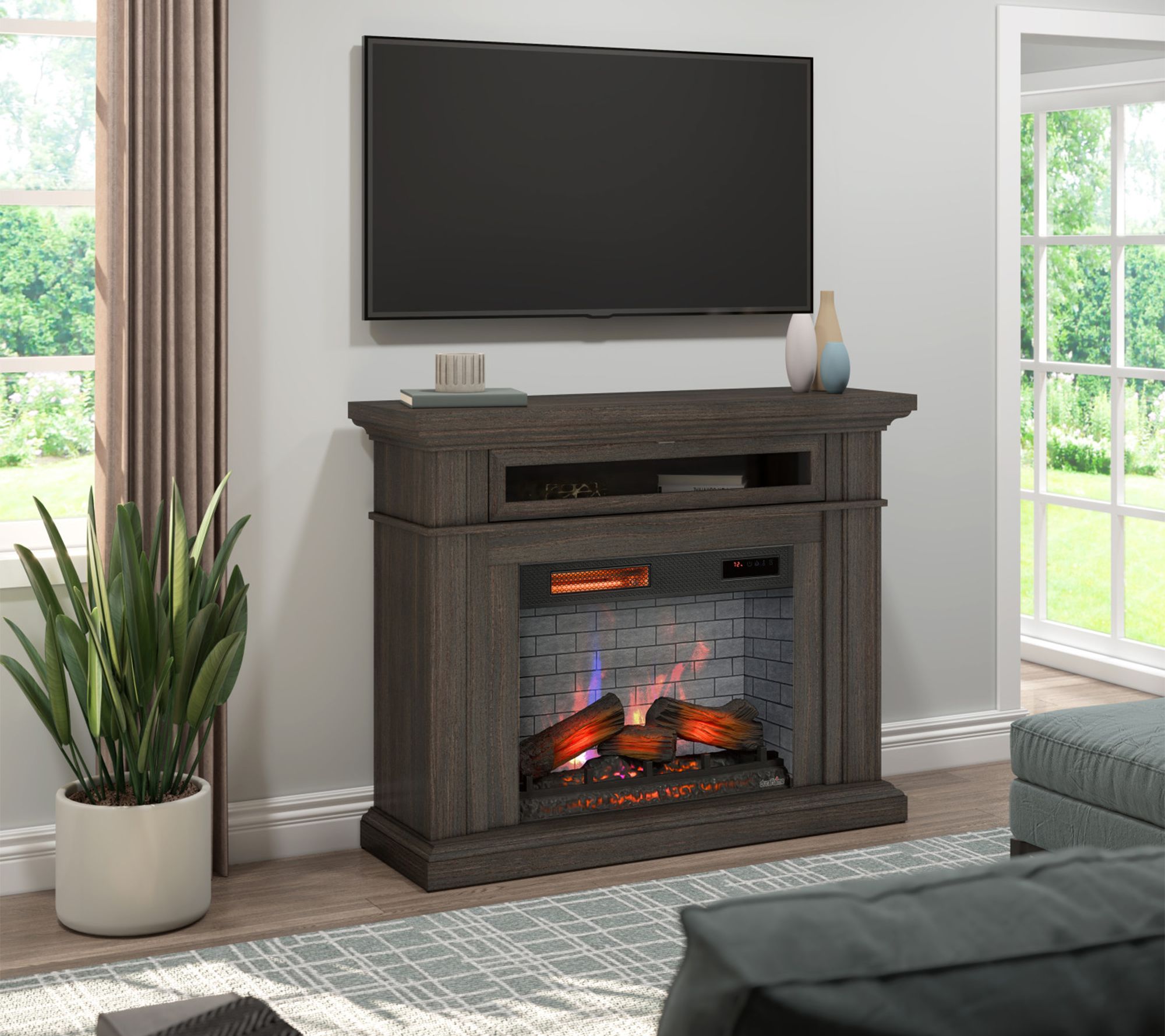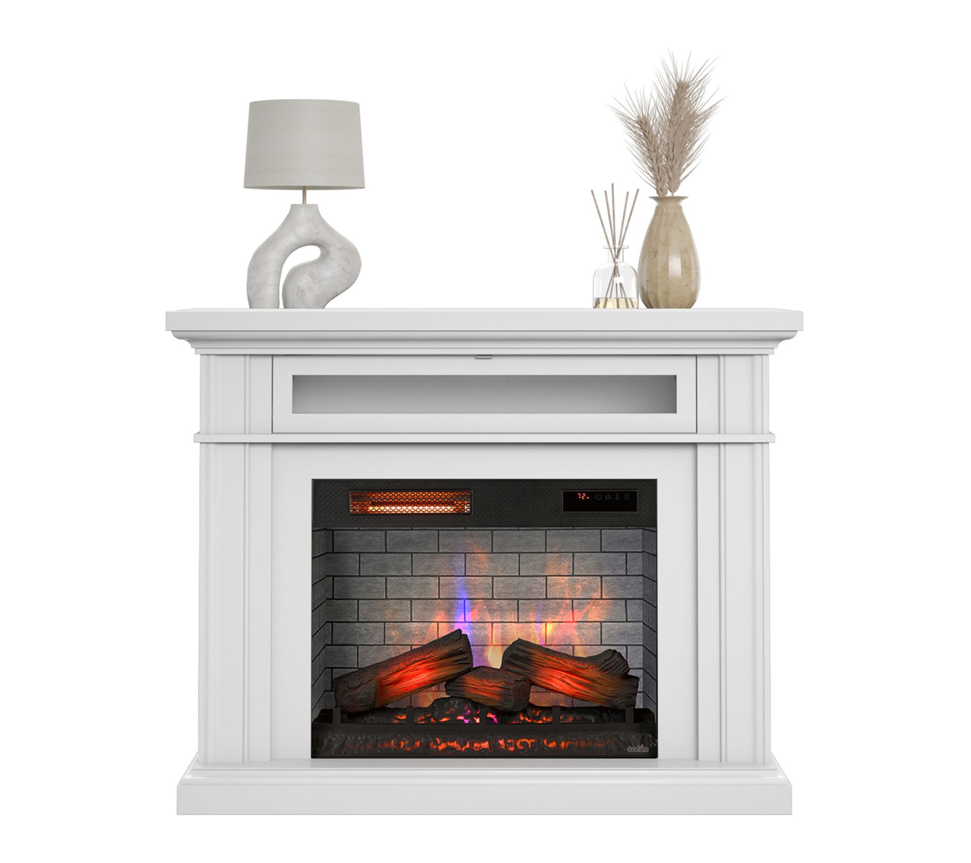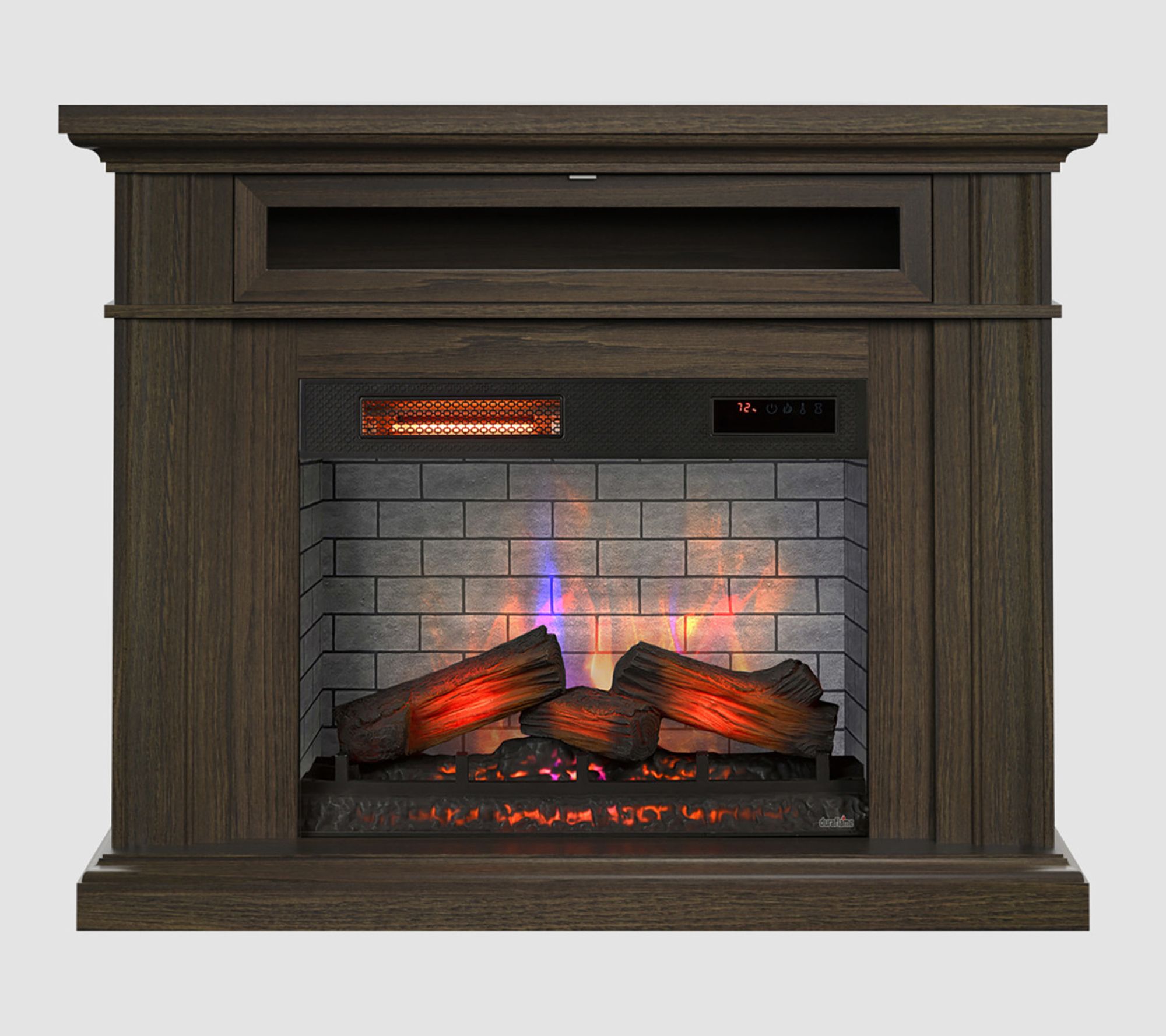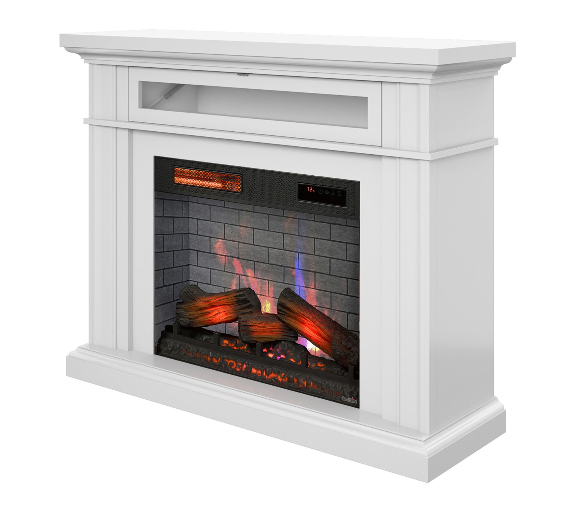Create a warm and inviting gathering space with this electric fireplace wall mantel heater. Designed to support TVs up to 40 lbs, it offers a cozy spot for family movie nights or quiet evenings, while the lifelike 3D Flame Effect lets you set just the right mood. Independent heat and flame controls mean you can enjoy the ambiance year-round, even when you don't need extra warmth. From Duraflame.