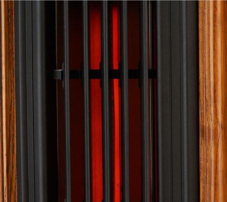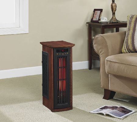 Big rooms are no problem for this slender heater. Its Infared Quartz technology heats a space measuring up to 1,000' square. An included remote control, plus the unit's oscillation setting and timer functions make it convenient and capable. Solid hardwood and real wood veneer construction gives the heater a classic look that fits into almost any decor. From Duraflame.
