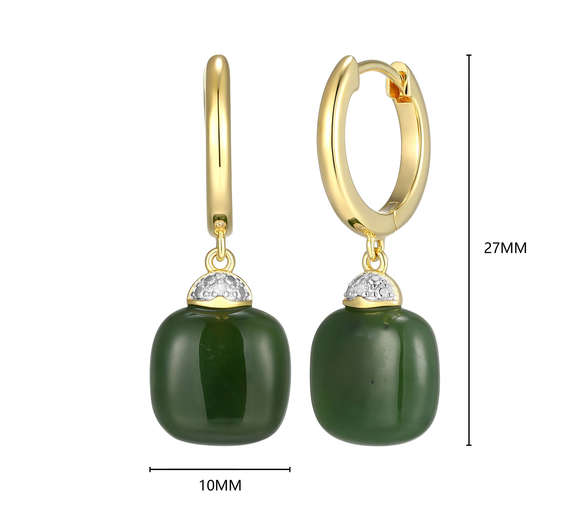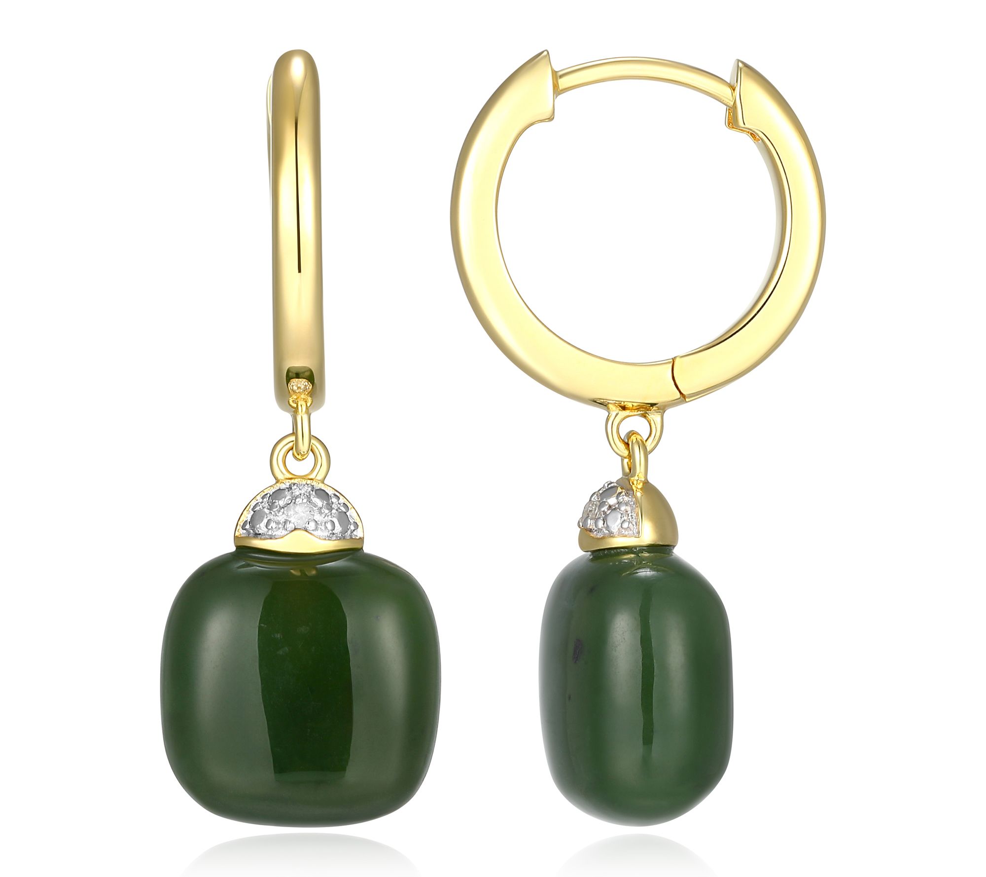Slip these hoop earrings on and let their cushion-cut jade add a vibrant touch to your day or night look. Accented with diamonds and set in 18K gold-plated sterling silver, this pair brings refined detail and eye-catching color to a casual brunch or dinner out. From Dynasty Jade.