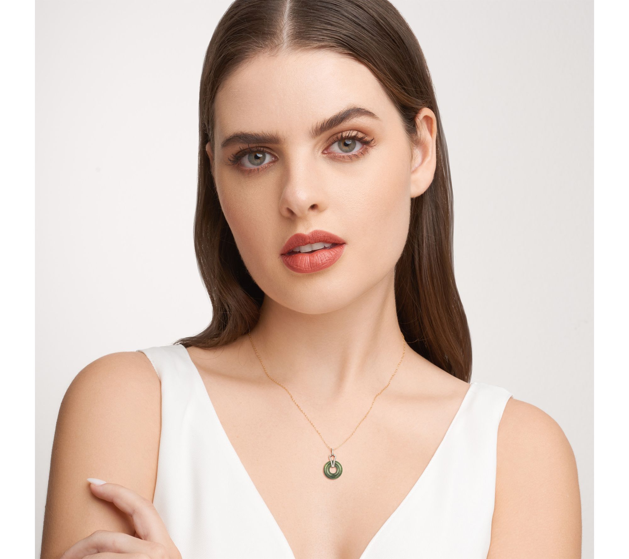 Whether it's a milestone birthday or a spontaneous dinner out, this pendant necklace adds unmistakable style with its vibrant jade centerpiece and shimmering diamond accent. The open circle design creates a modern statement that's easy to pair with everything from colorful dresses to classic knits. From Dynasty Jade.