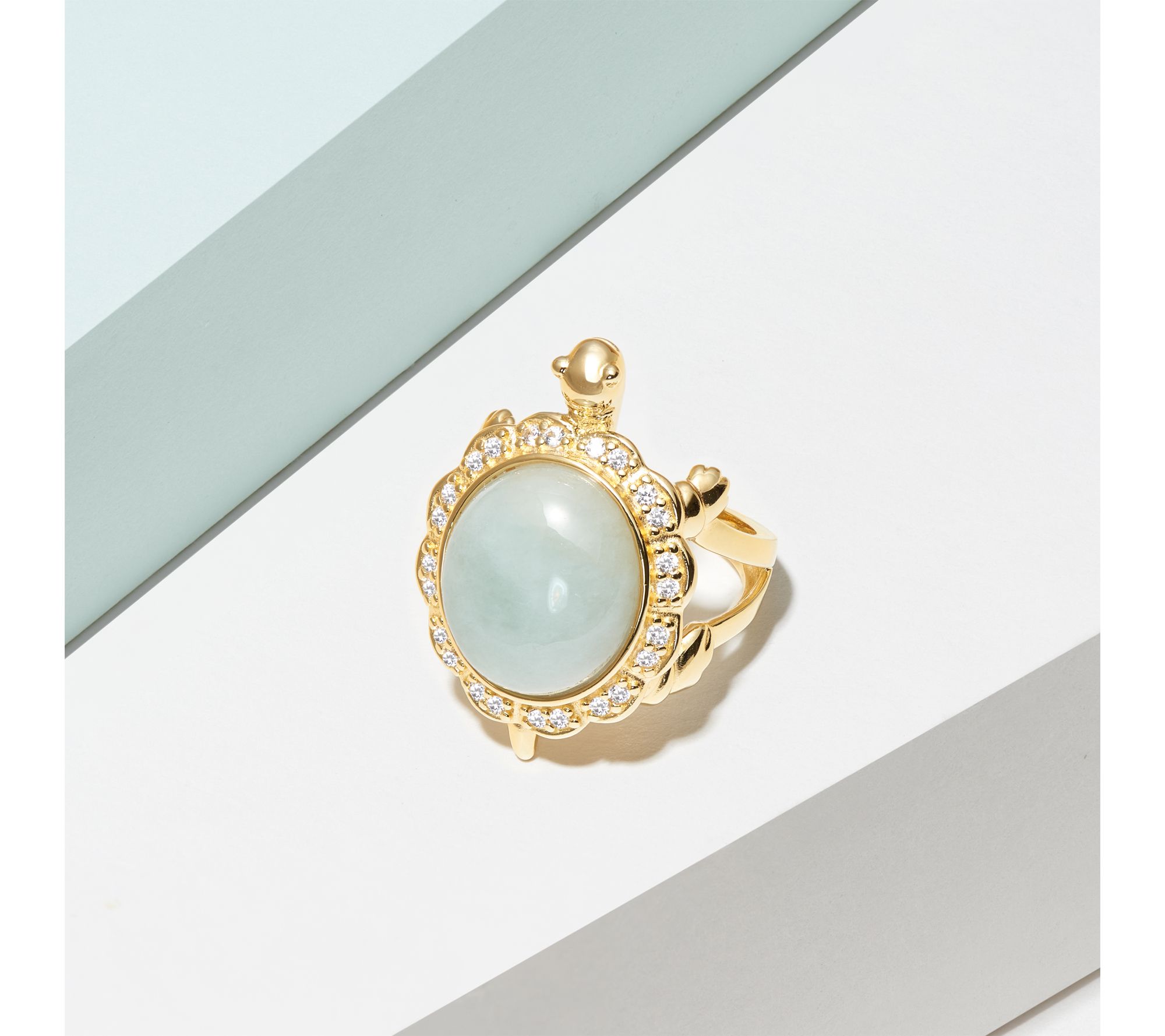 Dynasty Jade Turtle Ring, 18k Gold Plated Sterling Silver