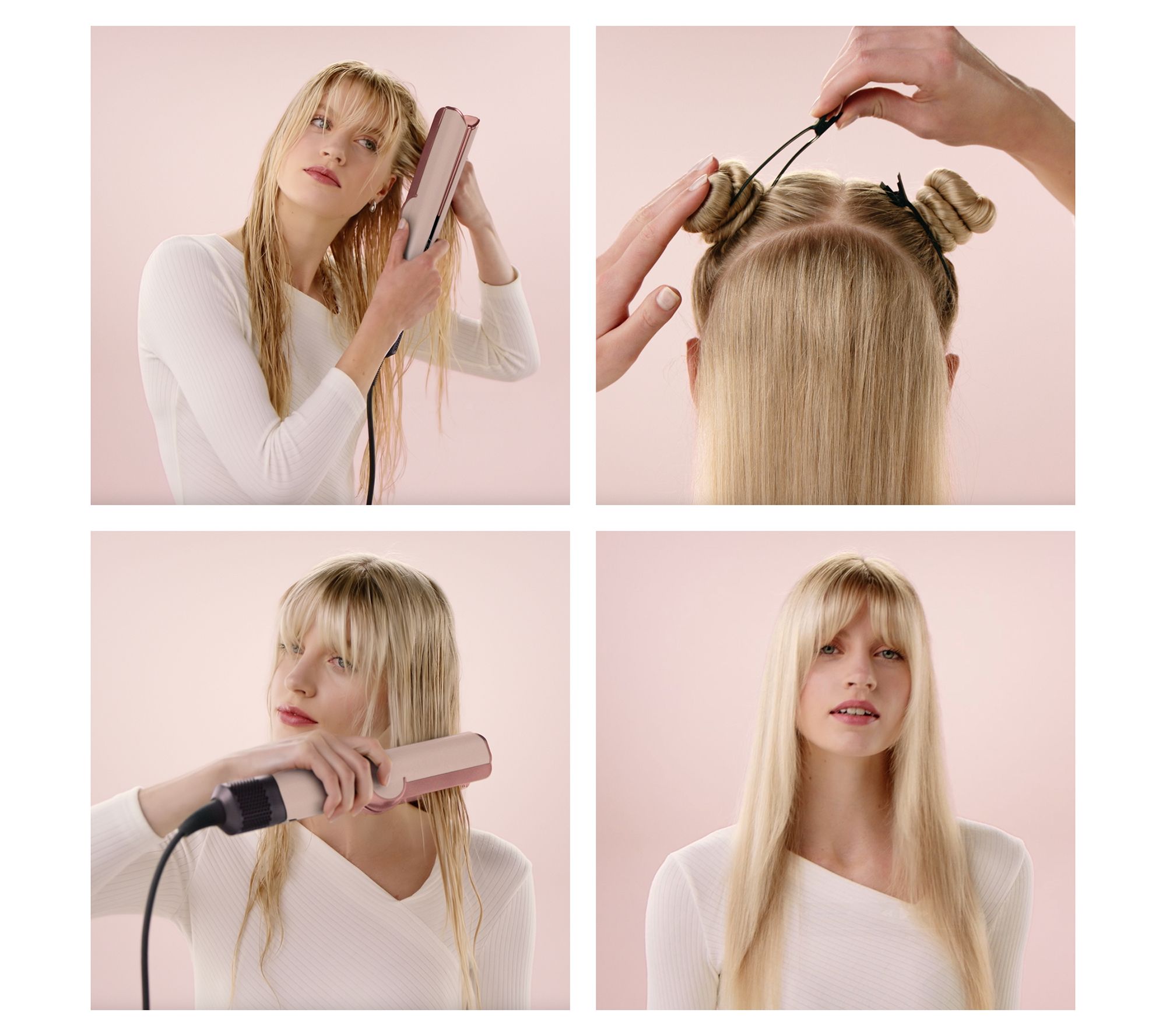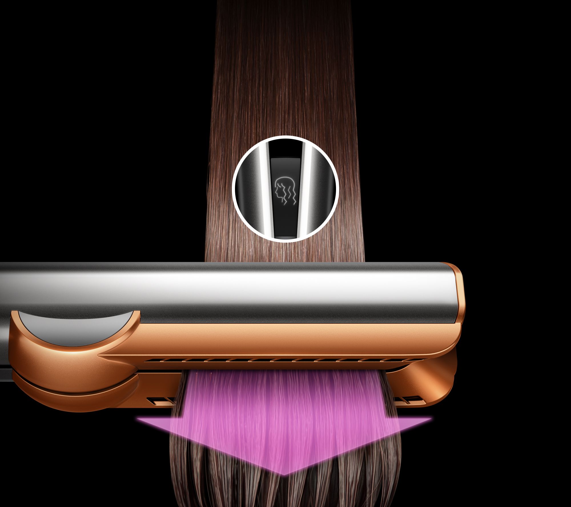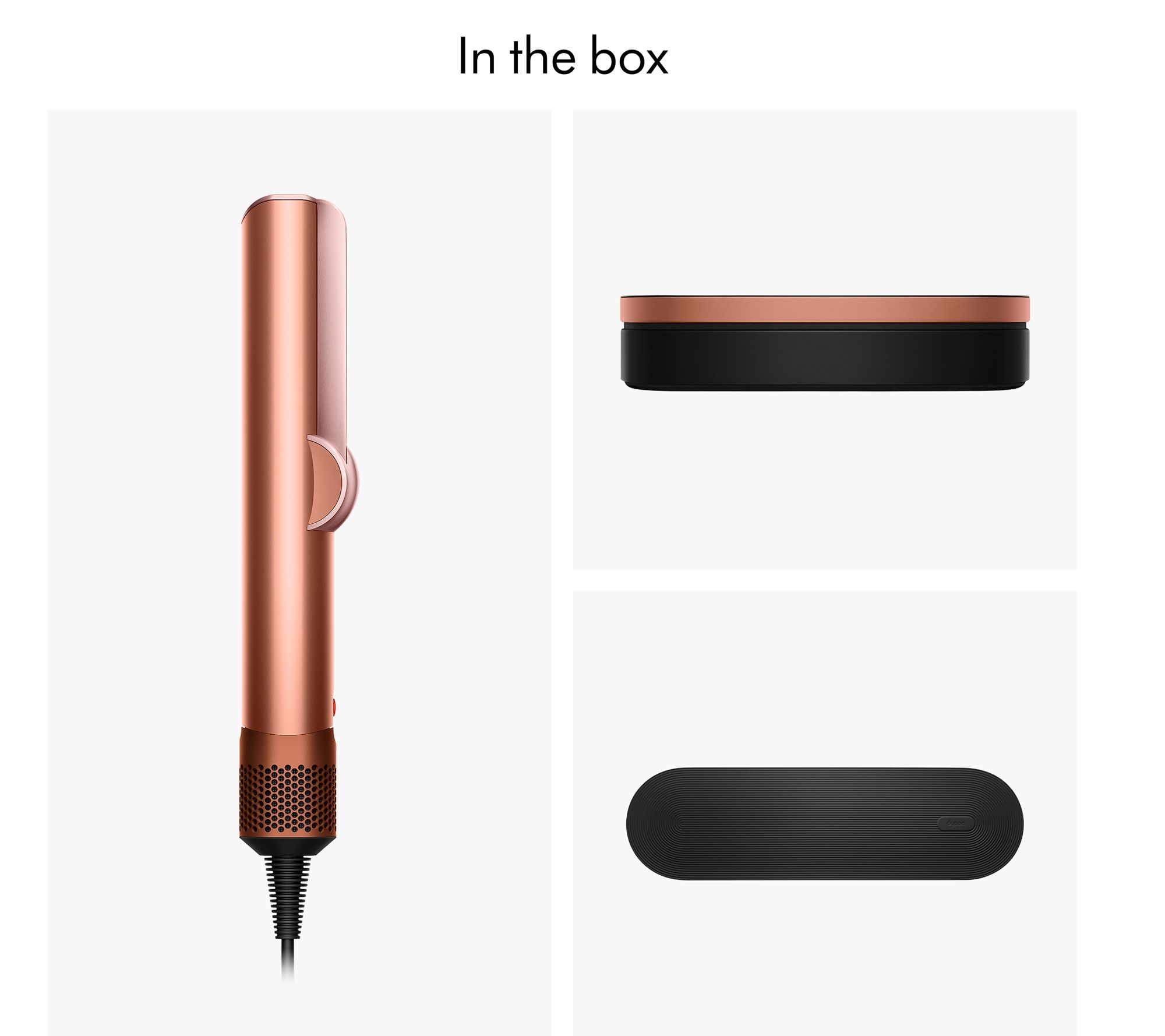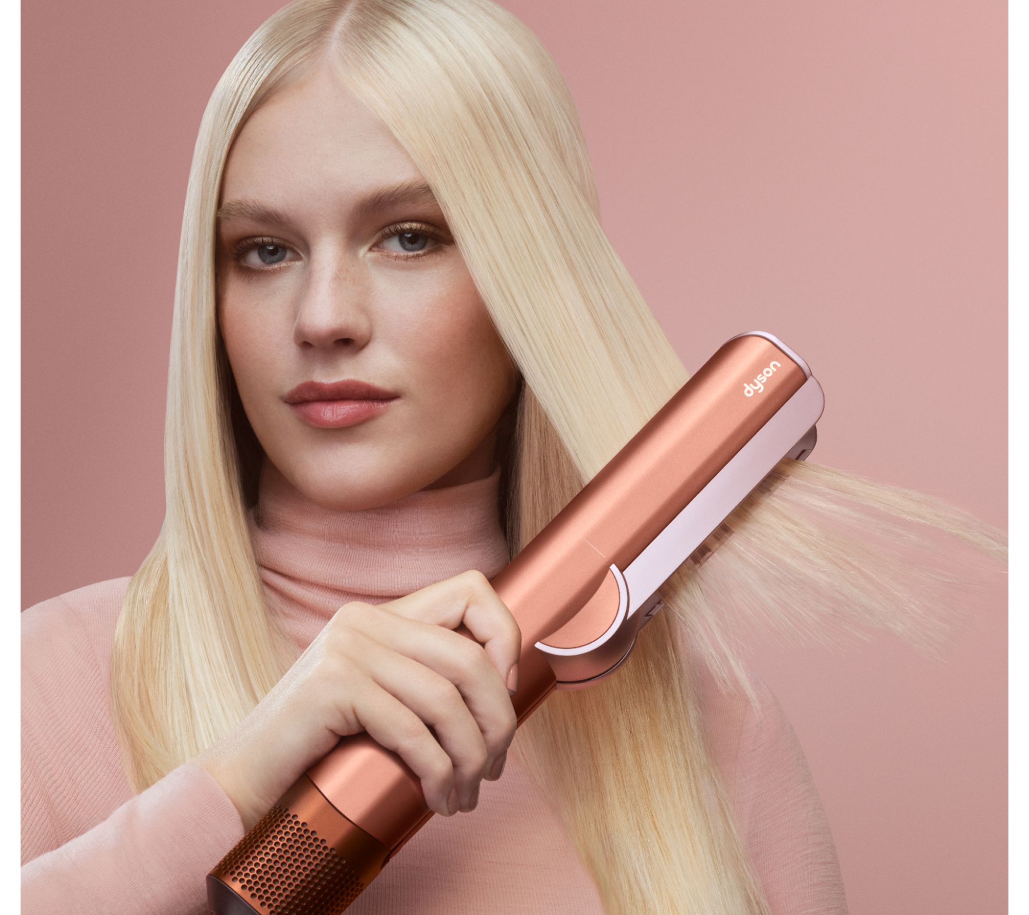 Simplify your routine with the special edition ceramic pink and rose gold Dyson Airstrait. Dyson technology uses high-pressure airflow to straighten hair as it dries. The Hyperdymium motor includes a 13-blade impeller that spins up to 106,000rpm, propelling 11.9 liters of air through the machine per second.