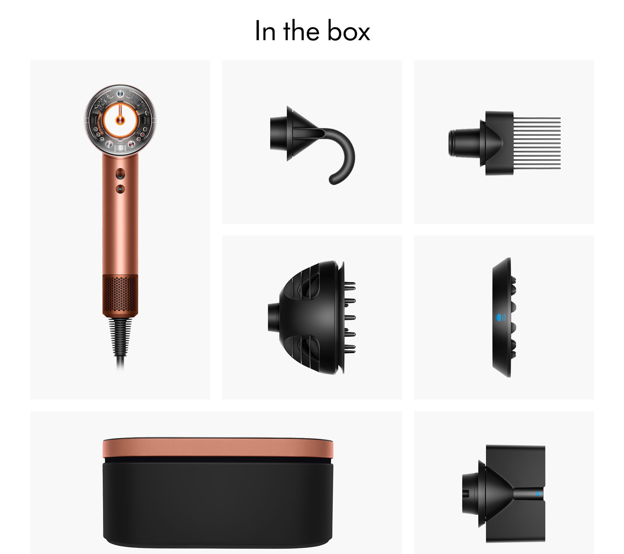 • Includes Supersonic Nural hair dryer, wave/curl diffuser, flyaway attachment, styling concentrator, wide tooth comb, gentle air attachment, and presentation case