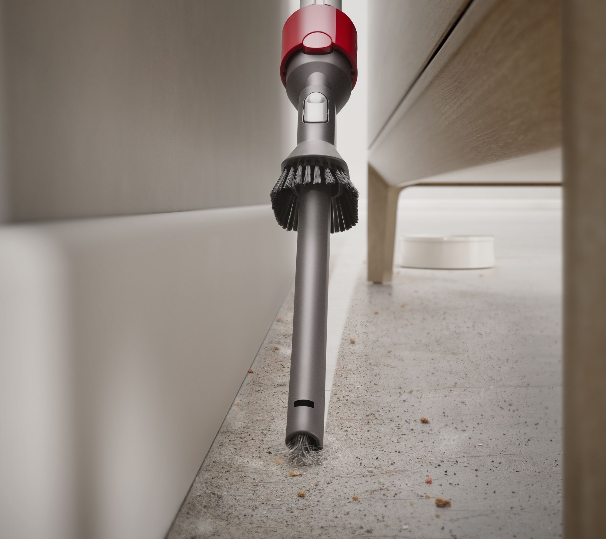 And here's the scoop -- it comes with an arsenal of accessories to hit those hard-to-reach places in your home. Two tools even target pet hair -- a grooming tool (get it at the source!), and a tangle-free turbine tool (great for upholstery). And thanks to detangling technology, wrapped hair is automatically cleared from the brush roll. You can count on this extra-ordinary cleaning machine for continuous power, superior suction, and of course, all its extras. From Dyson.