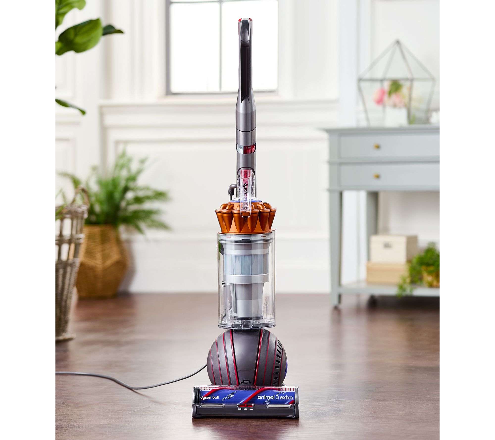 Extra, extra, read all about it: The Dyson Ball Animal 3 EXTRA Upright Vacuum is loaded with... all the extras! This easy-to-maneuver vac uses three cleaning modes and advanced whole-machine filtration that traps 99.97% of particles, dust, and allergens as small as 0.3 microns.