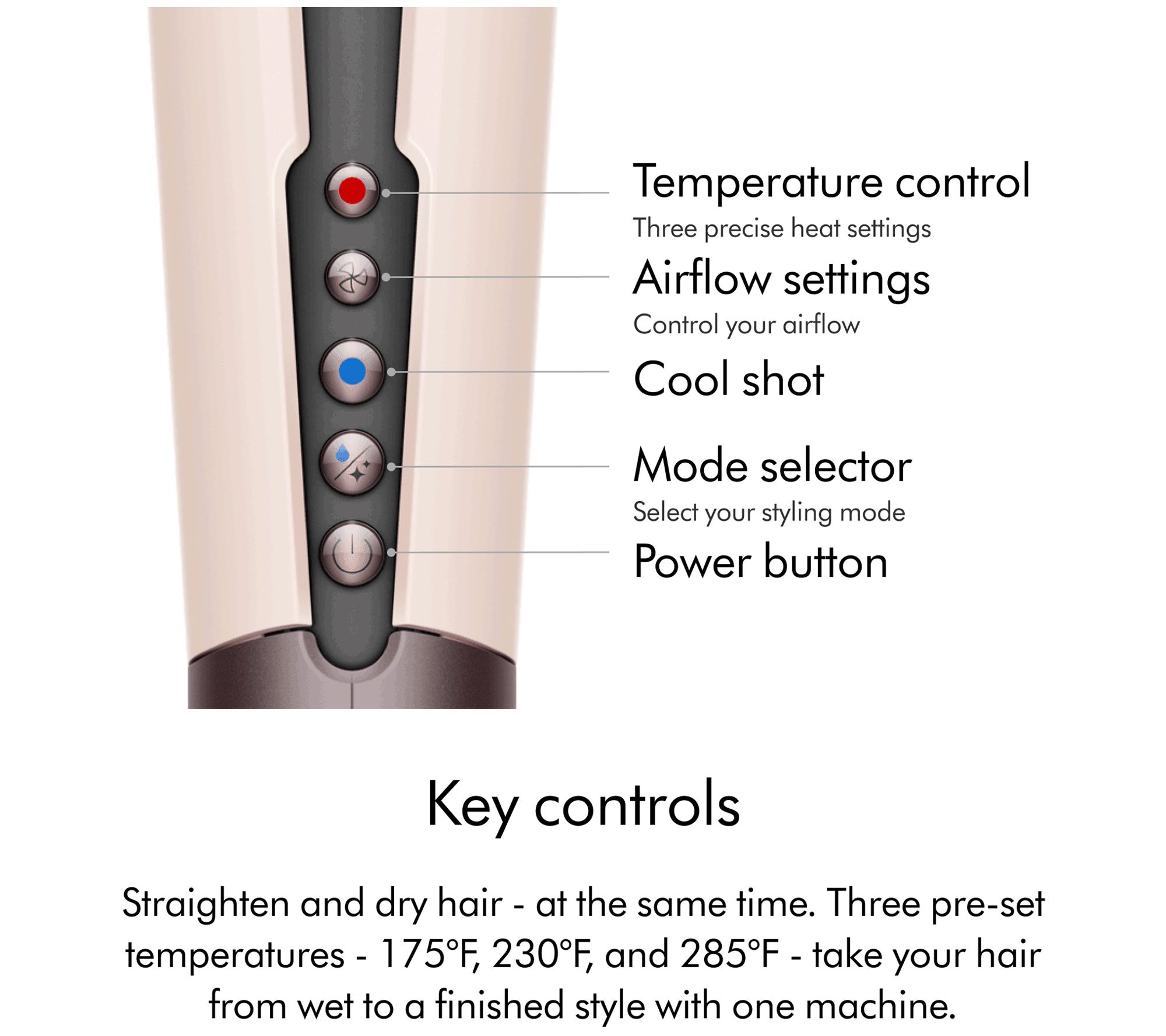 • Two styling modes: wet to dry, dry