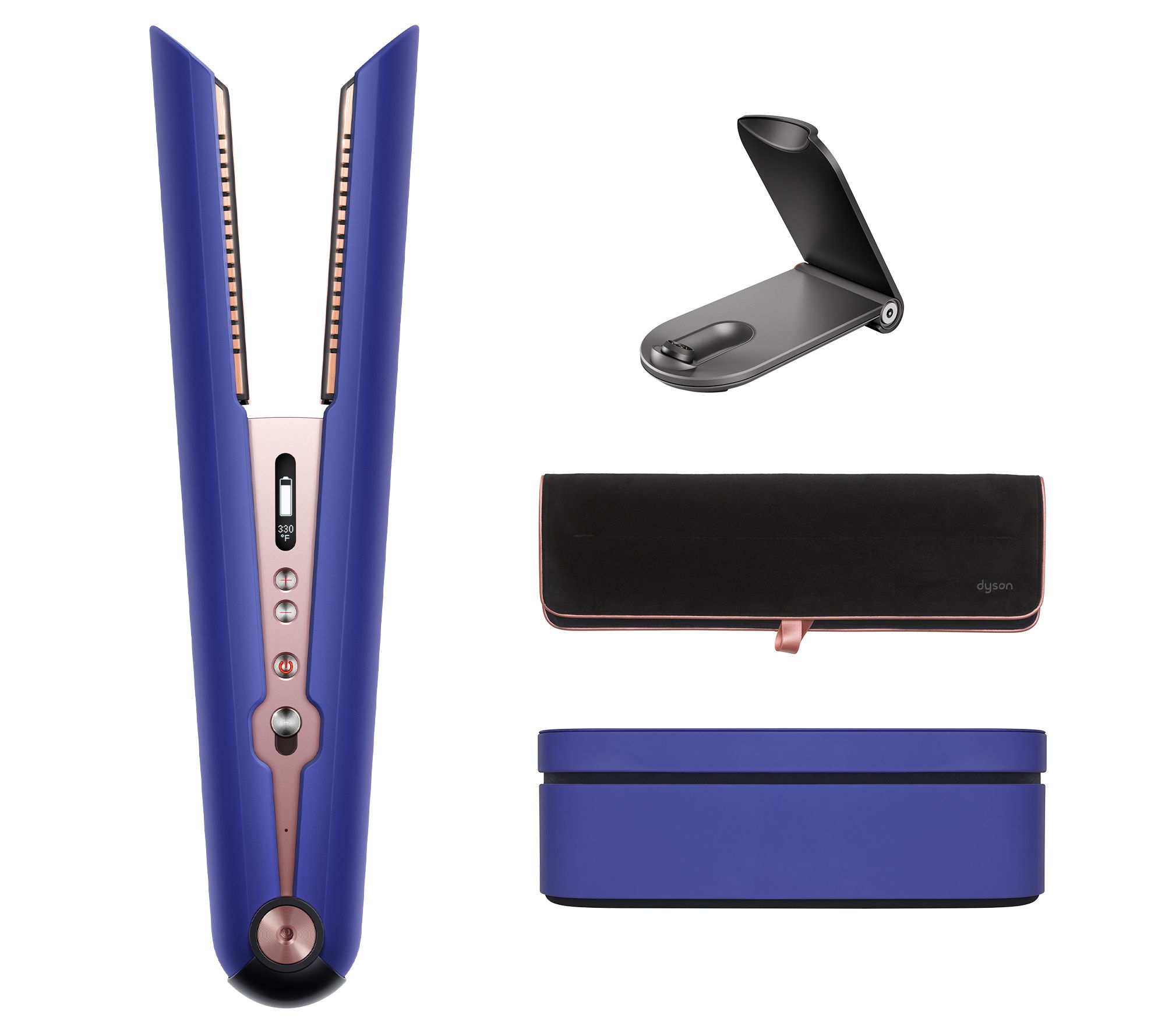 Includes Corrale straightener with lithium-ion battery, charging dock, heat-resistant pouch, and storage case