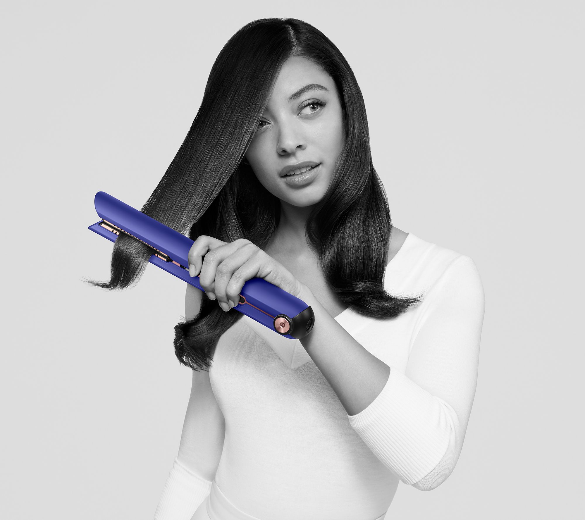 Made with flexing copper plates that shape around your hair, the Dyson CorraleTM Straightener gathers your hair neatly together on each pass. This extra control means you can achieve the same style but with less heat. You'll enjoy shiny, straight results with fewer frizz and flyaways.