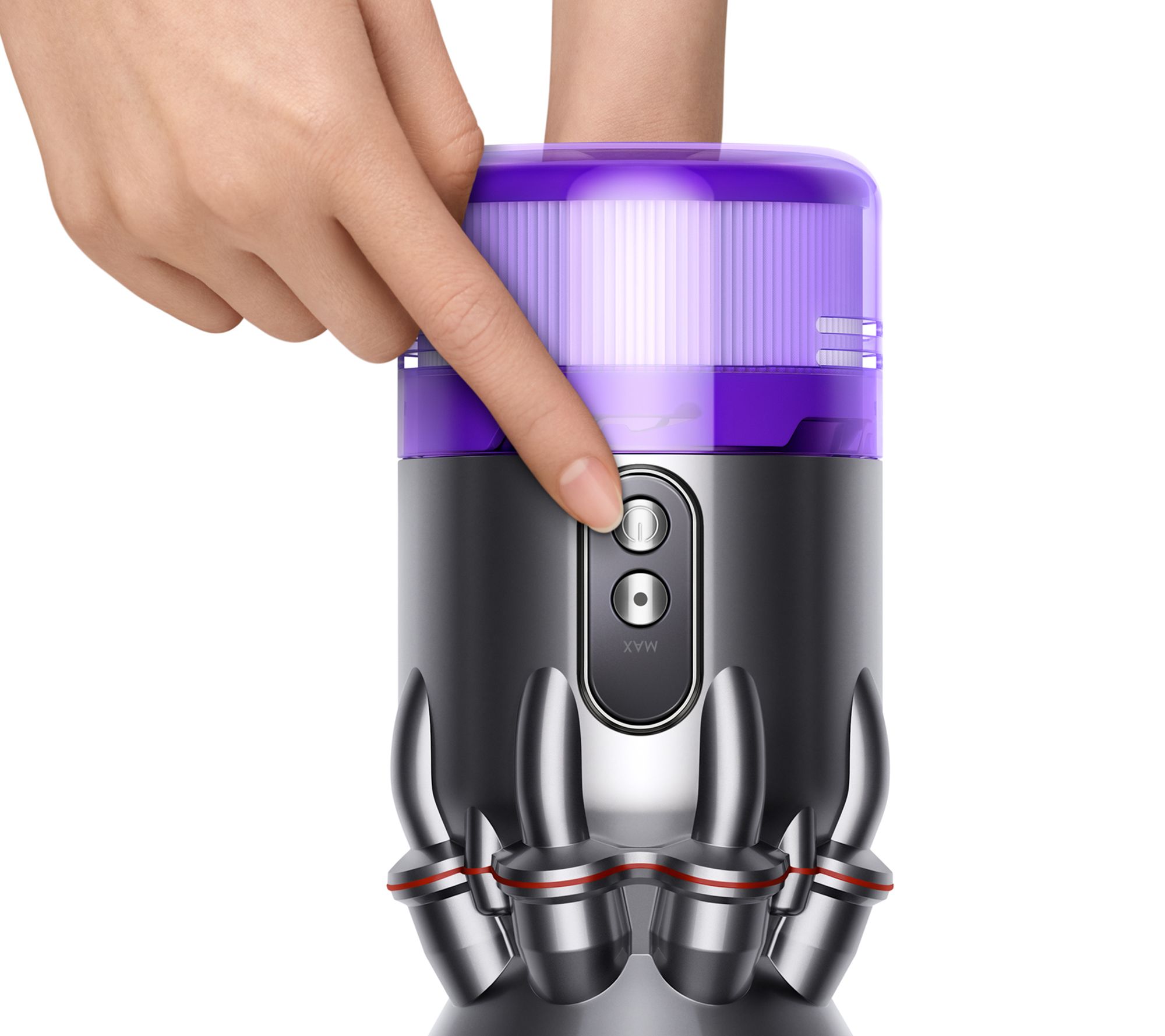 Two-button control: press the Power button once for comfortable, continuous cleaning; MAX button for intensive spot cleaning