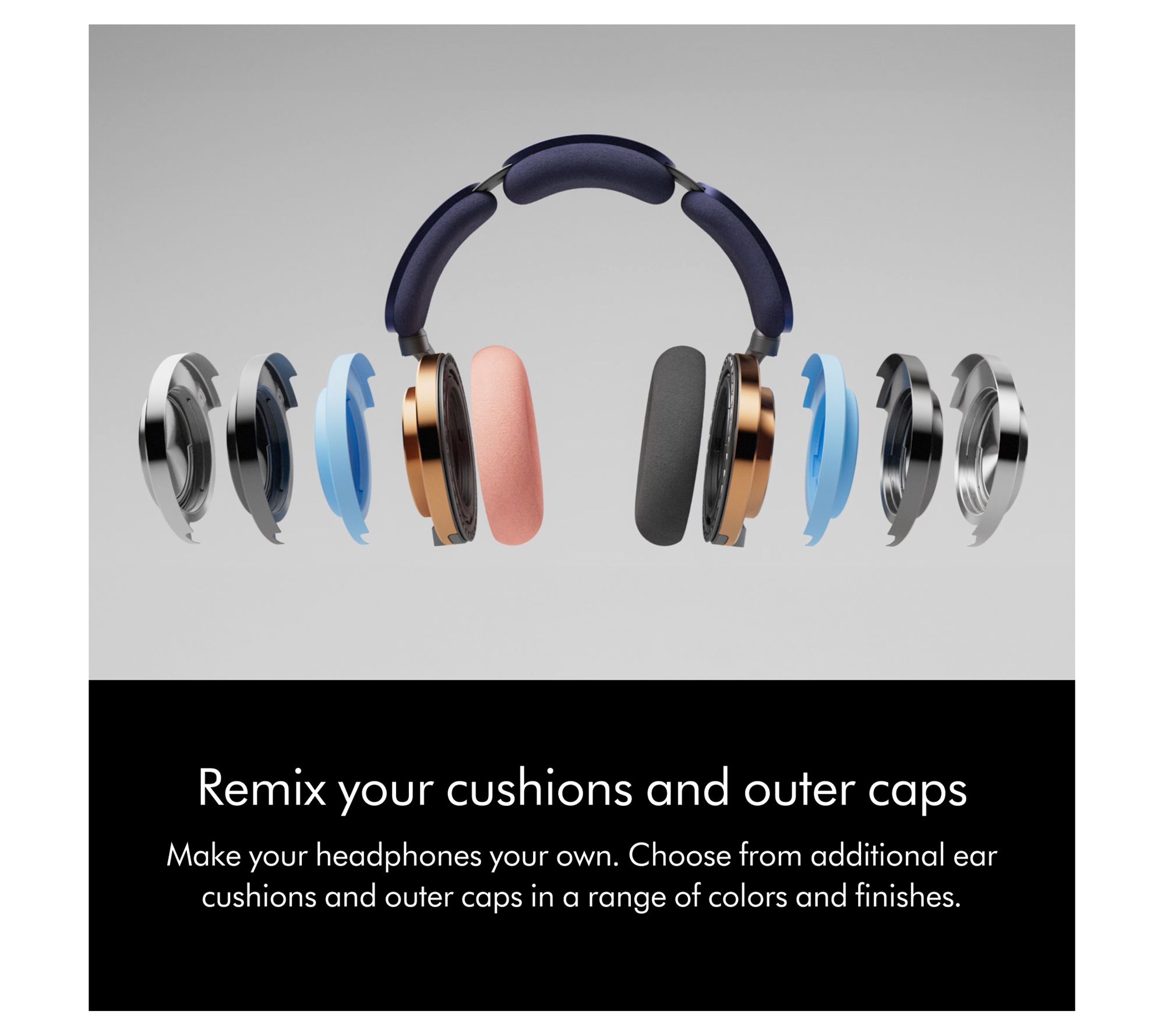 Includes headphones, additional ear cushions, and caps