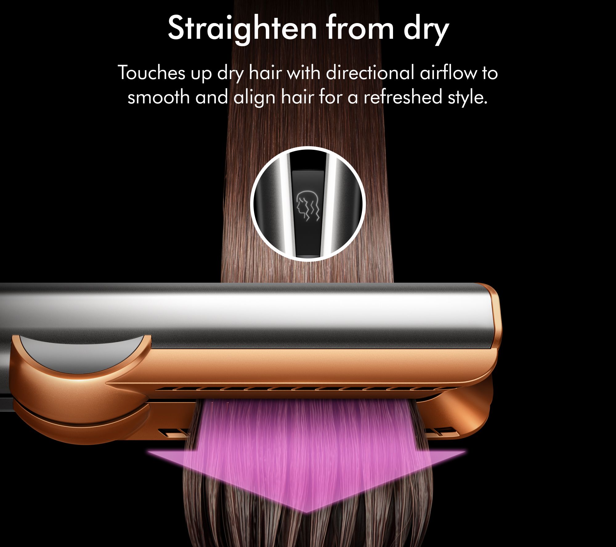 If straightening from dry, select dry mode to touch up and refresh your style. Select desired temperature and airflow. Set style with cool air.