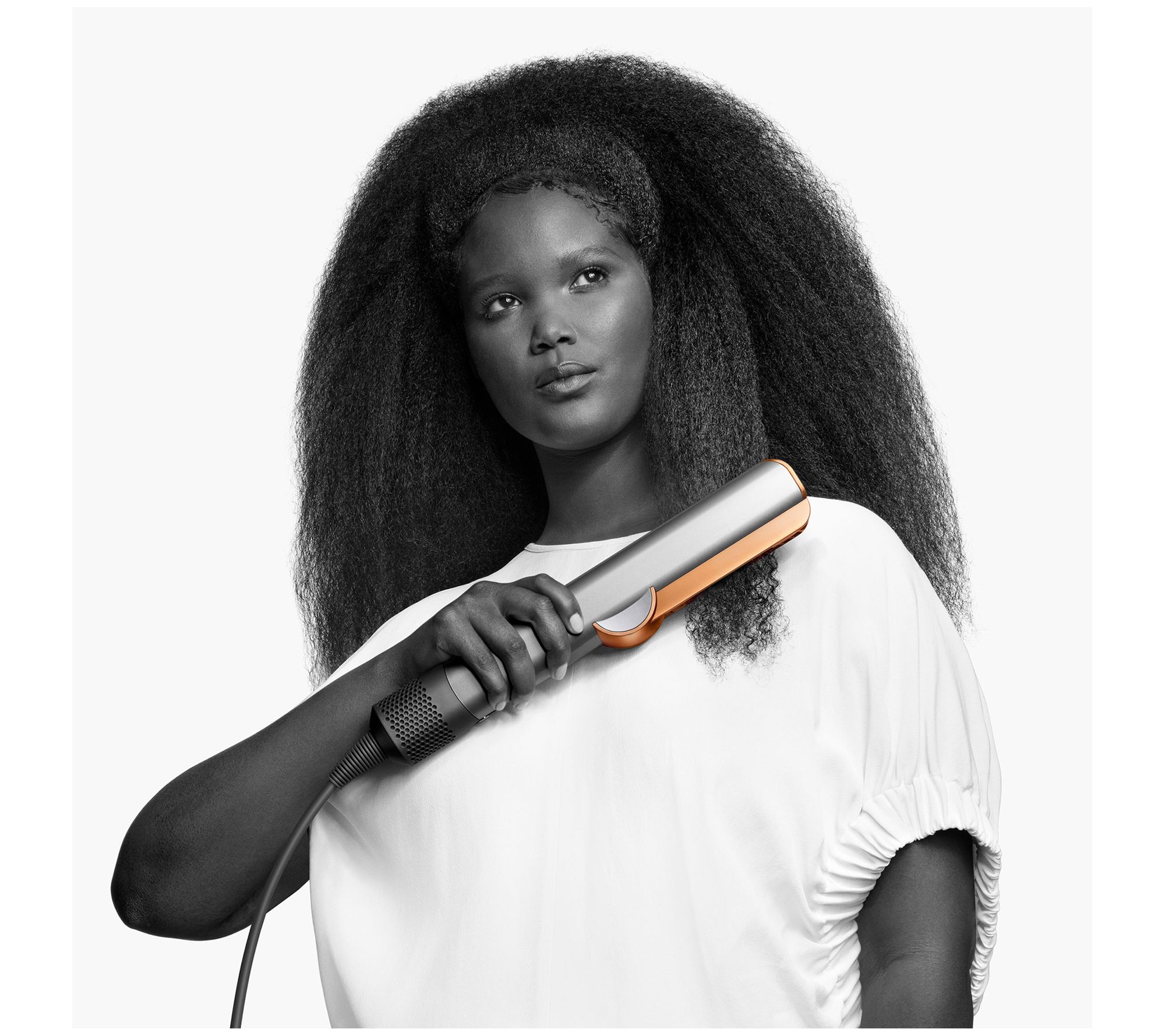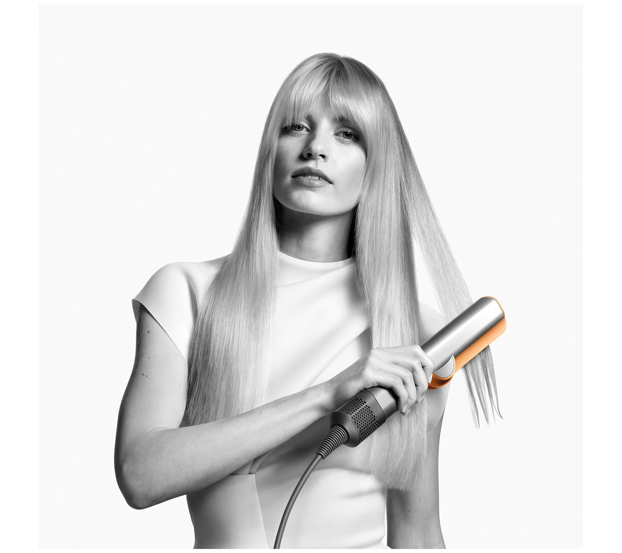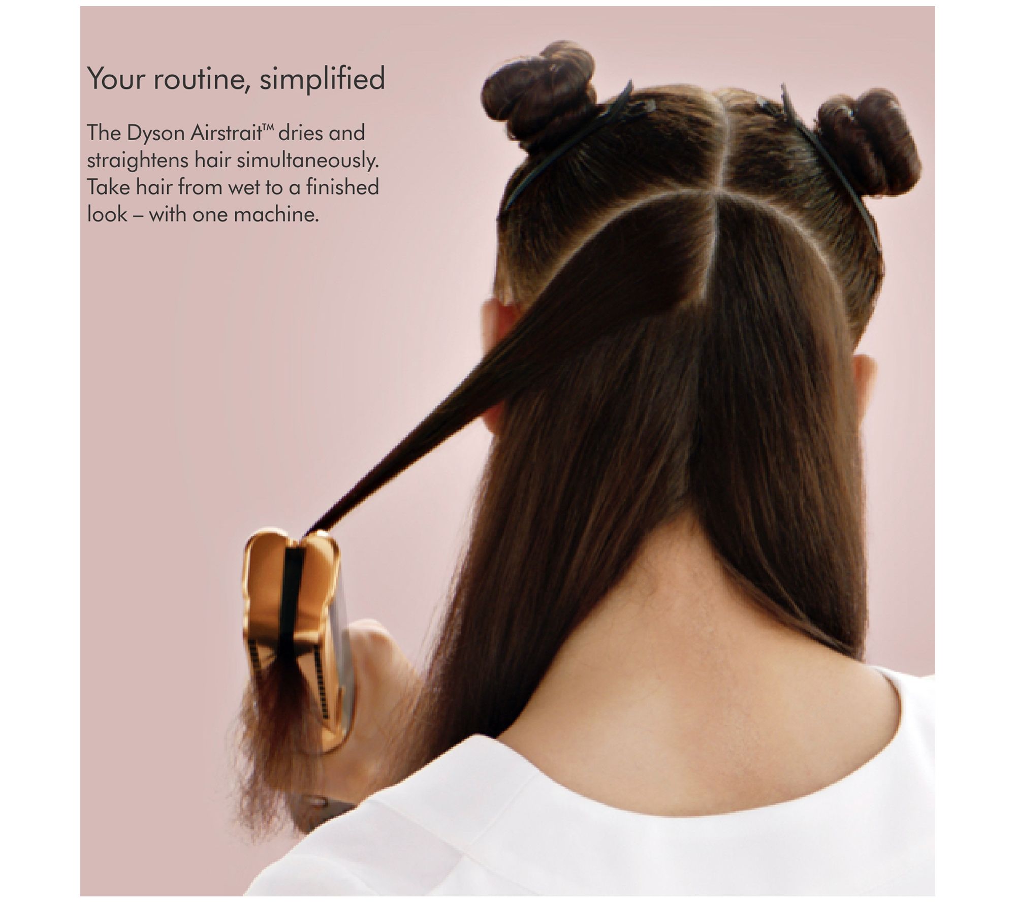 Simplify your routine with this special-edition Dyson Airstrait. Dyson technology uses high-pressure airflow to straighten hair as it dries. The Hyperdymium motor includes a 13-blade impeller that spins up to 106,000rpm, propelling 11.9 liters of air through the machine per second. Style from wet, straightening and drying hair at the same time, or refresh from dry, touching up your style.