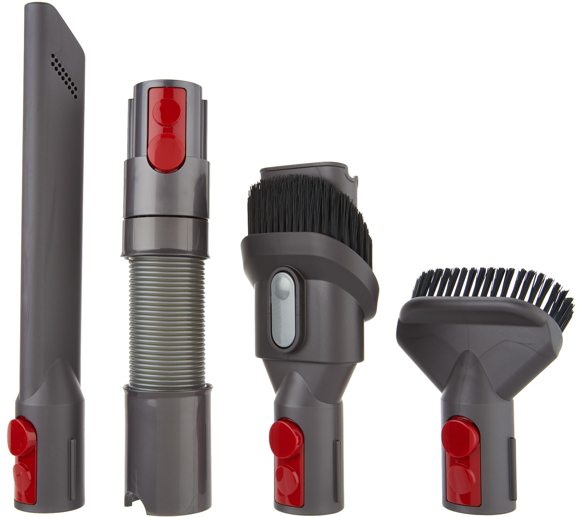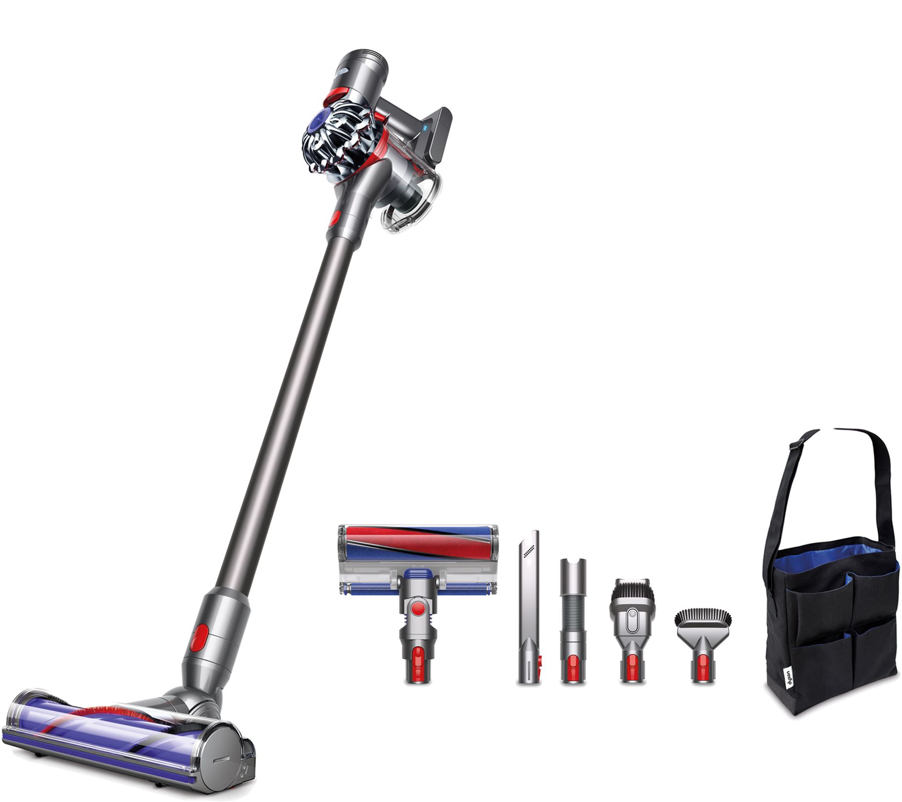 Includes V7 Absolute Pro vacuum, docking station, crevice tool, combination tool, stubborn dirt brush, extension hose, soft roller cleaner head, and tool bag