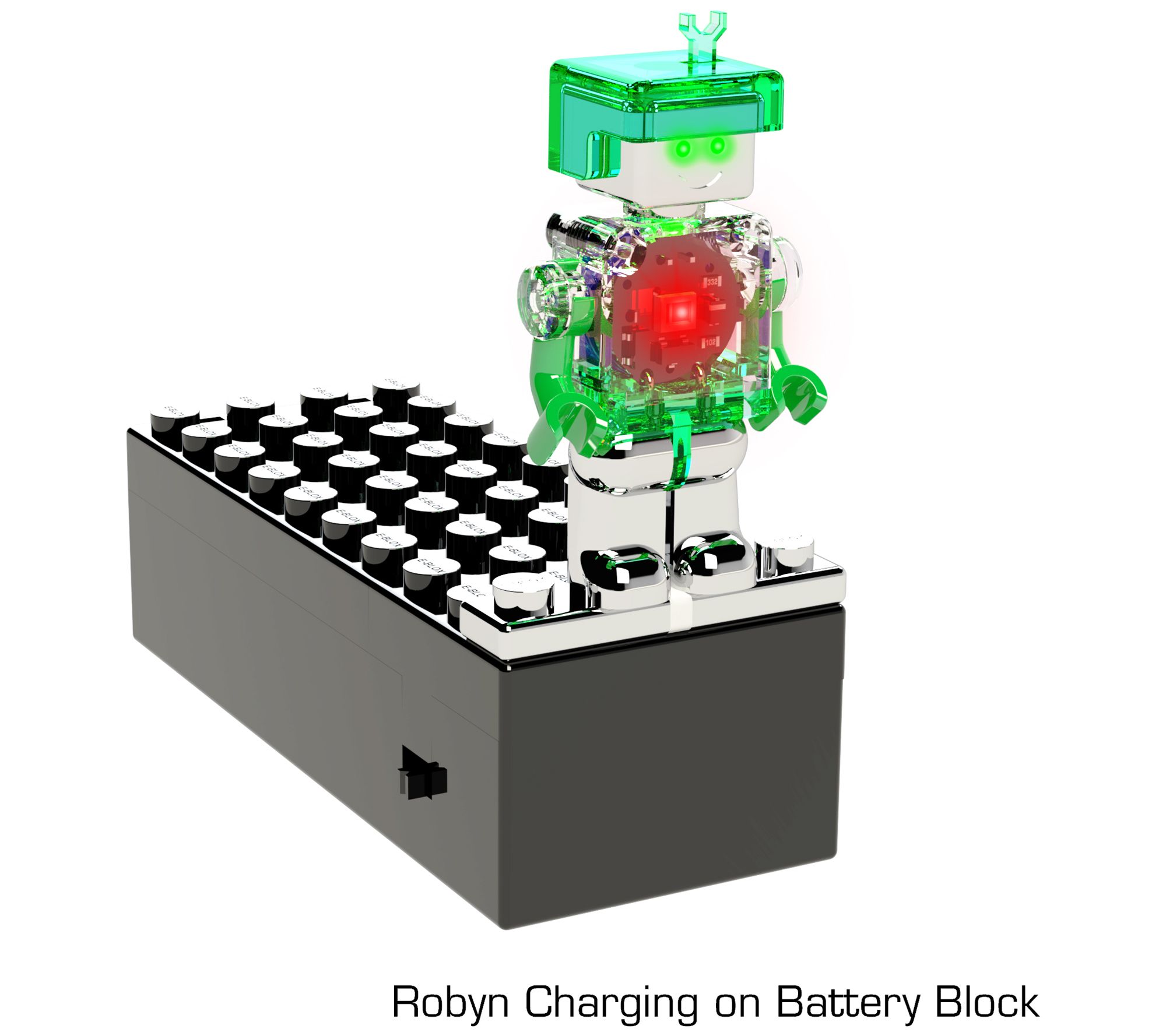 • Includes Robyn power figure, 1x4 conductive charging brick, and battery pack