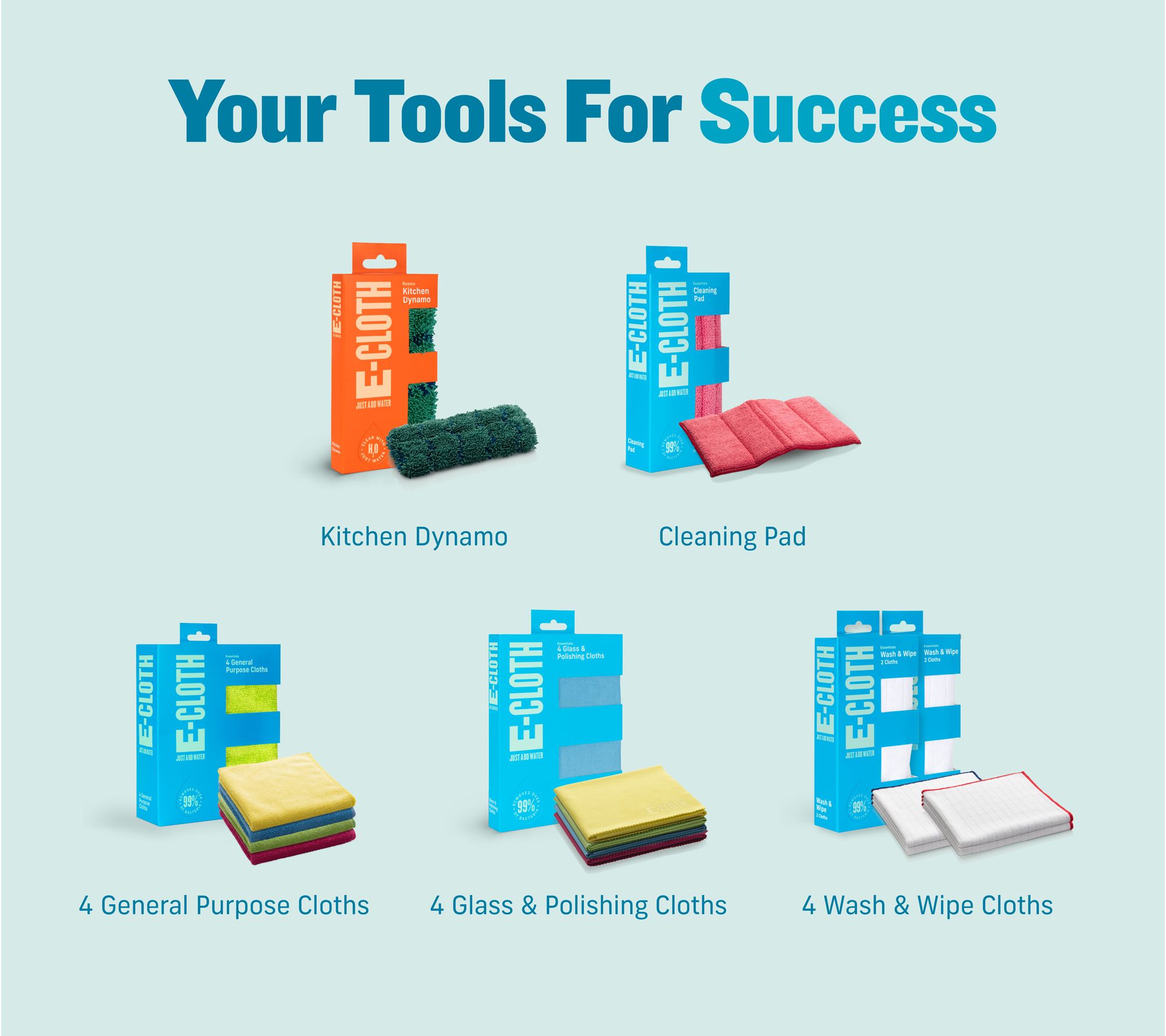 • Includes four General Purpose Cloths, four Glass & Polishing Cloths, four Wash & Wipe Cloths, Cleaning Pad, and Kitchen Dynamo