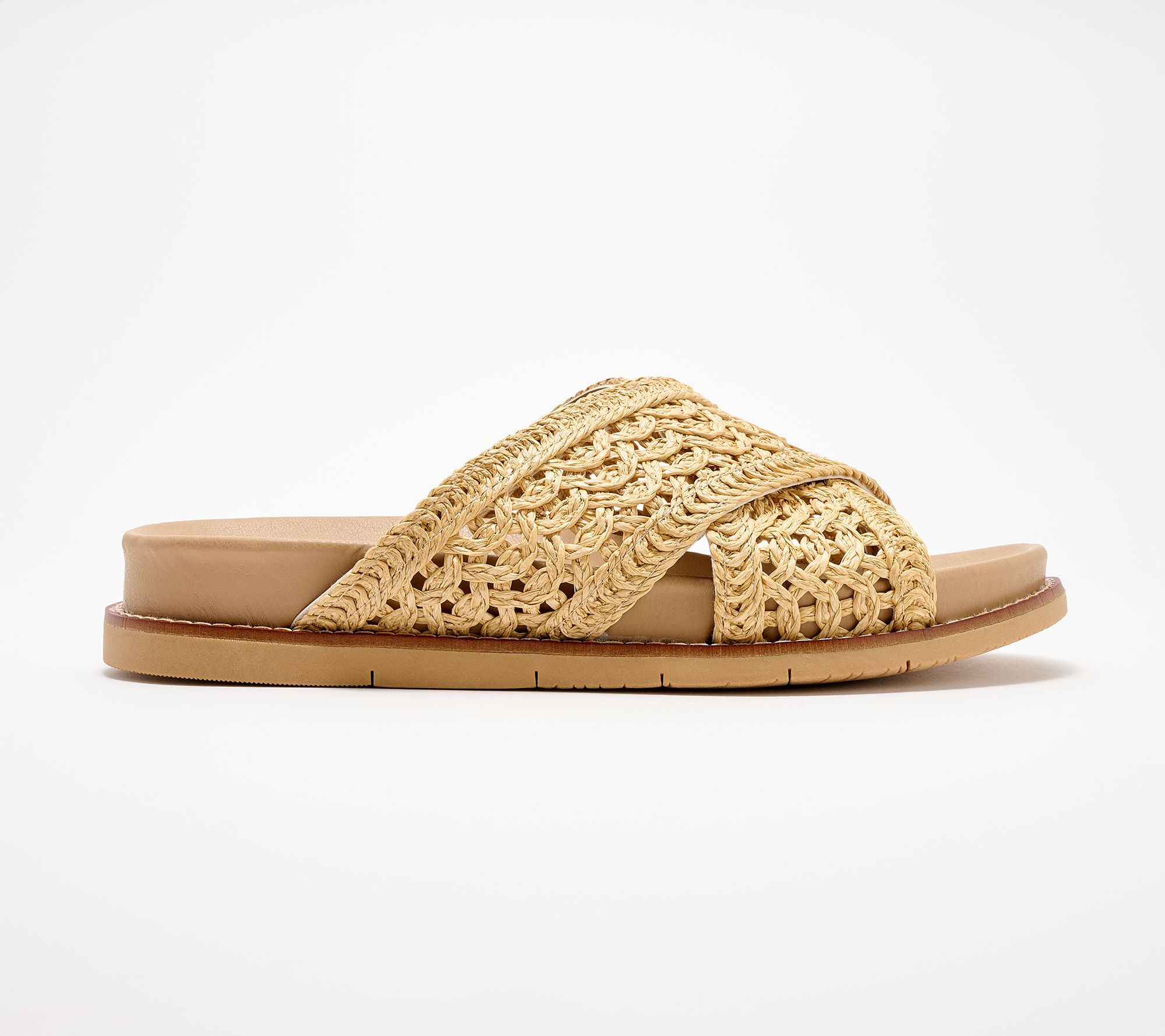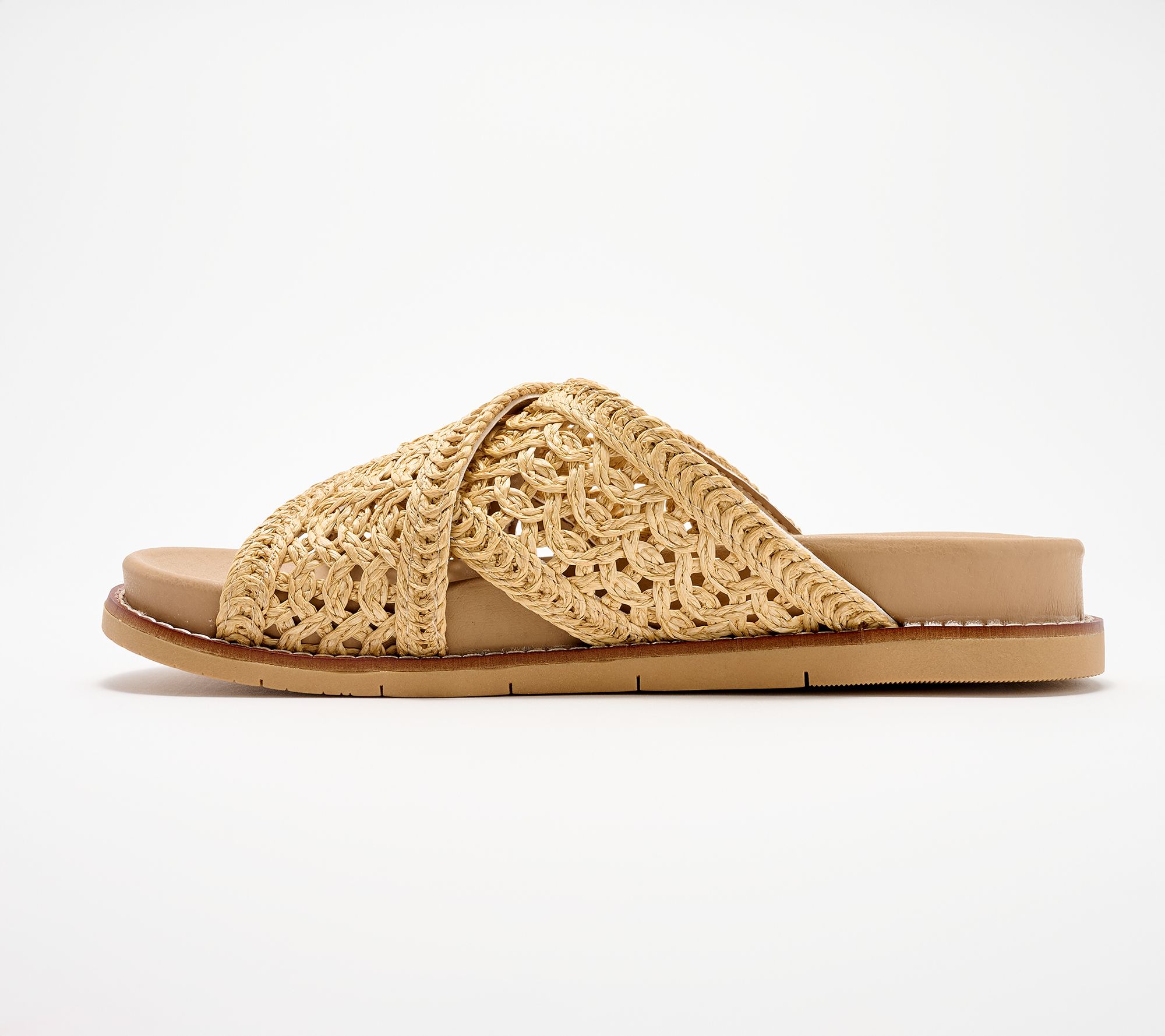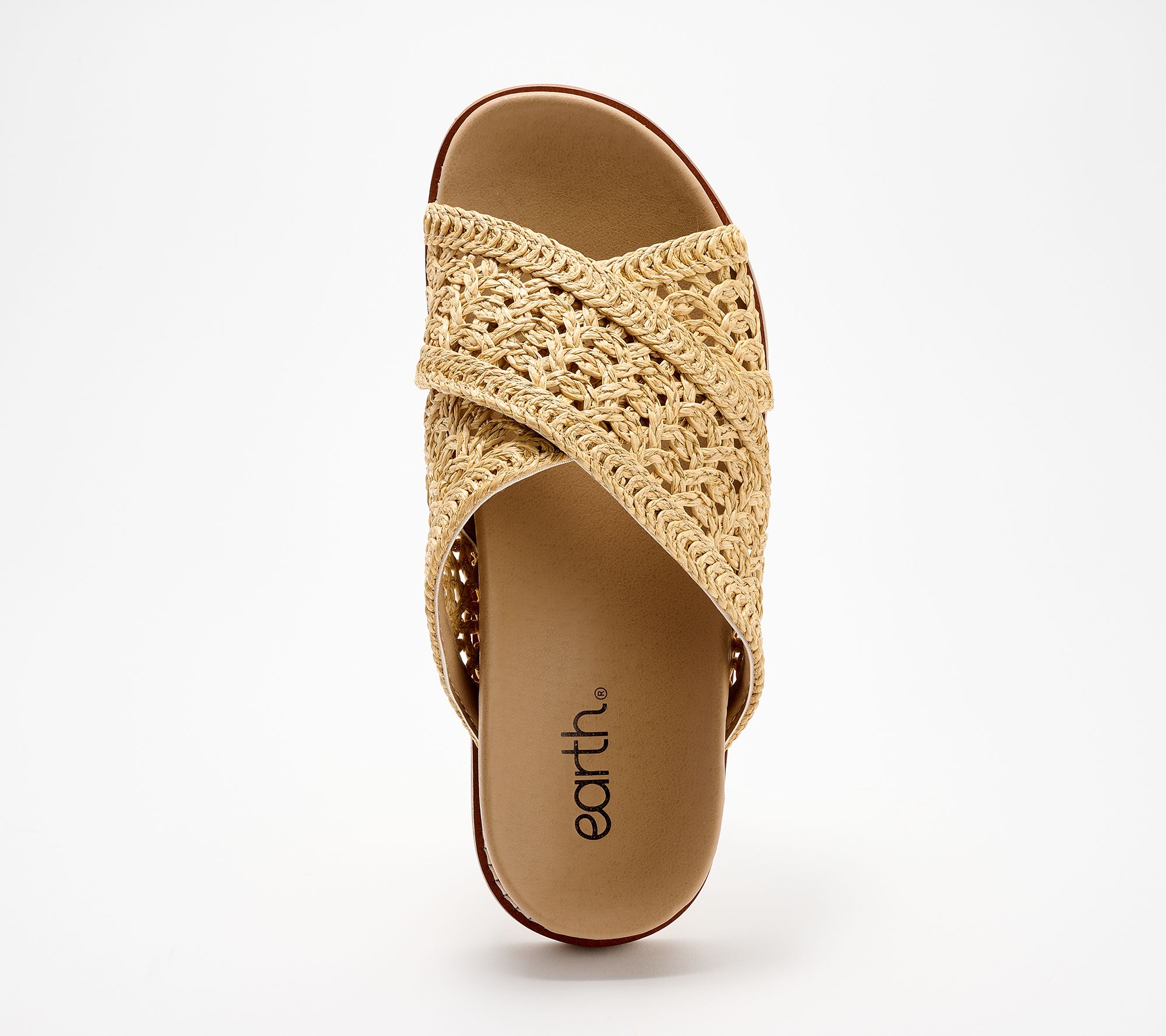 When the sun's shining, these crochet crossband slides are your go-to for breezy days around town or chic weekend getaways. Change of itinerary? The well cushioned insole and rubberized sole welcome it. (Translation: stay out as long as you like!) From Earth Brands Footwear.