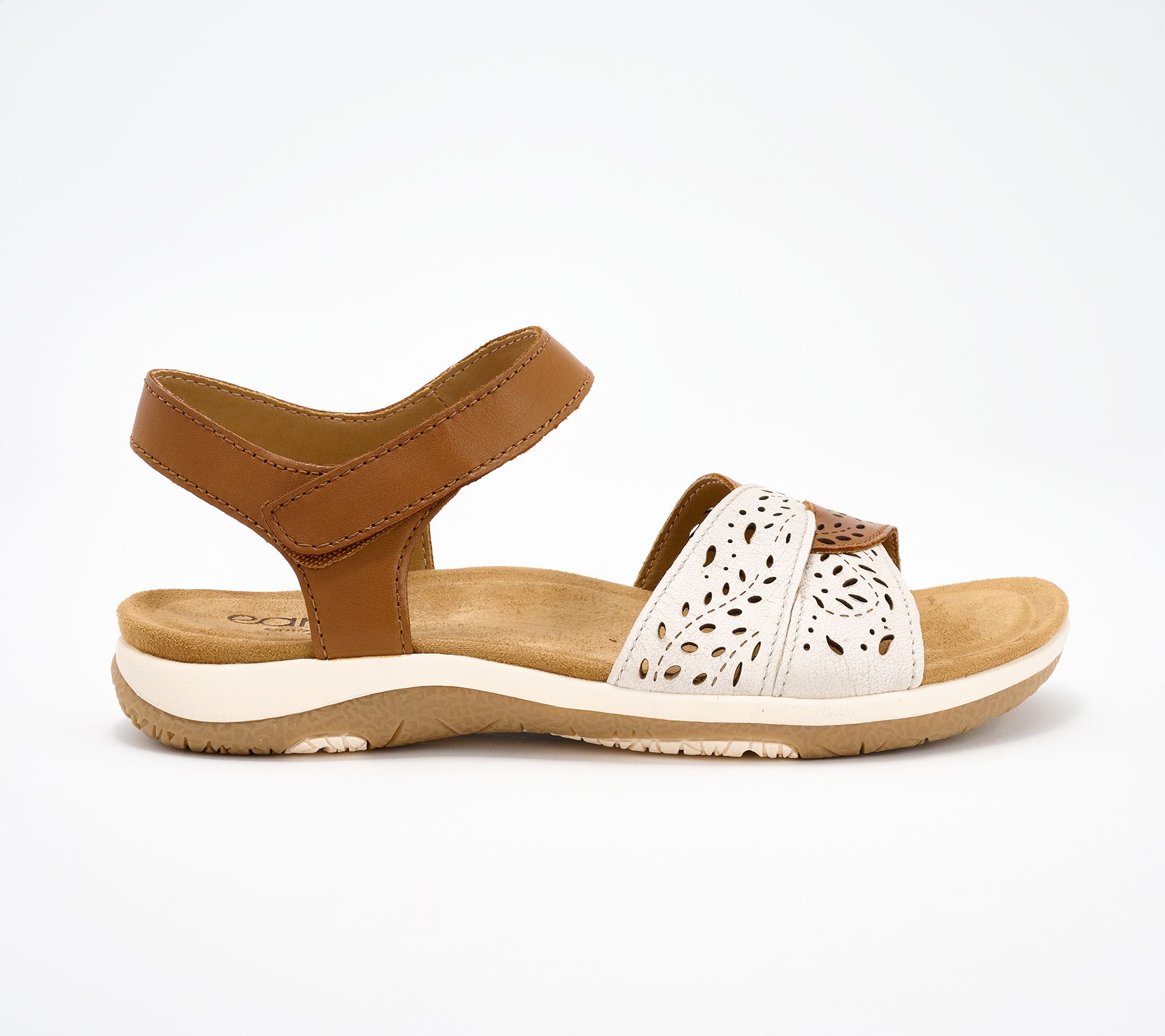 Unwind on your next city stroll or weekend outing in sandals designed for fuss-free wear and lasting comfort. A soft leather upper twists gracefully across the foot, offering style and breathability, while the cushioned insole and arch support help you handle busy days with ease. An adjustable strap and sturdy tread make these a go-to for travel or everyday plans. From earth® Brands Footwear.