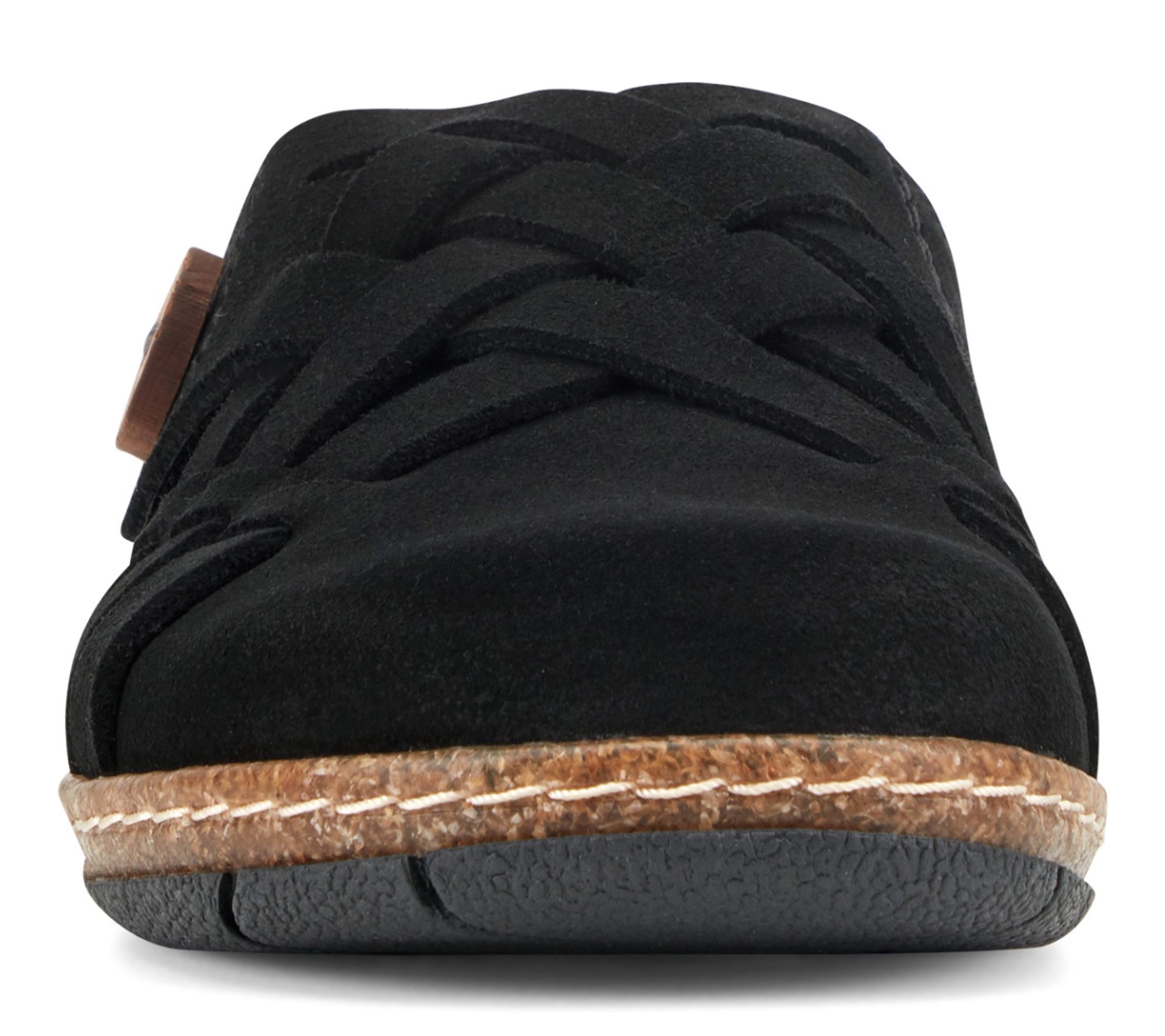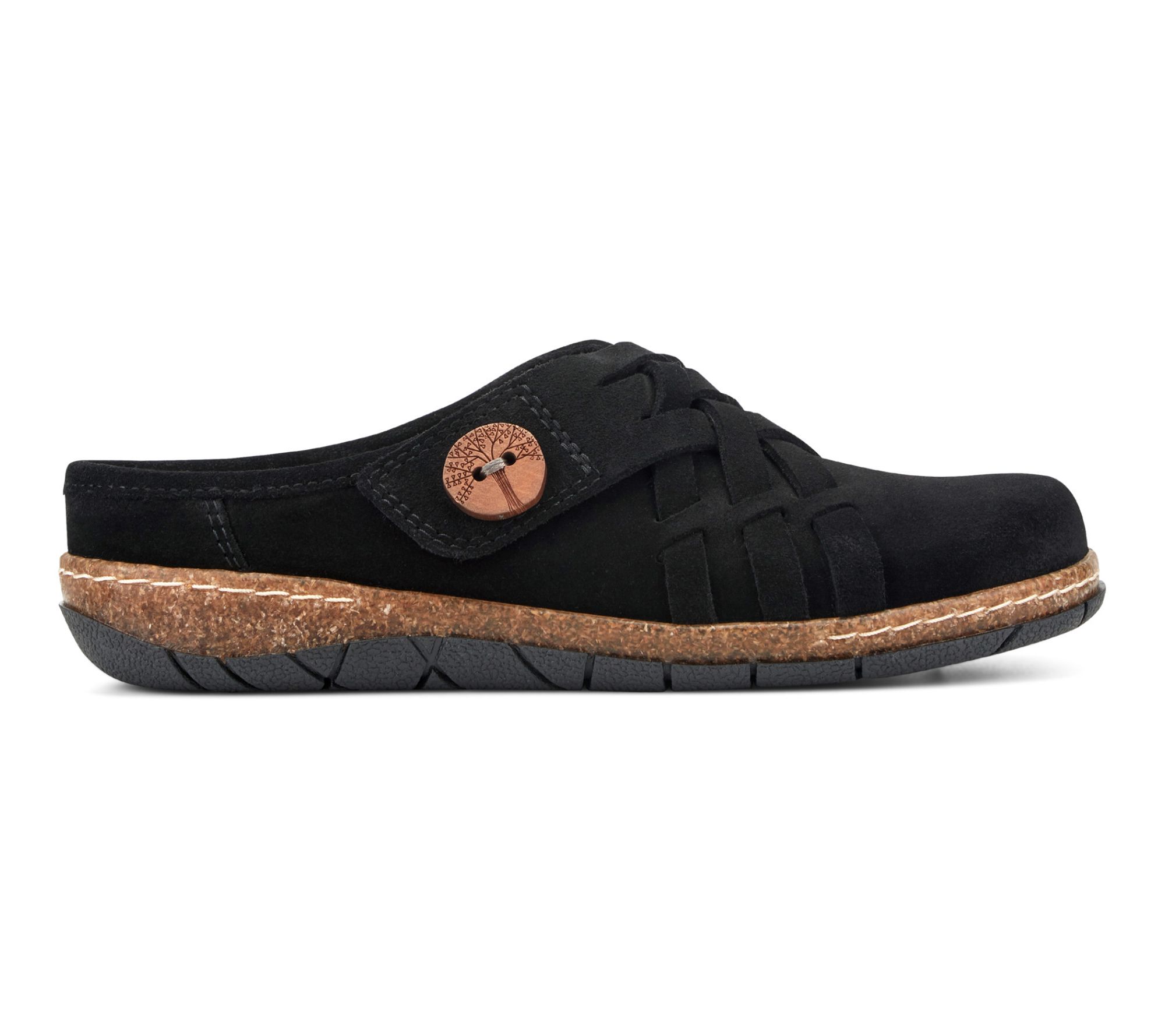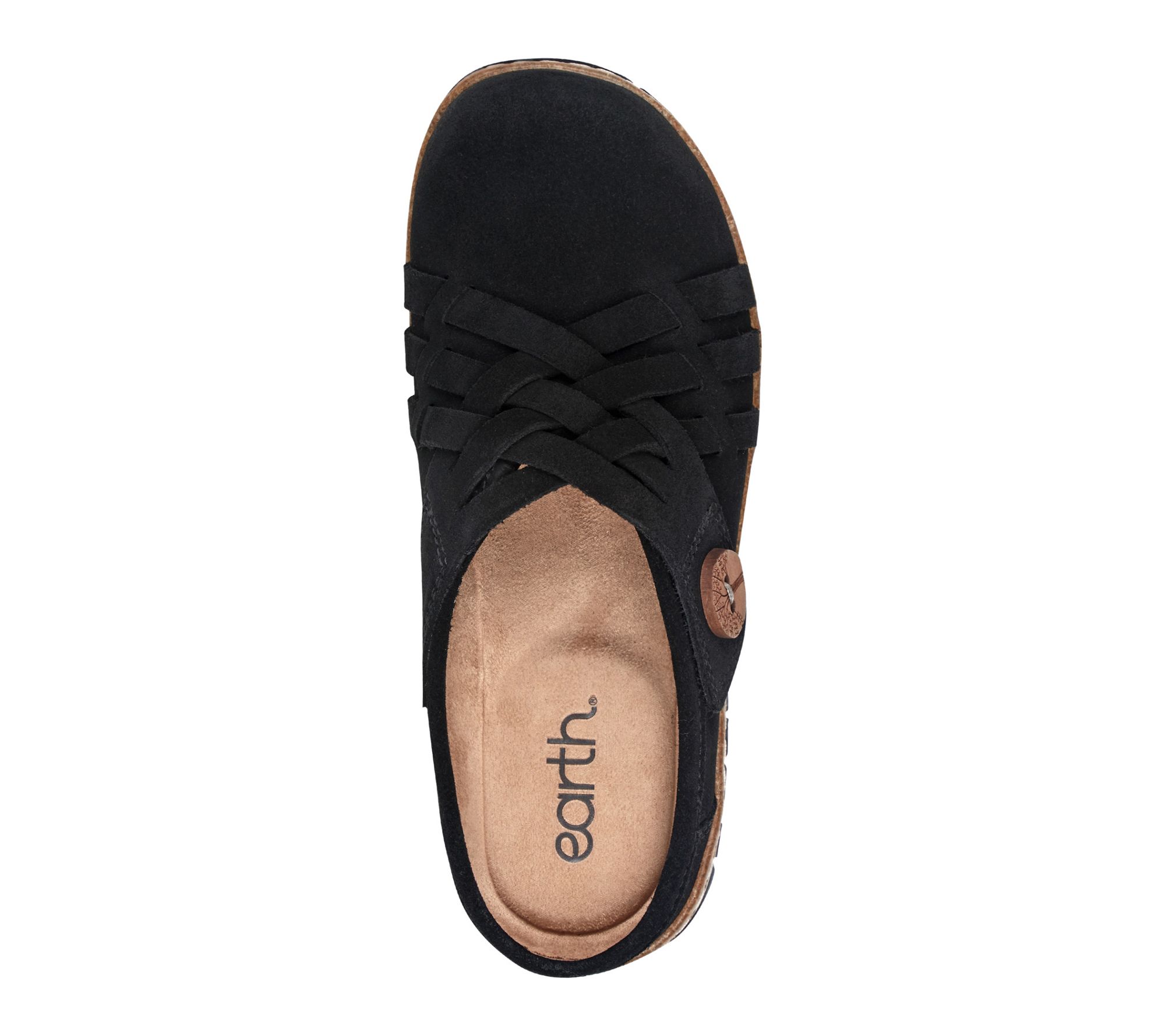 Clogs don't have to be clunky. Take the Emis, for example. It still has the effortless slip-on styling you love and the arch support and cushioning you need. But the classic clog silhouette is considerably less cumbersome and elevated with a leather woven design and distinctive details like an artisanal wooden button to pull it all together. It exudes carefree comfort in every step! From earth® Brands Footwear.