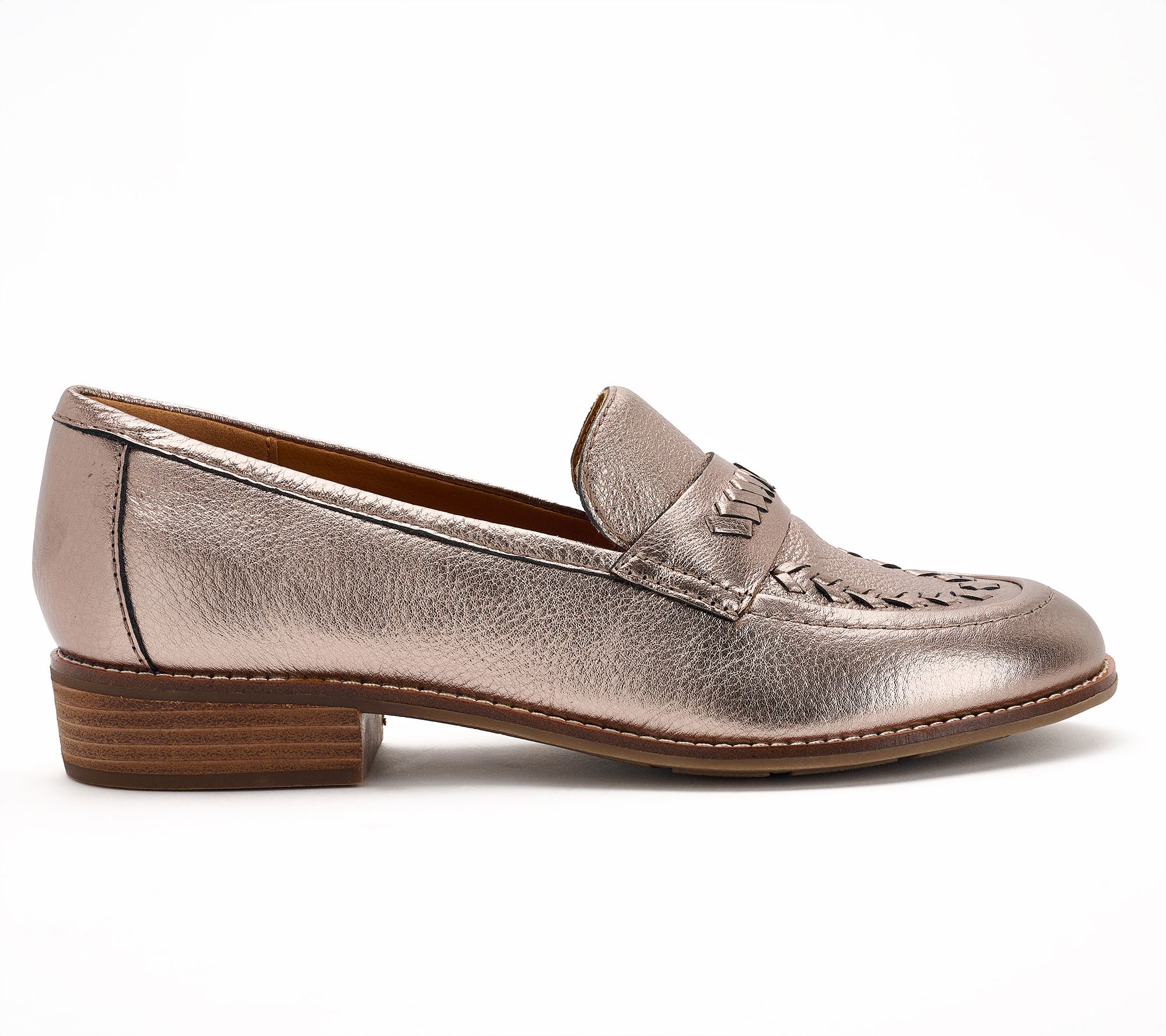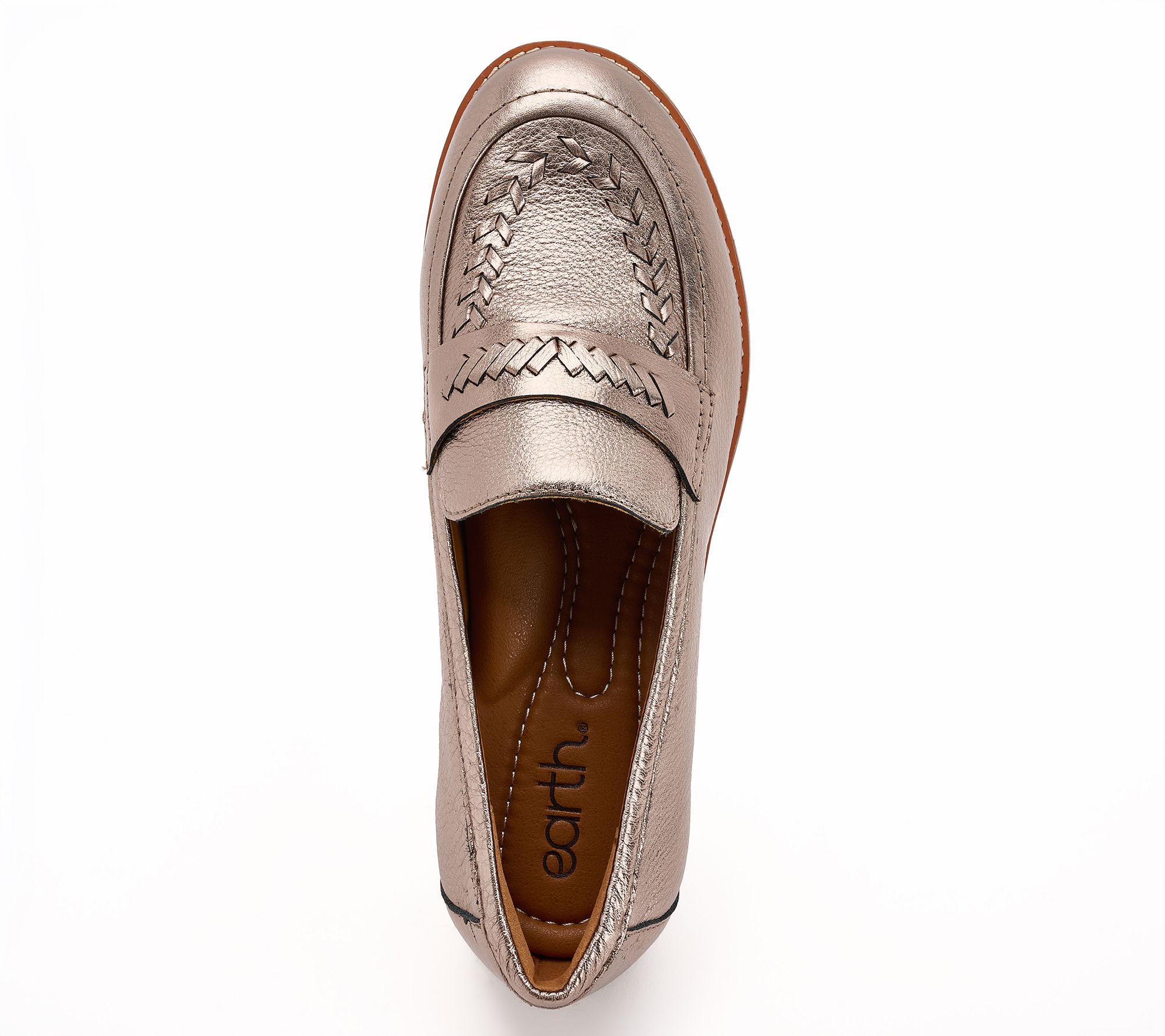 Whipstitch details and a sleek slip-on design give these leather loafers their classic look. The cushioned insole features arch support for comfortable all-day wear. From earth® Brands Footwear.