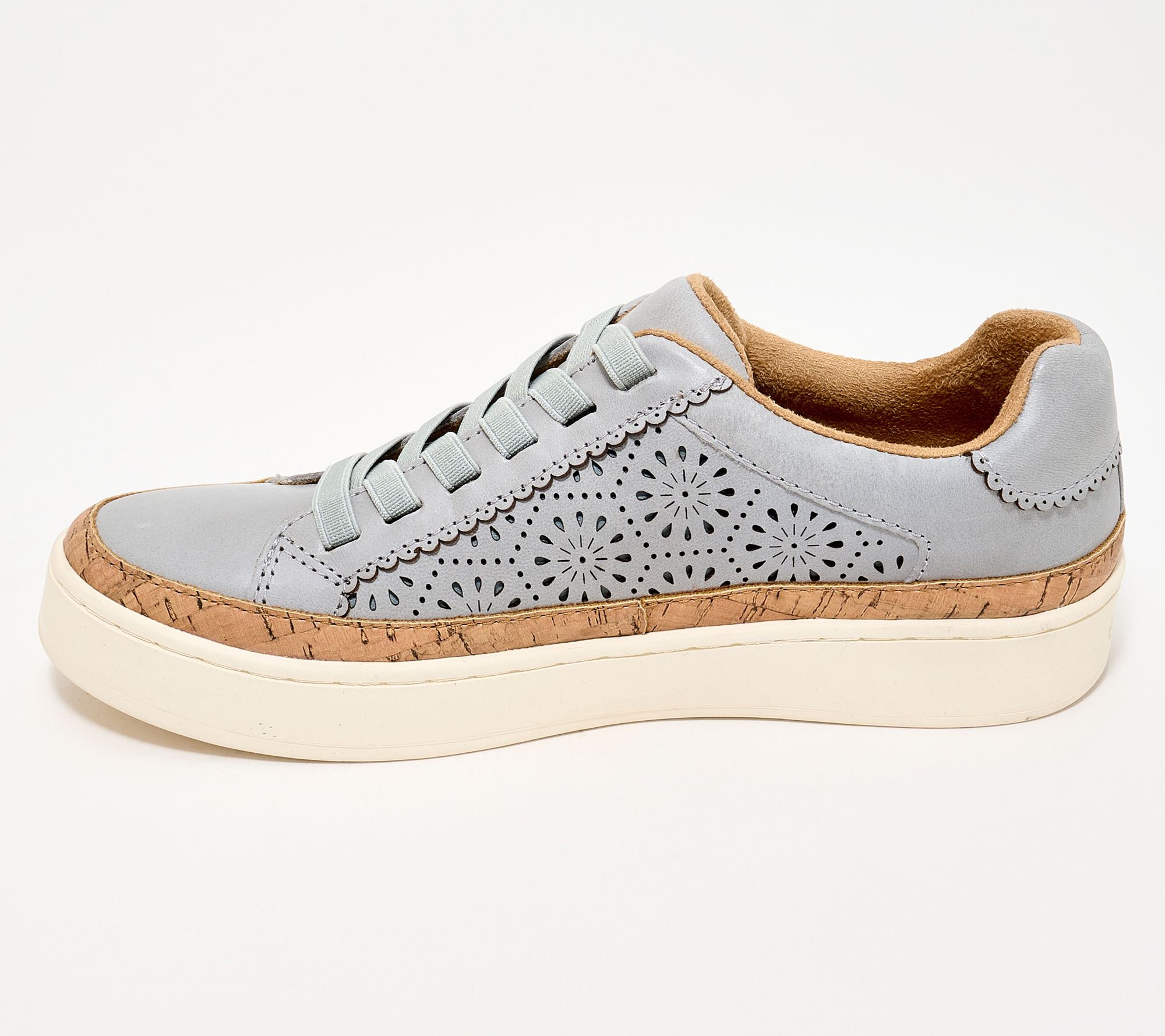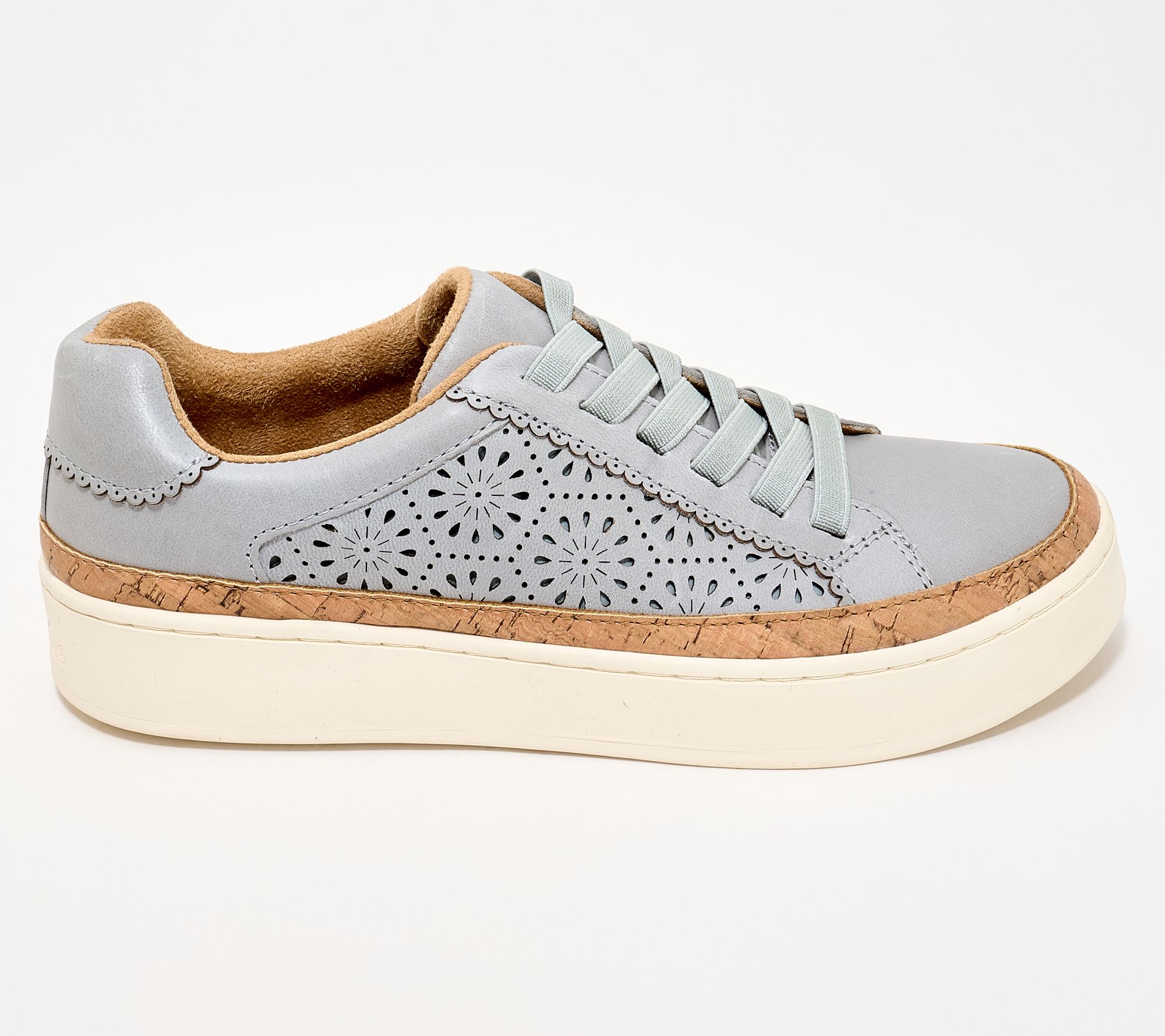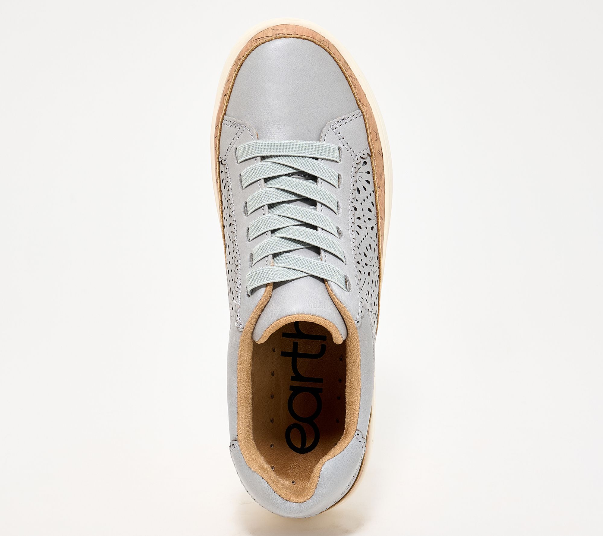 Earth Leather Sneakers with Stretch Laces-Kristal. 100% leather upper with a__ perforated design on both sides. Elastic laces make this an easy, pull-on style sneaker. Extra padding at the back of the ankle& collar. Features our air-flow technology in our cushioned footbed.__ Removable insole. Heel Height: 1.25" Sole Thickness:1"._ Fit:True to Size. Material:100% leather upper, balance man-made. COO: Imported.