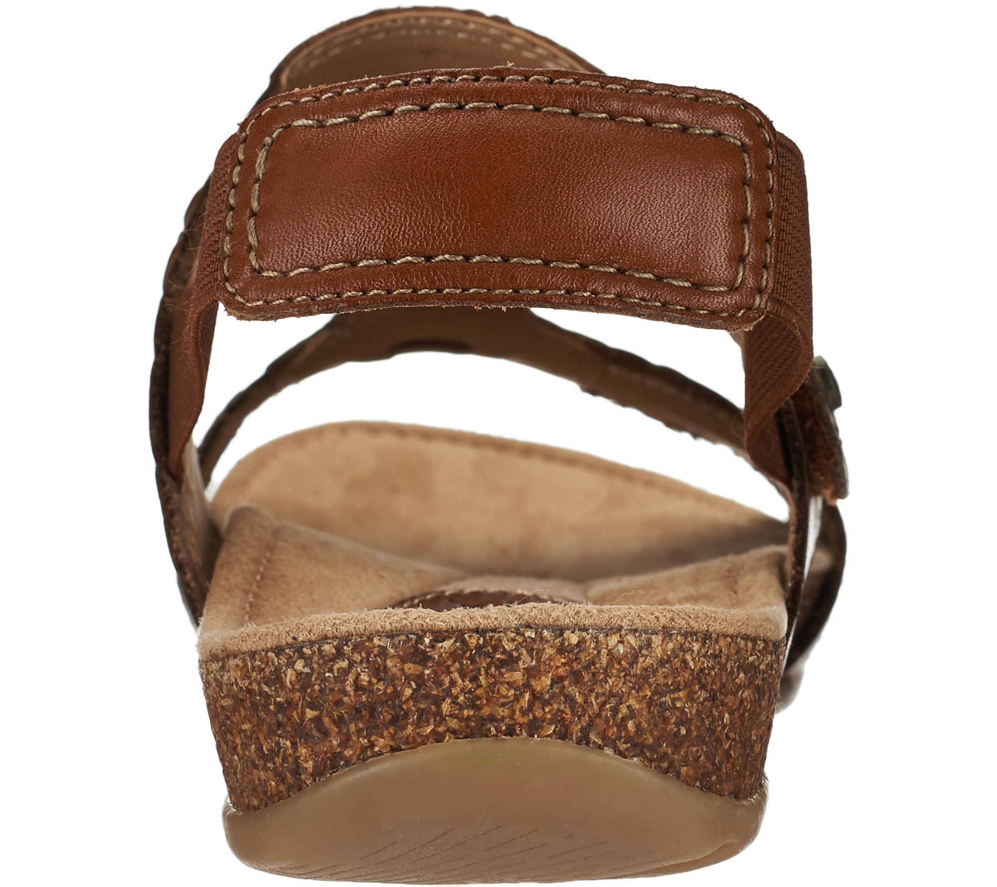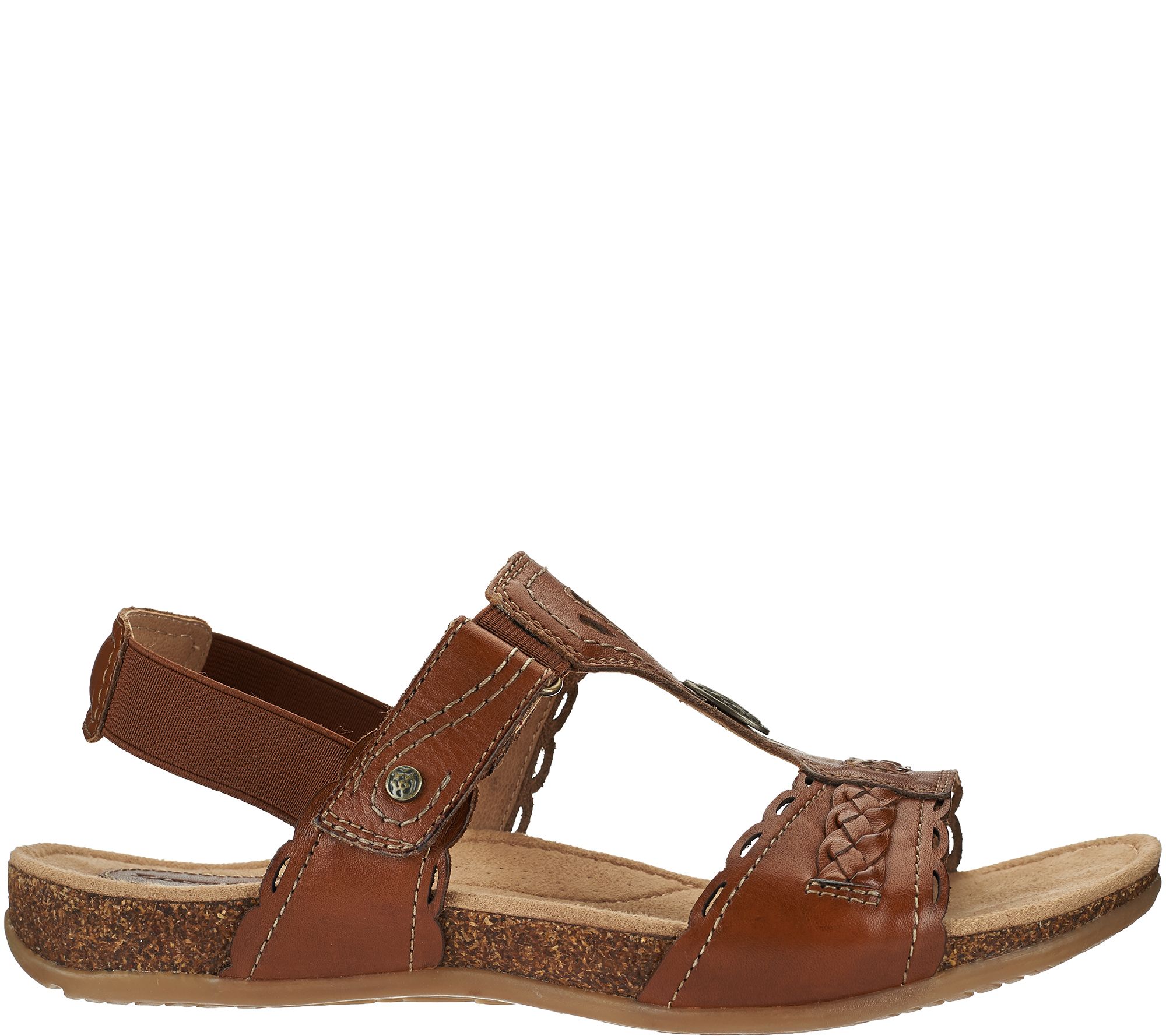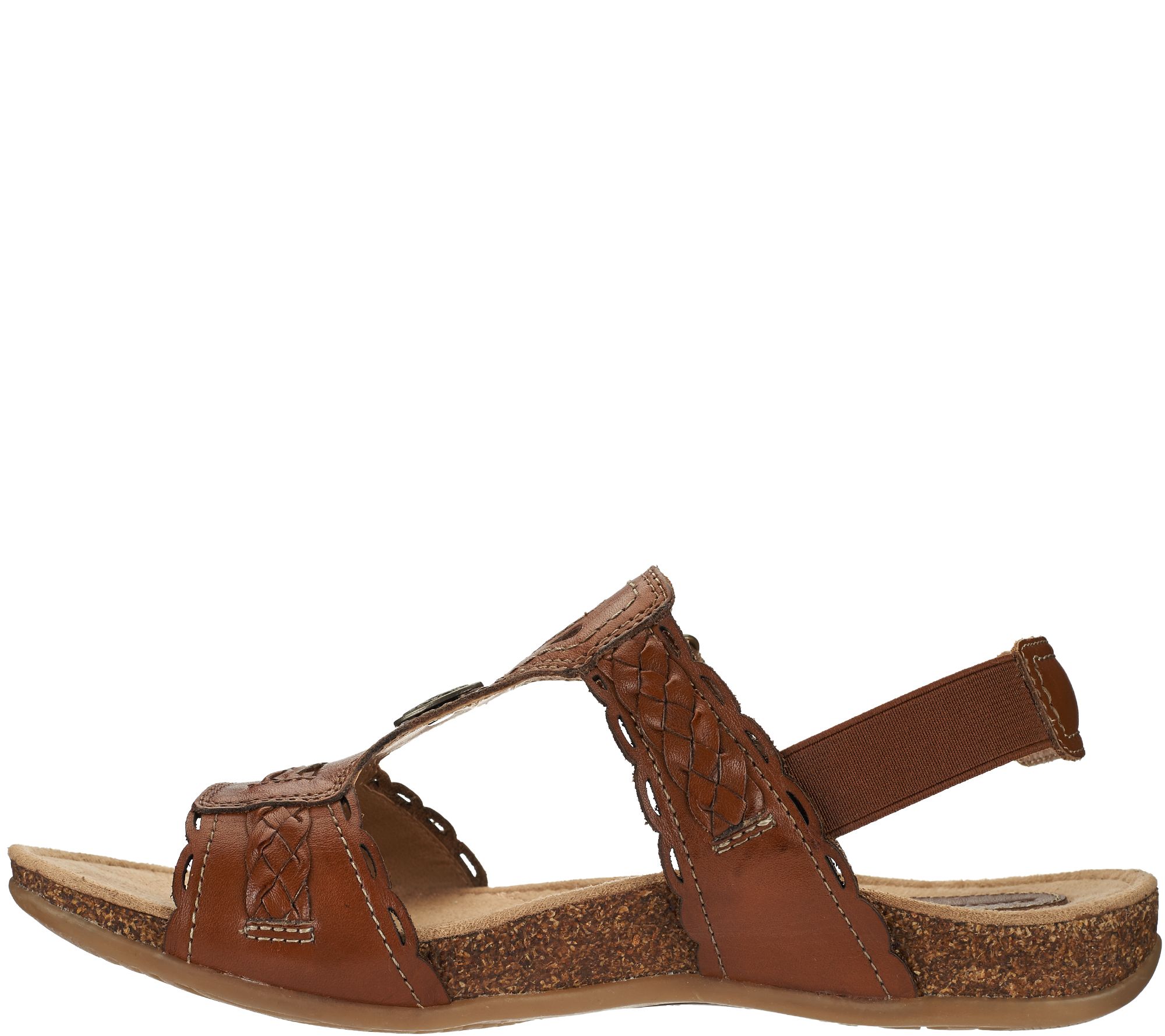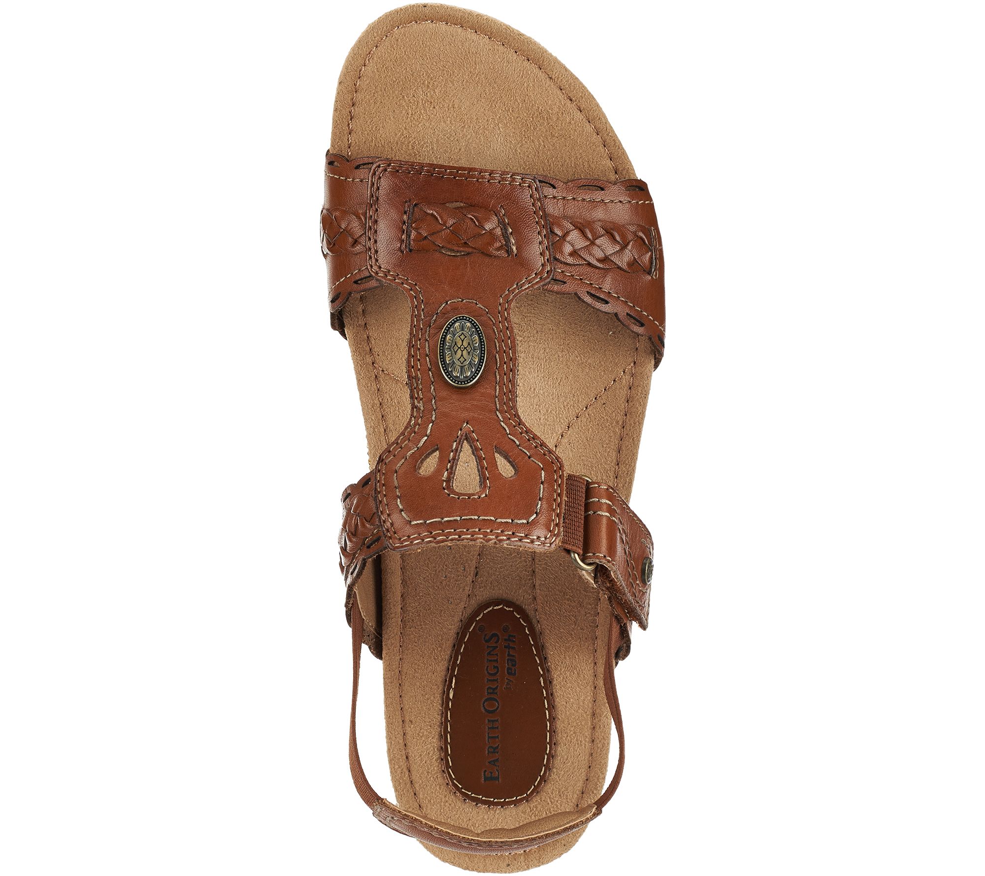 Summer comfort to a T. These Earth Origins leather sandals are a stylish and functional addition to your warm-weather footwear repertoire. Fashionable design elements like braiding, perforation, and stud details provide just the right amount of interest to this wear-anywhere shoe. Plus, the hook-and-loop closure gives you a customized fit. From Earth Brands Footwear.