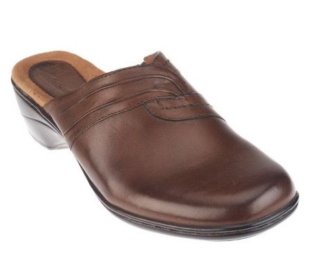 Earth Origins Peggy Leather Slip-on Clogs with Ruching Detail
