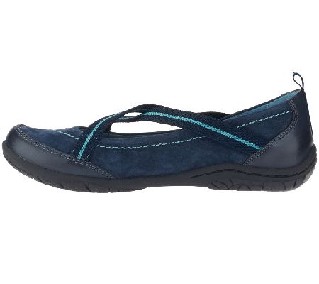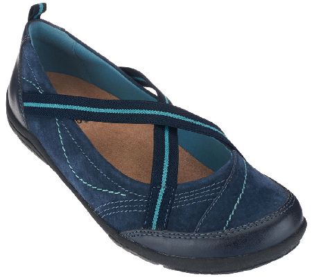 Take a step in a comfy direction. This slip-on shoe from Earth Origins intends to impress. Done with crisscross stretch straps for fit, Arleen also features a mixed upper of leather and suede for style. From Earth Brands Footwear.