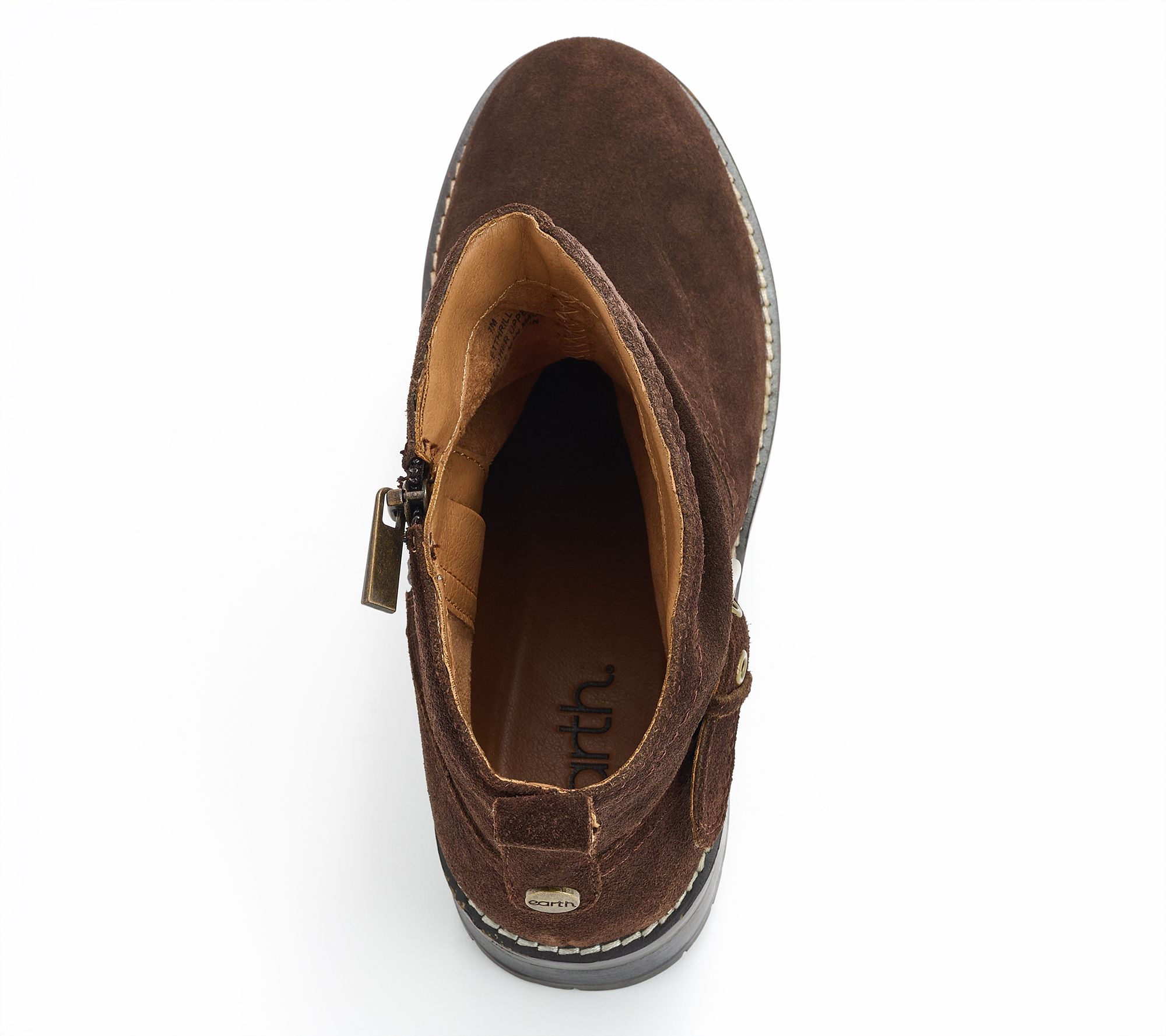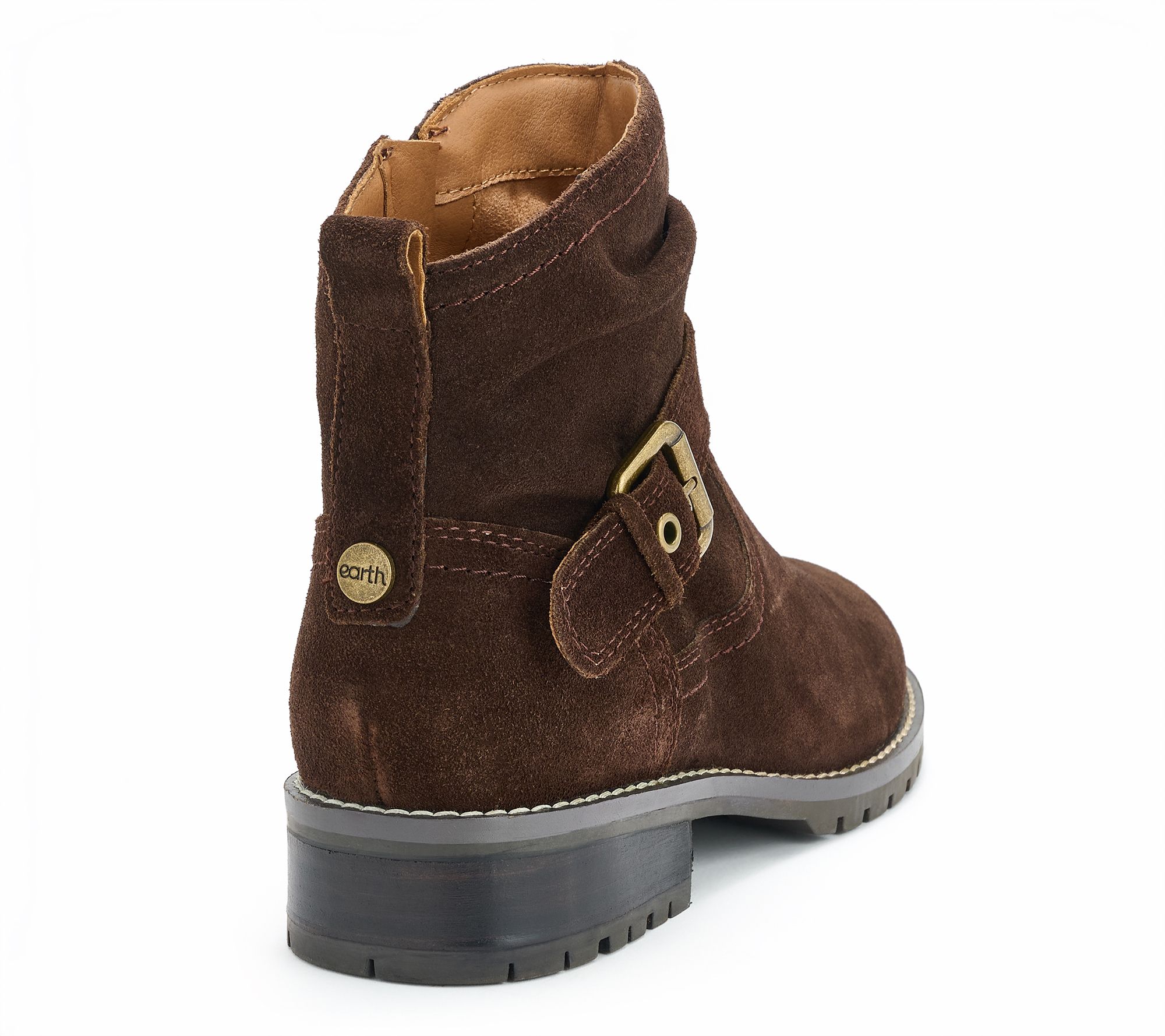 Enjoy an easygoing day with these suede ankle booties, perfect for mixing style and comfort in any setting. With a soft, slouchy upper, subtle buckle accent, and practical inside zipper, they slip on quickly for busy mornings or relaxed weekend plans. A cushioned insole and treaded sole keep your feet happy, while the removable footbed offers added versatility. From earth®.