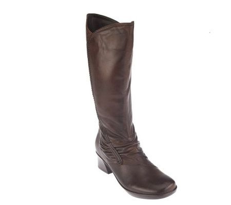 Stand tall. Detailed with ruching and stitching, these tall shaft leather boots will add some serious attitude to your favorite skirt or jeans. Slip them on easily with the help of the full side zipper. From Earth Brands Footwear.