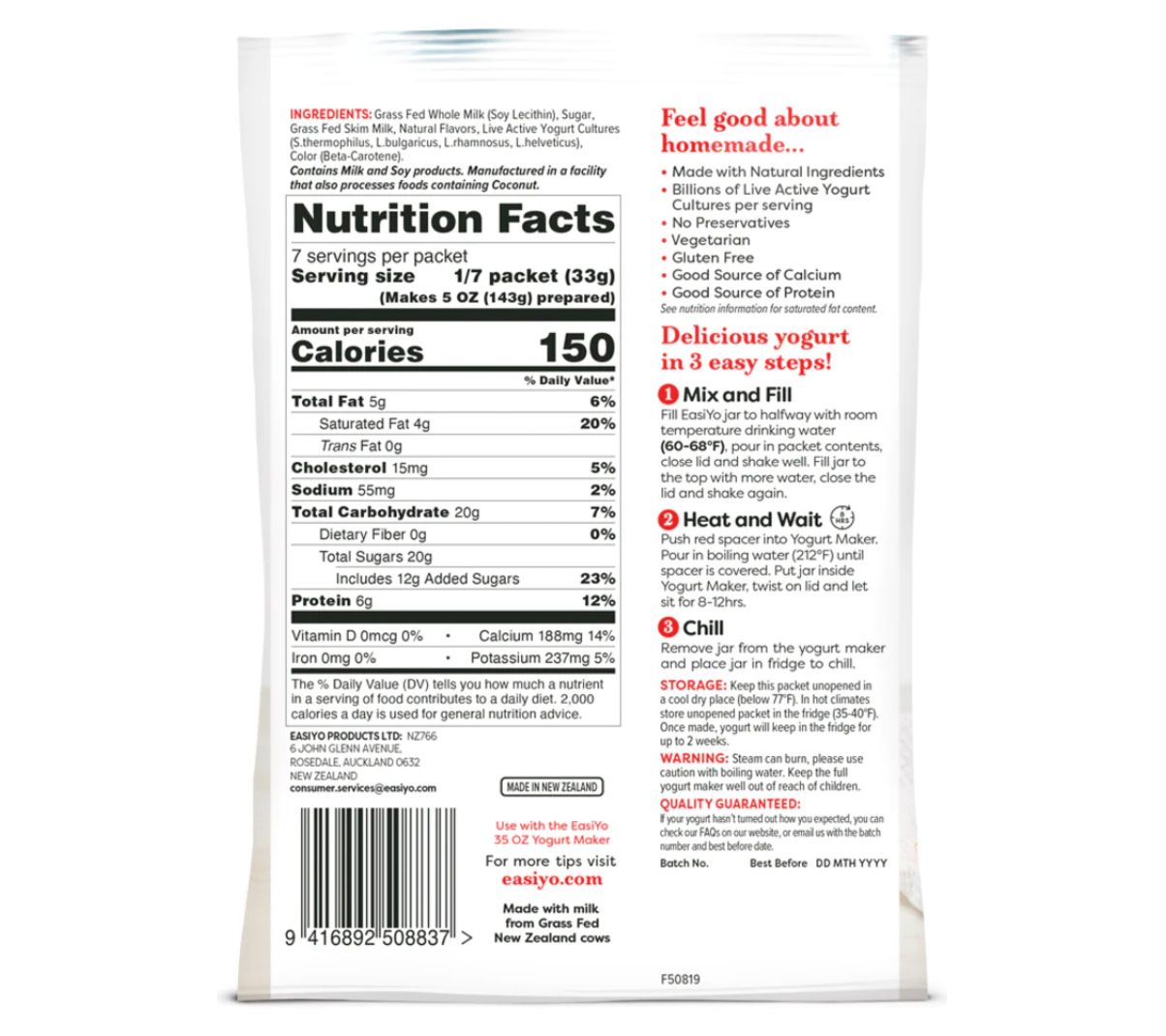 • Each packet makes 35 oz of yogurt