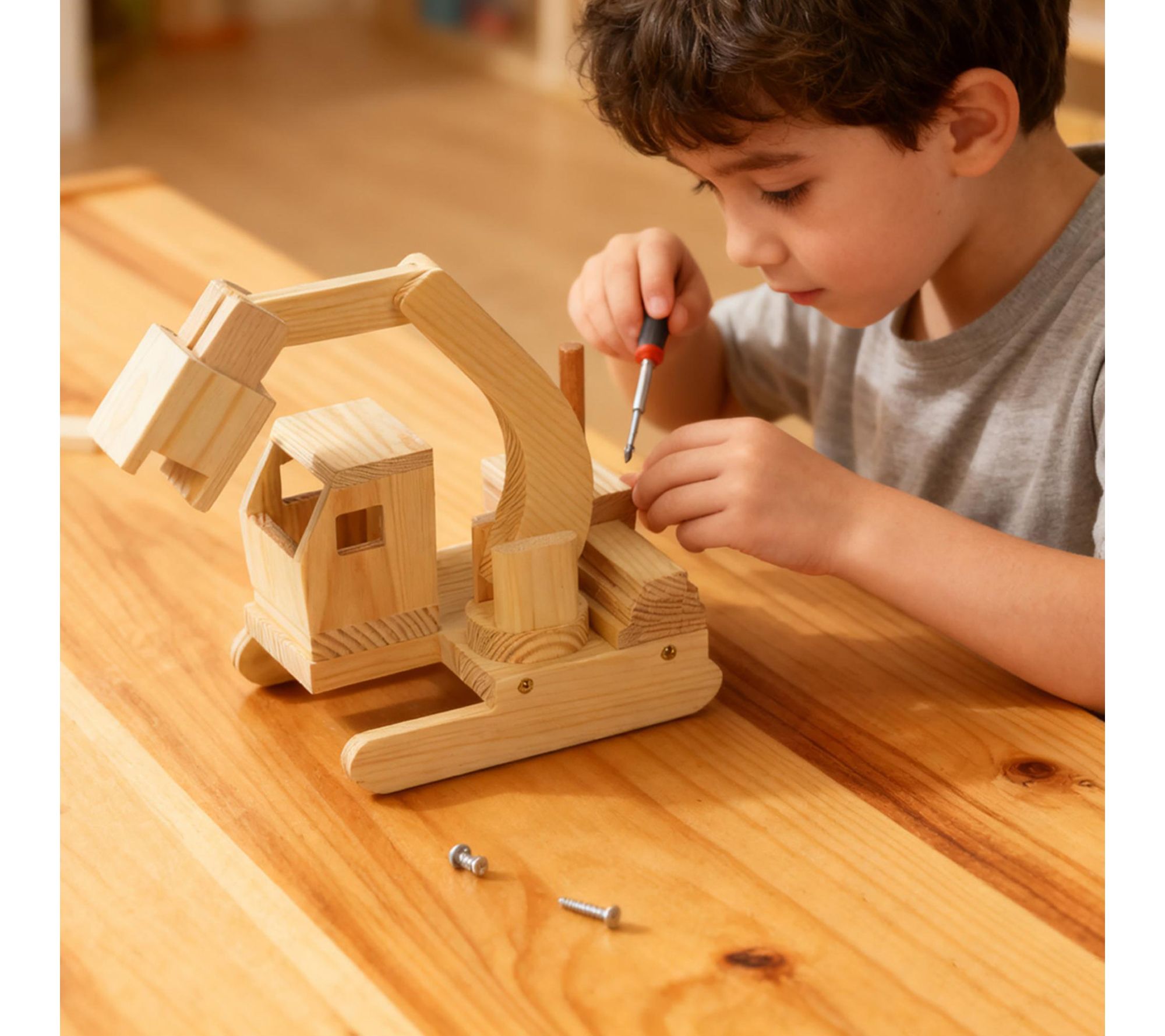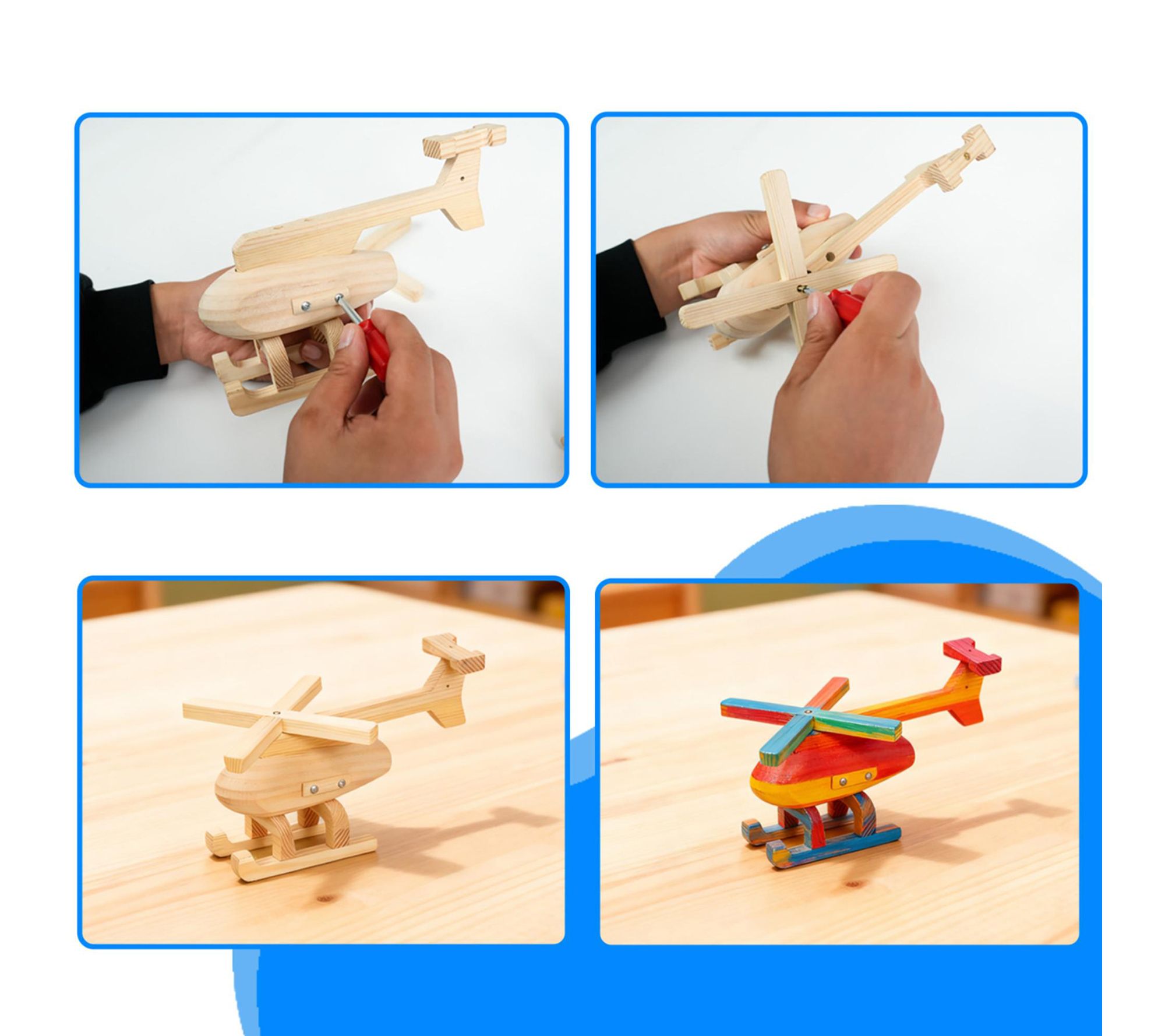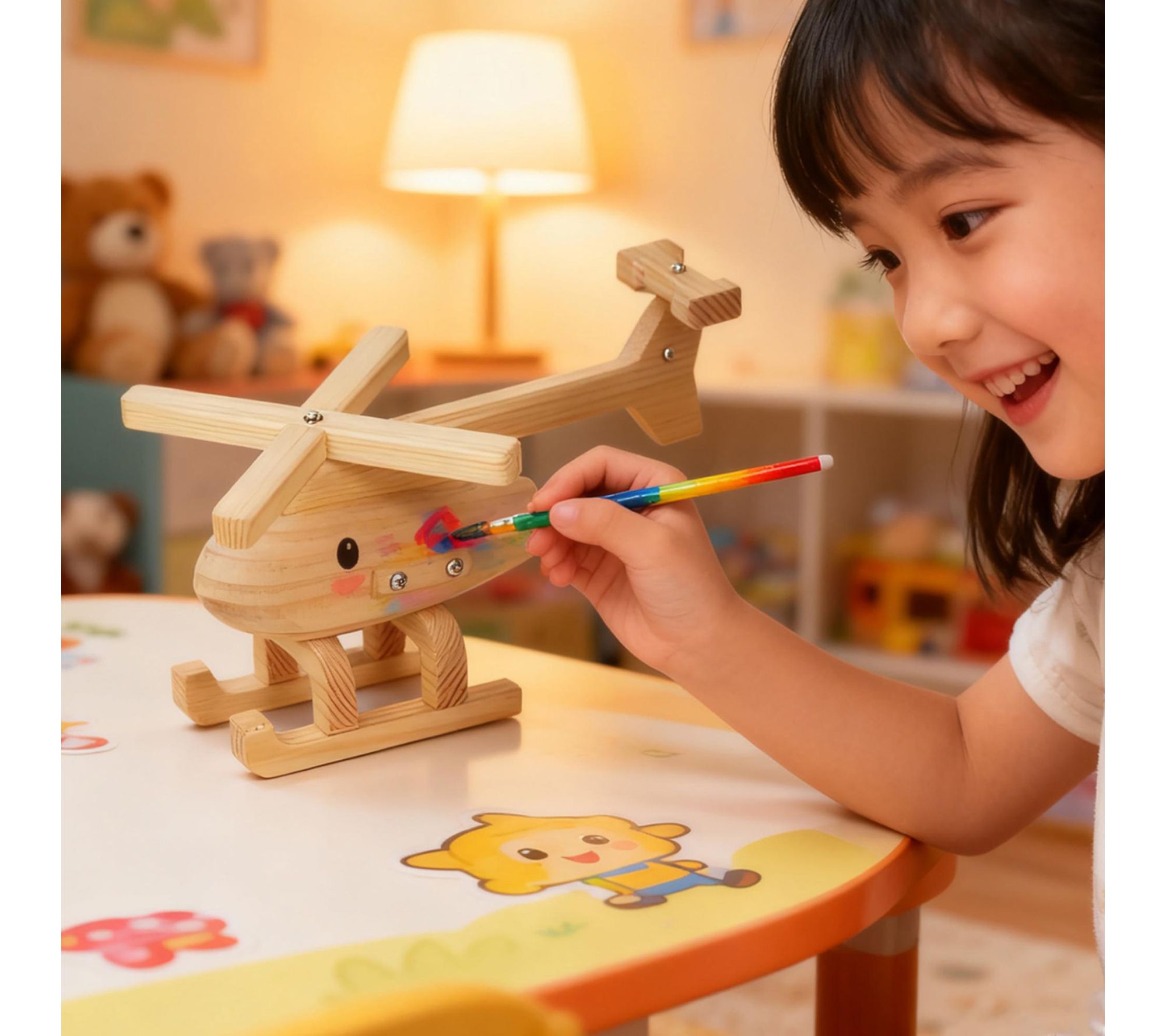 Bring the joy of hands-on creation to playtime with this DIY wood building toy kit, where young makers transform wood pieces into three imaginative vehicles -- a truck, excavator, and helicopter. Paint, assemble, and watch creativity take flight, whether it's a rainy afternoon or a family craft night. From Easy Playhouse.