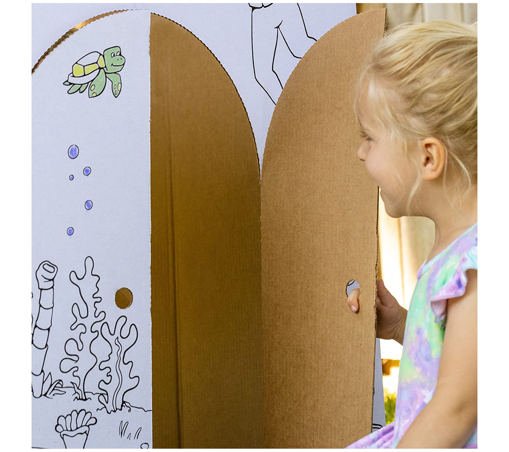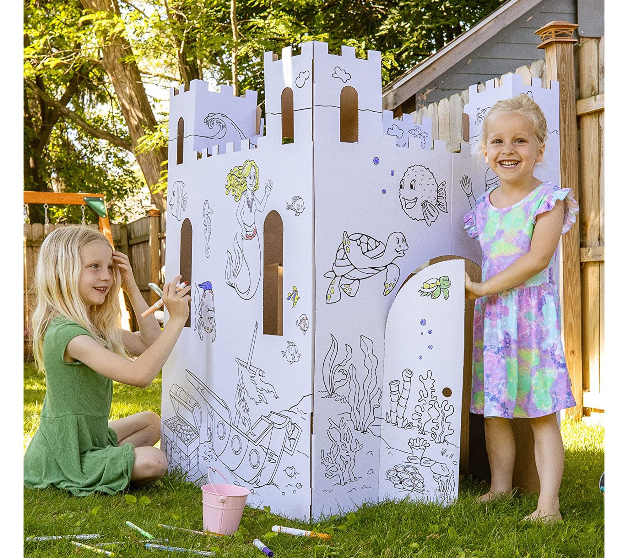 Watch your kids use their little hands and big imaginations to create a place of their very own with this sand castle playhouse. Little ones can customize each section with crayons and markers (not included) and the reversible design offers twice the creativity and fun. From Easy Playhouse.