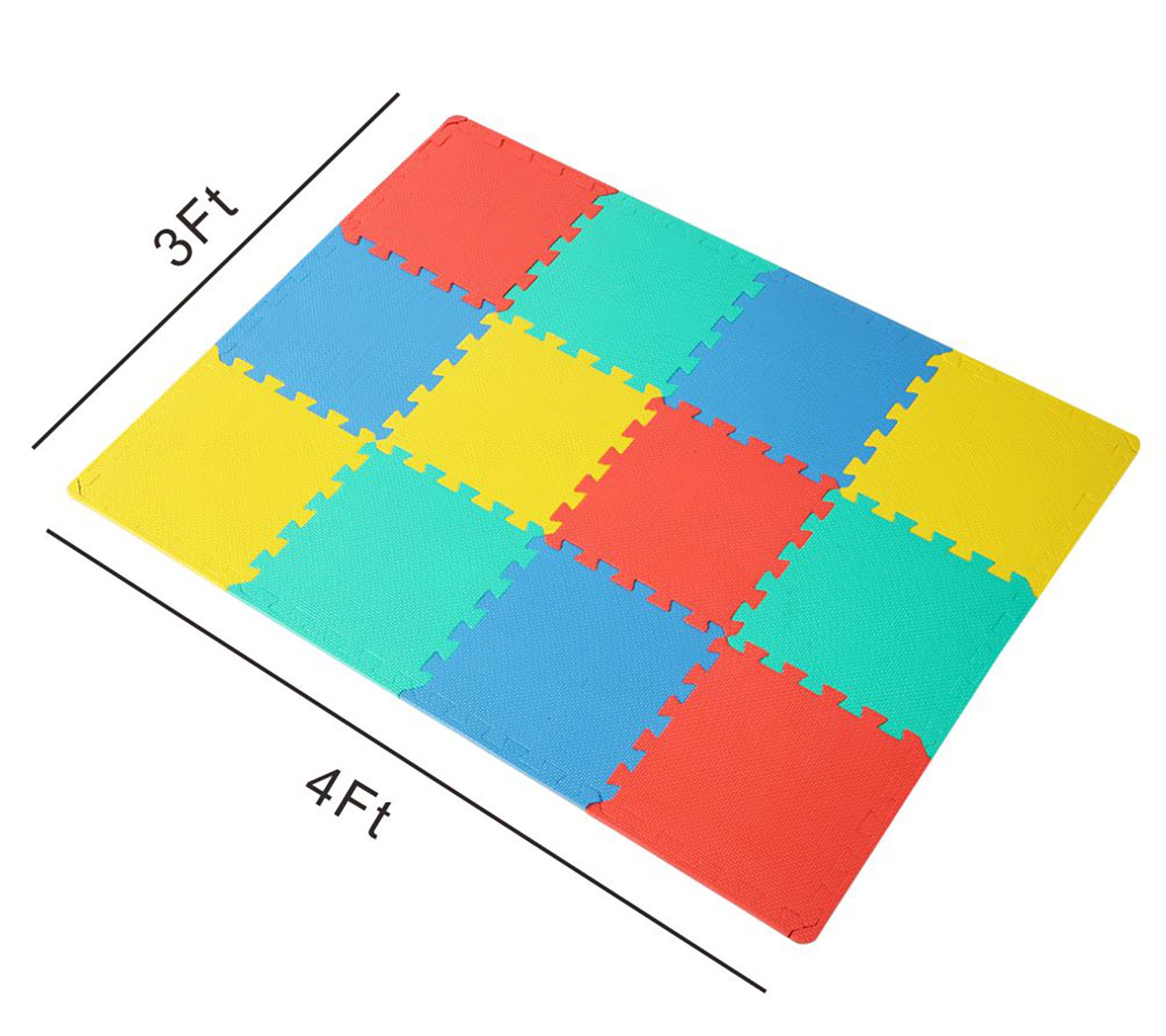 • Includes 12 interlocking foam tiles and 14 border pieces