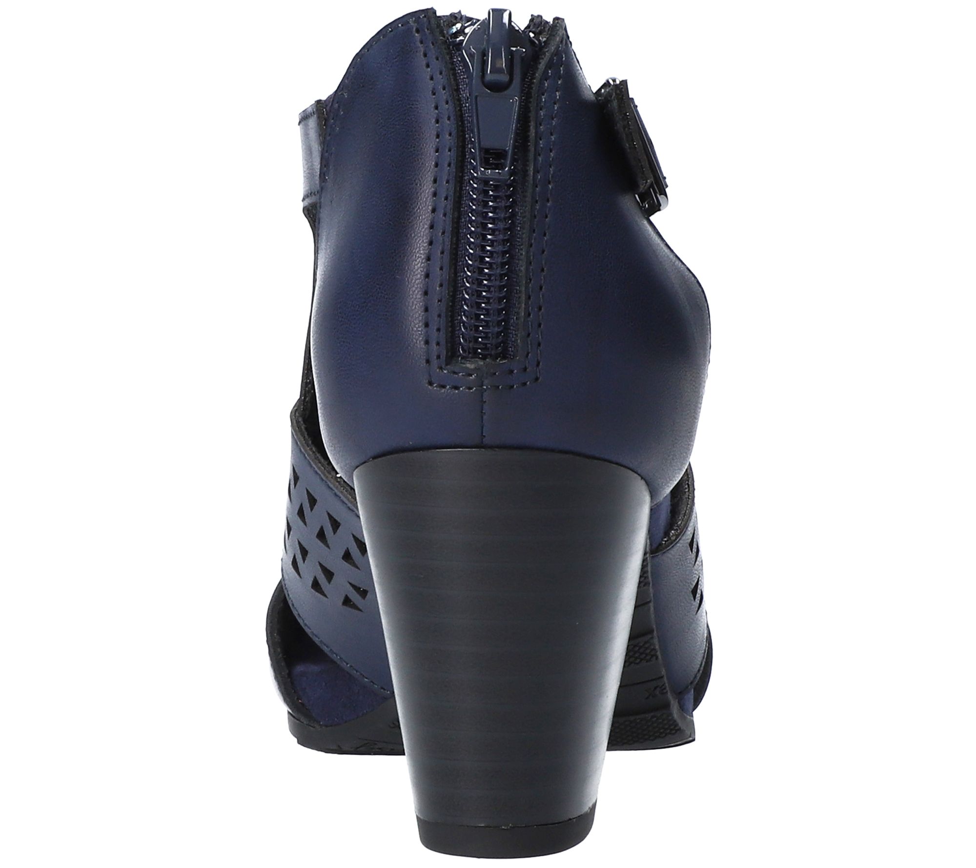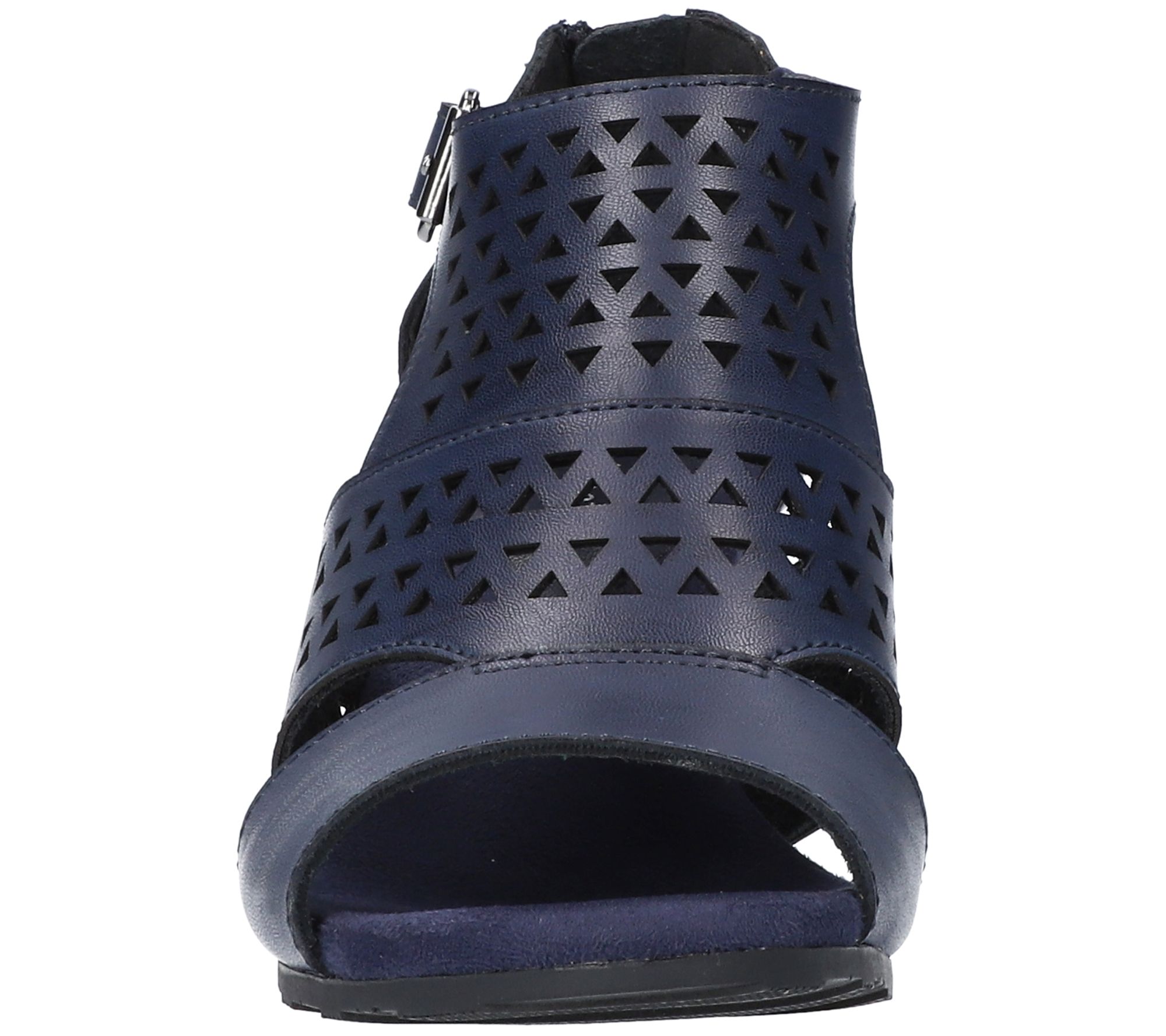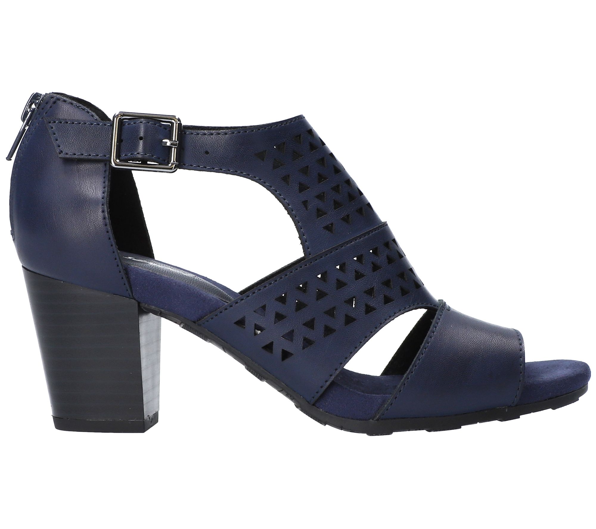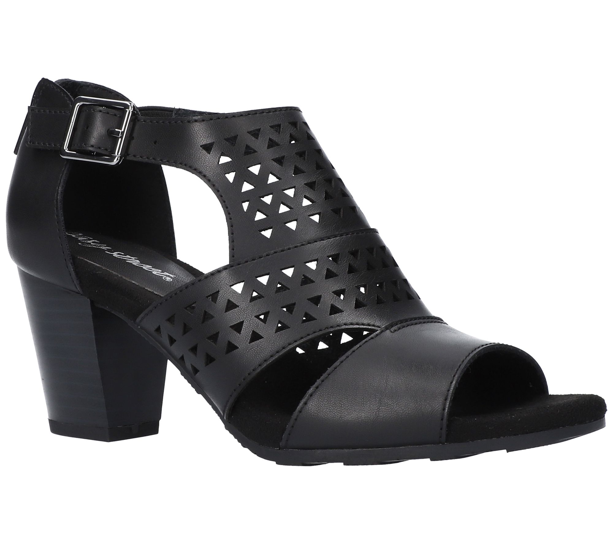 Underscore your sunny-day look with the contemporary flair of this block heel sandal that showcases your pedicure while lending bold style vibes with geometric cutouts. From Easy Street.