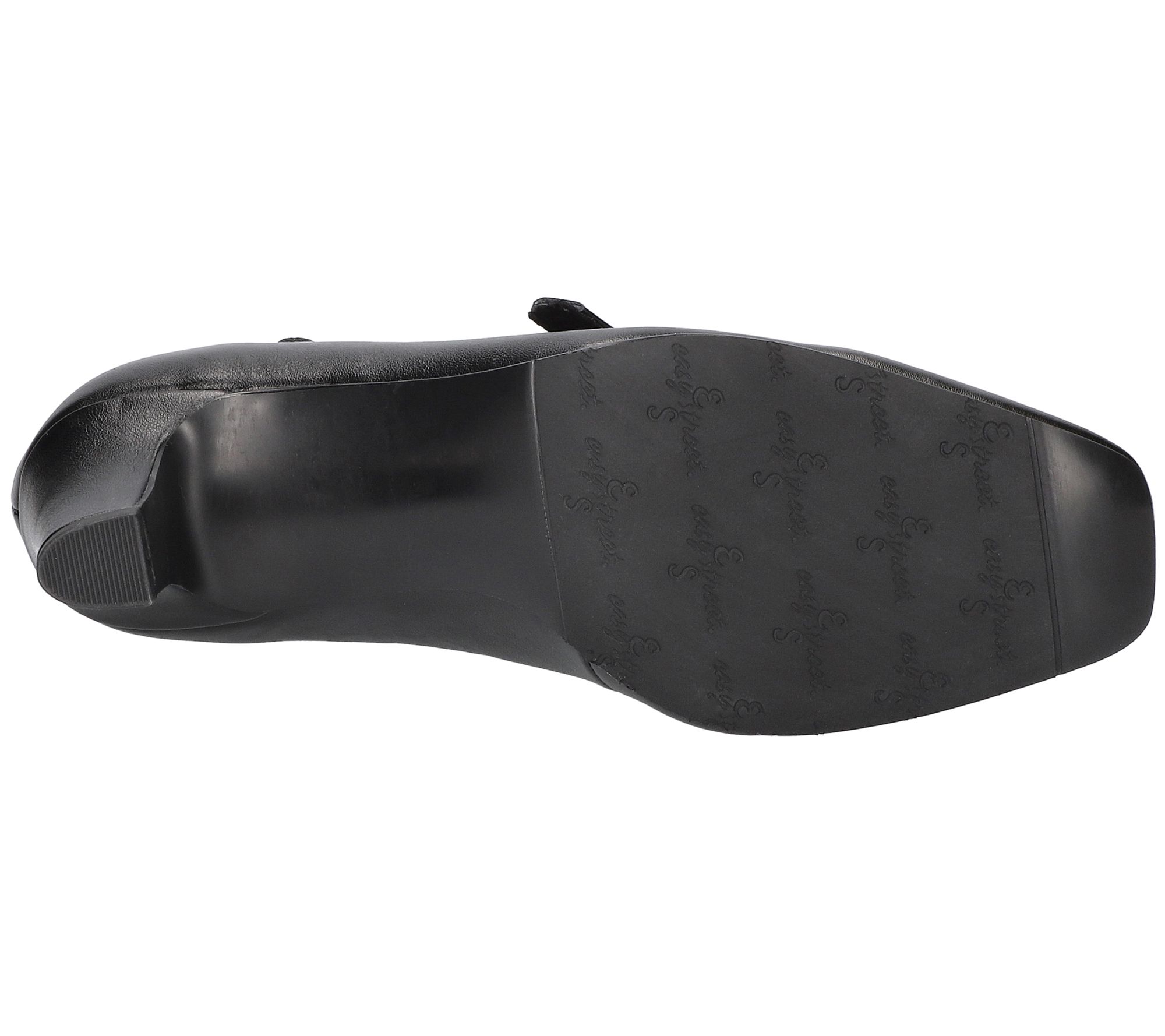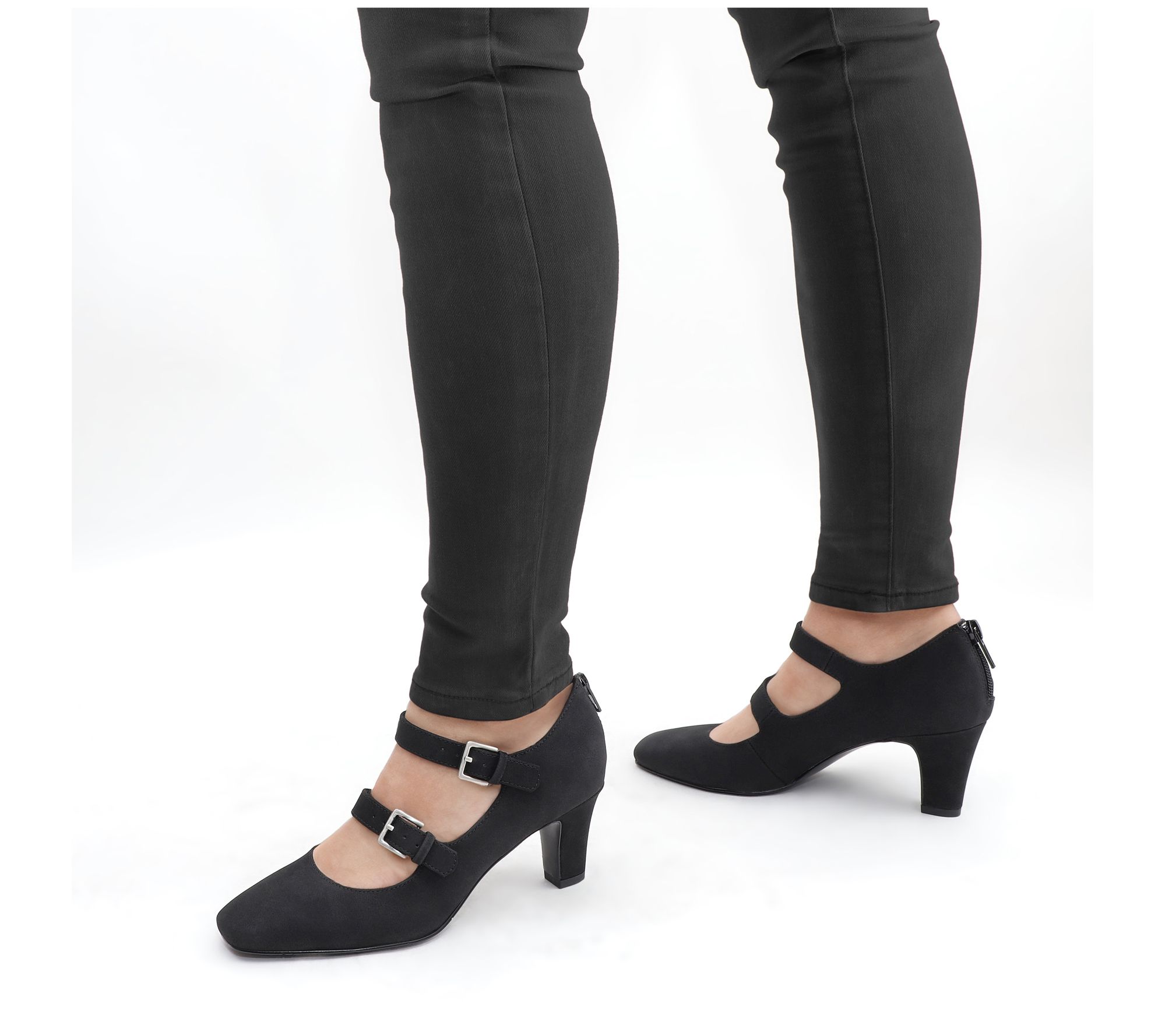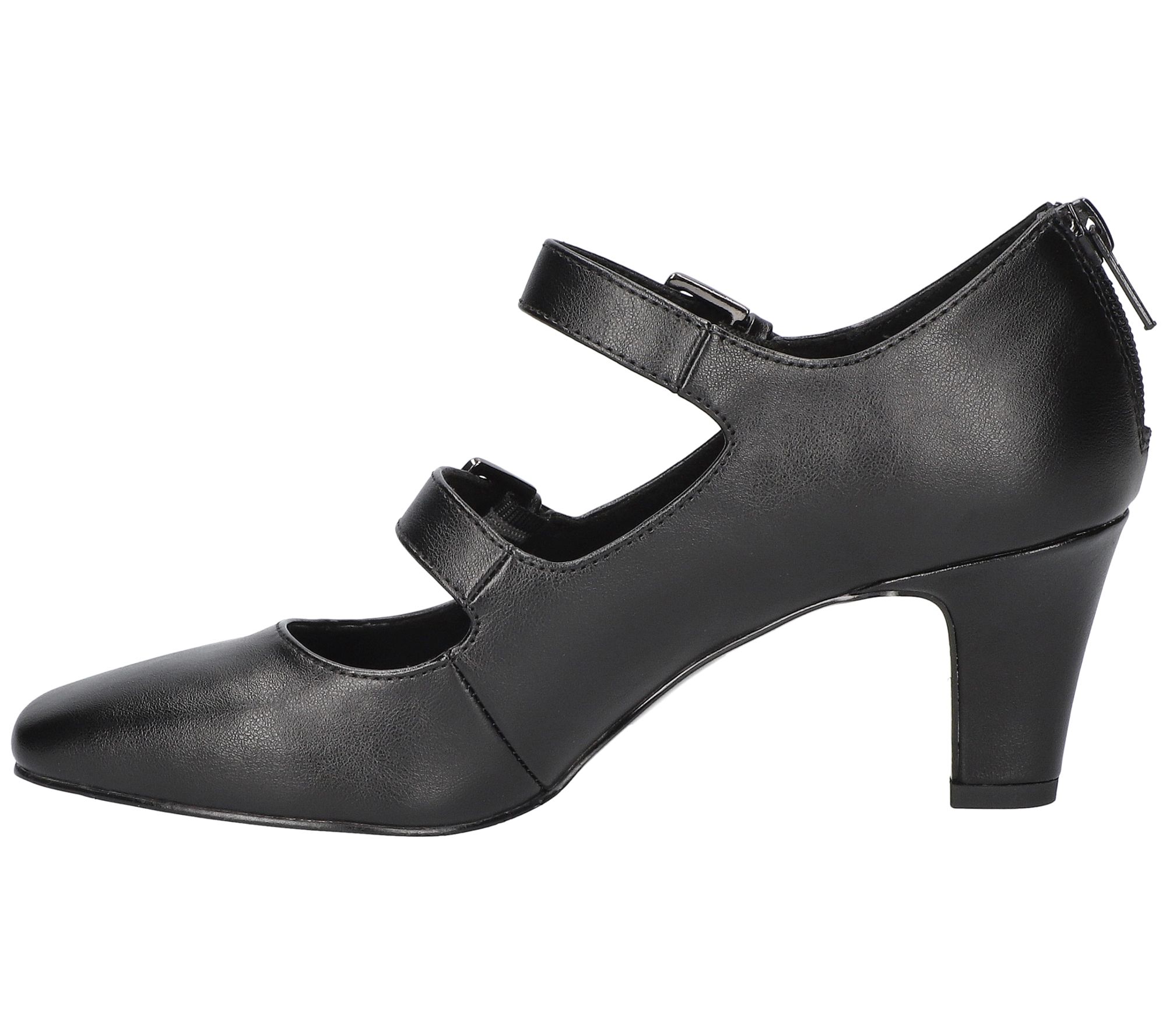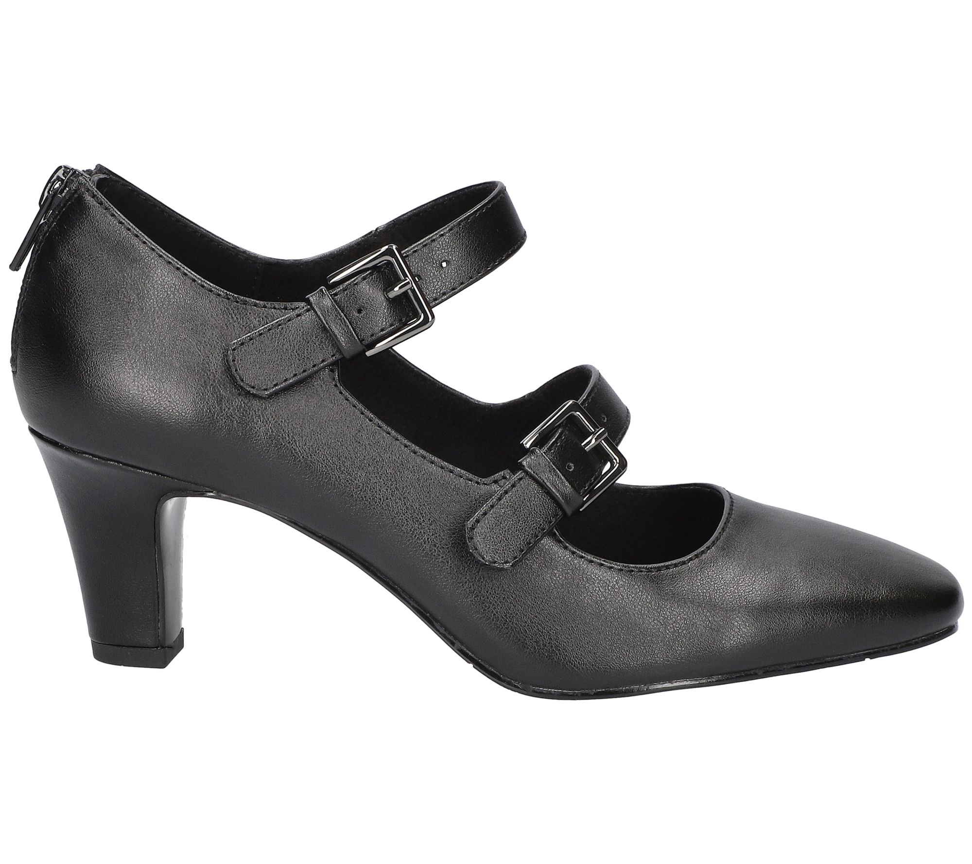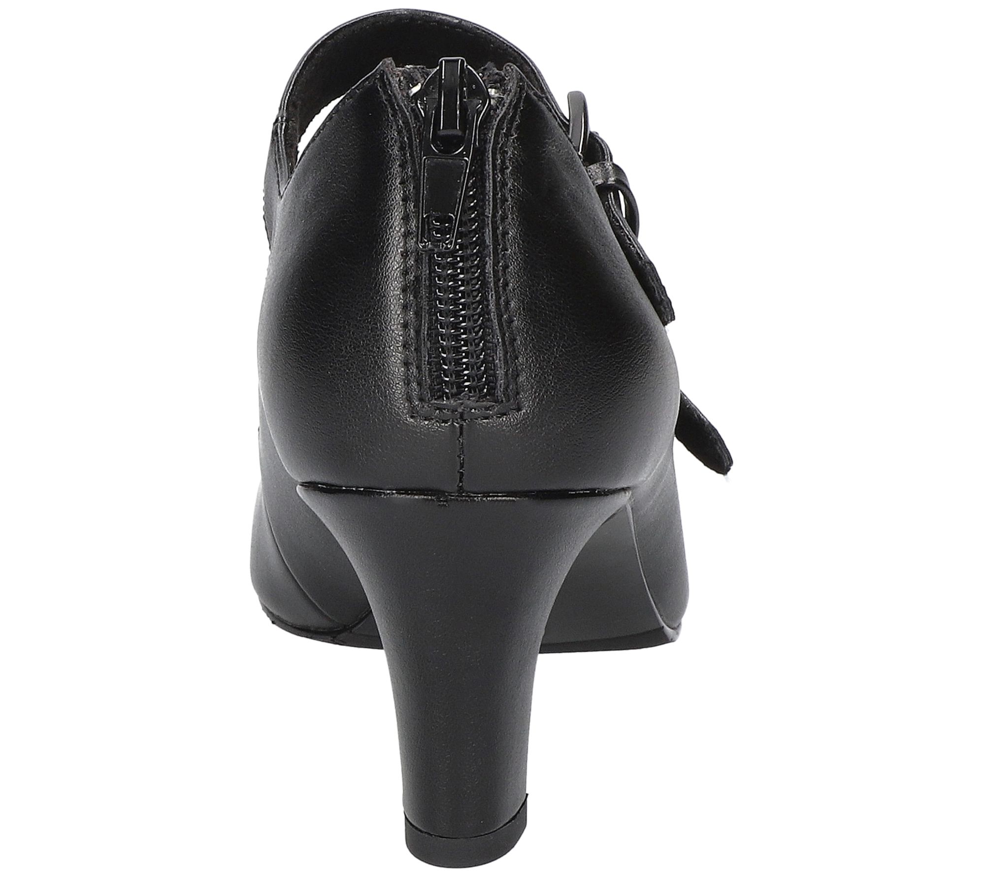 • Almond toe, Mary Jane adjustable strap, back zipper